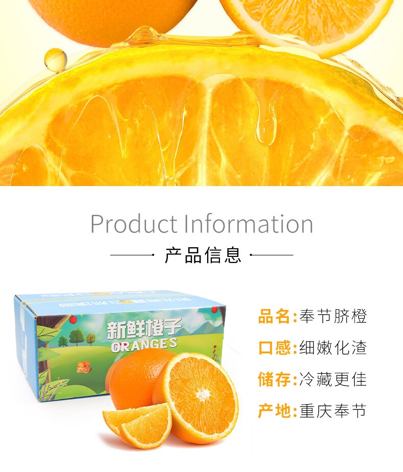 美珍欢重庆奉节脐橙应季新鲜水果现摘整箱柑橘子产地直发过年送礼 净重4.5斤(单果80mm+)