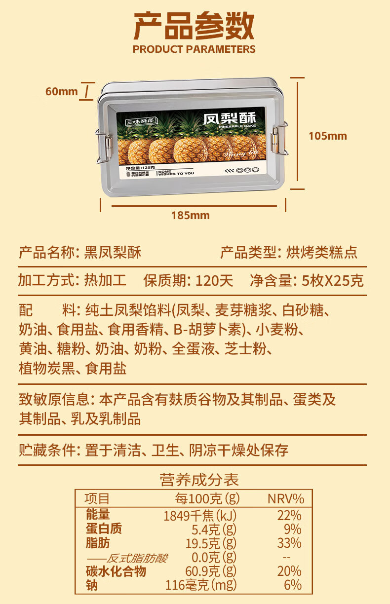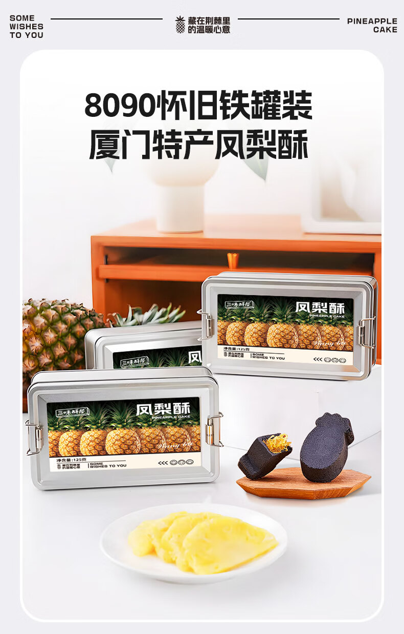 三味酥屋凤梨酥铁盒装福建厦门特产酥饼糕点心礼盒伴手礼休闲小零食125g