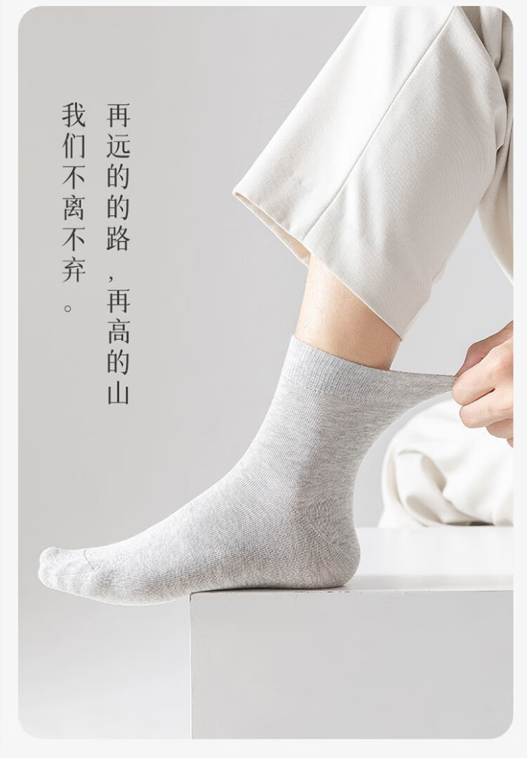 361°袜子男士中筒袜春夏季棉袜抗菌防臭吸汗透气四季长筒袜 混色5双装