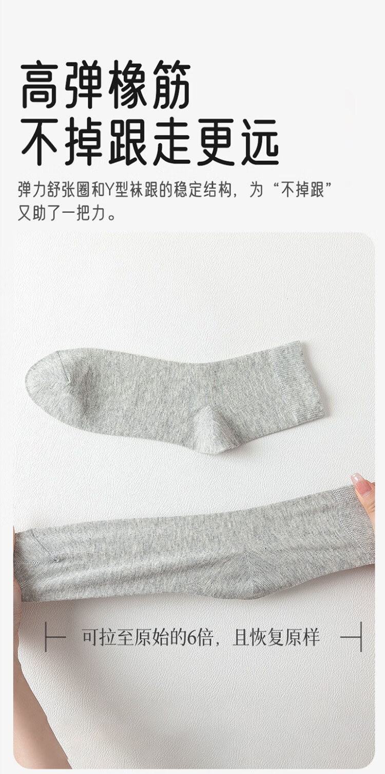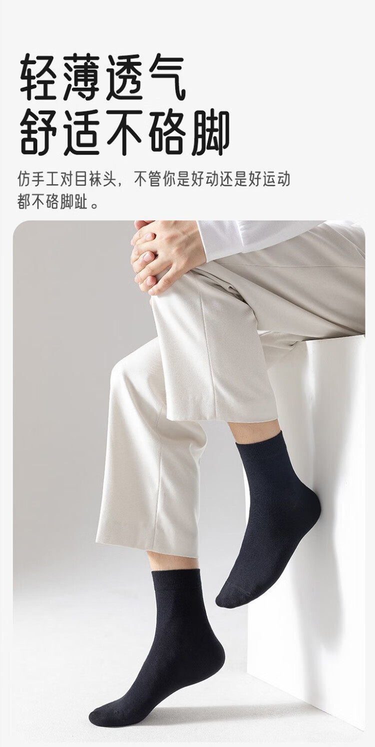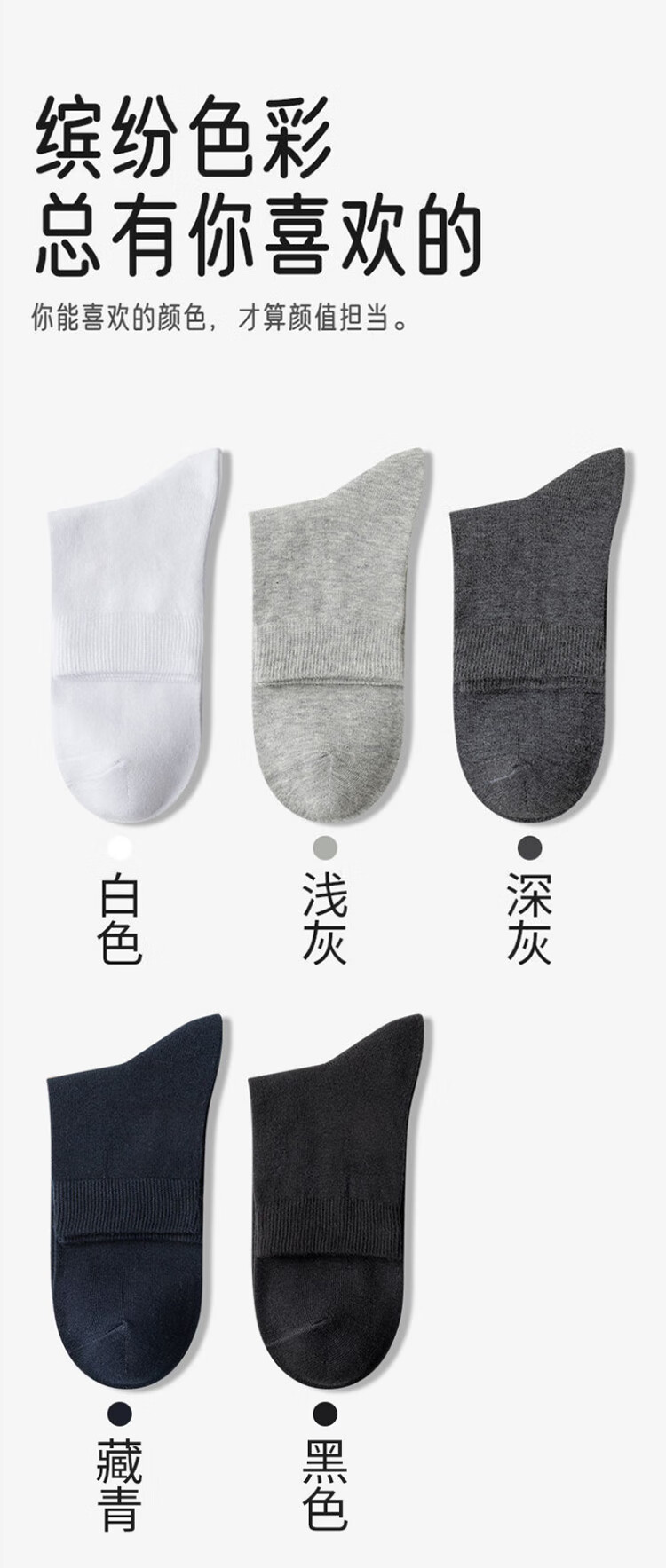 361°男士袜子男棉袜透气吸汗长筒袜抗菌防臭休闲舒适撞色中筒袜 混色10双装