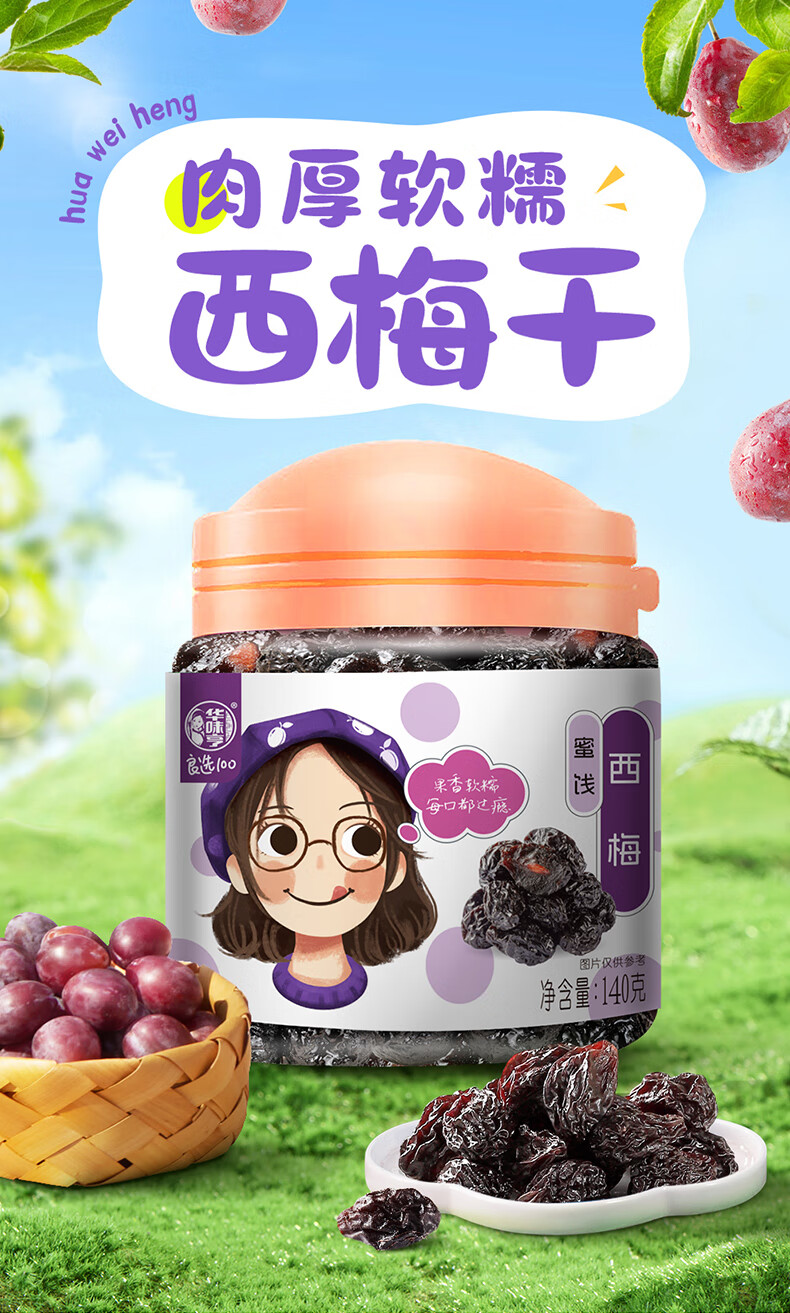 华味亨 140g西梅 罐装梅子干酸甜话梅果干蜜饯零食小吃 140g西梅*2罐