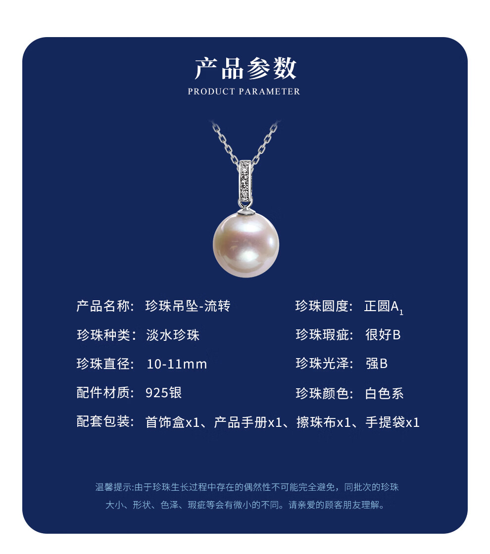 南珠宫流转925银淡水珍珠吊坠强光泽正圆精致优雅百搭生日礼物送女友 10.0-11.0mm 925银淡水珍珠吊坠