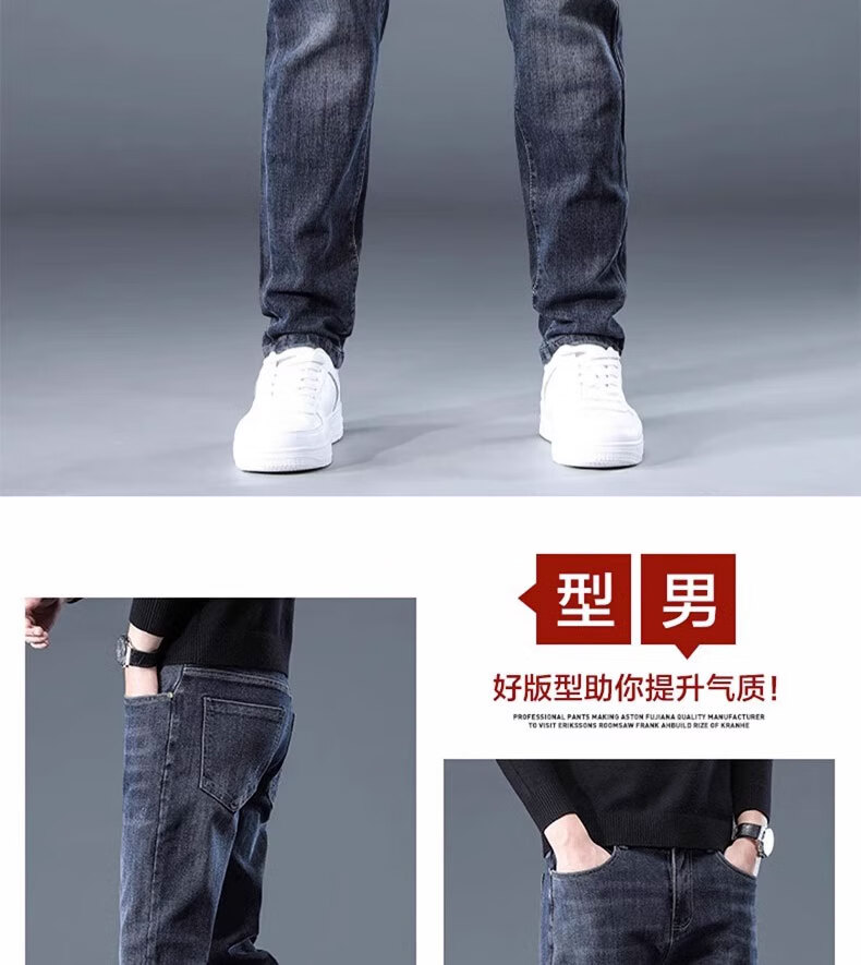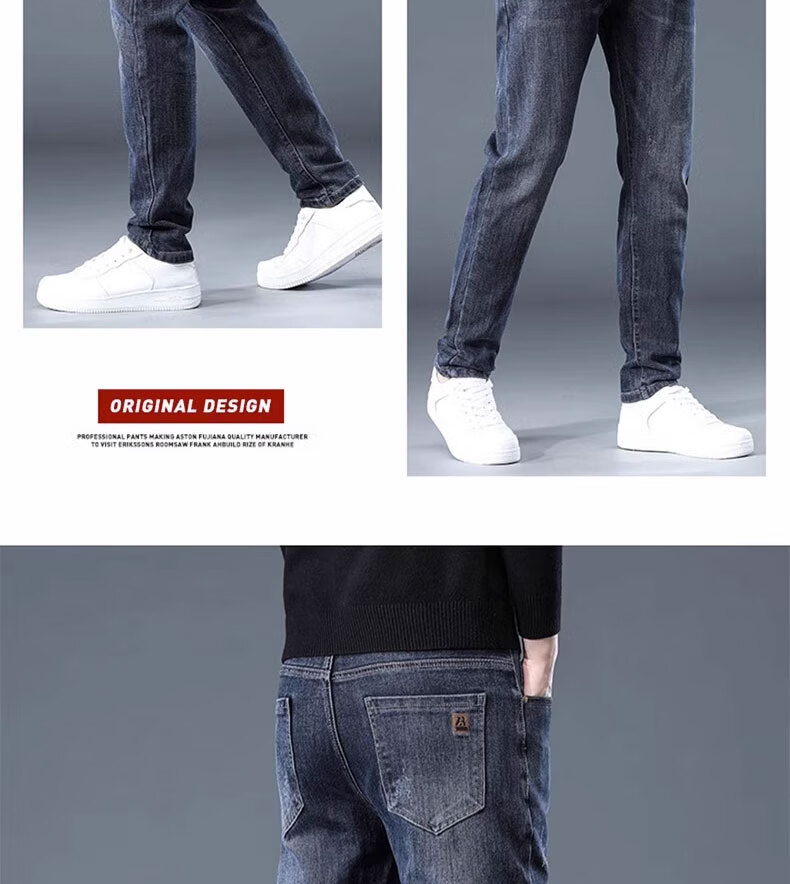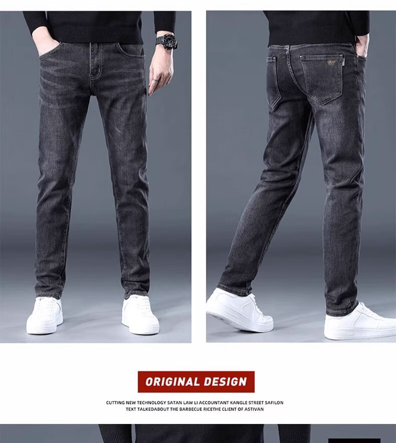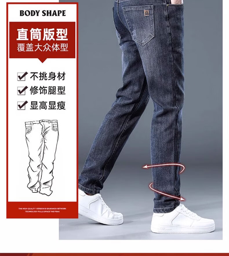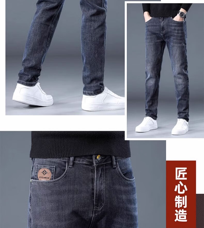 啄木鸟牛仔裤男士春秋季新款修身弹力直筒裤男青年潮牌刺绣休闲长裤子男 雾霾蓝 28 (建议90-100斤)