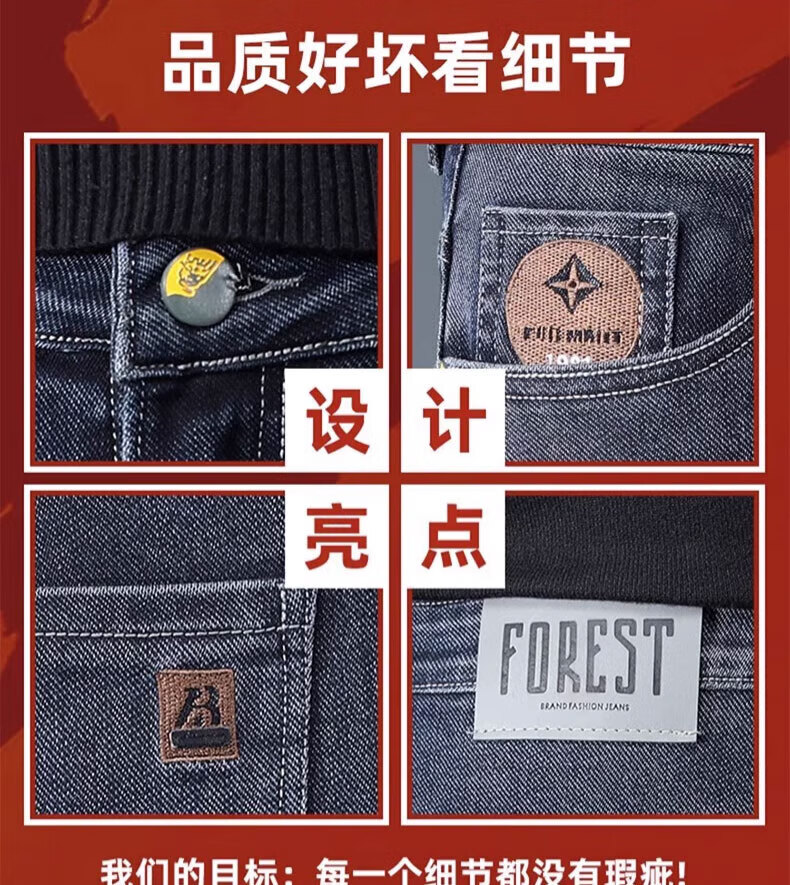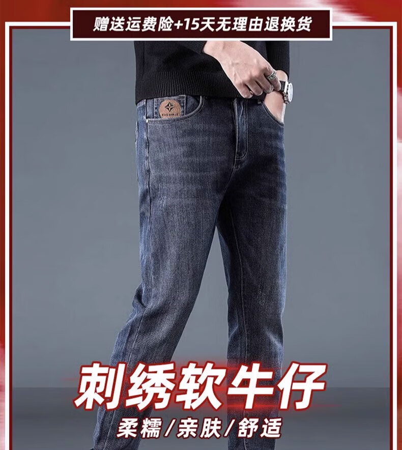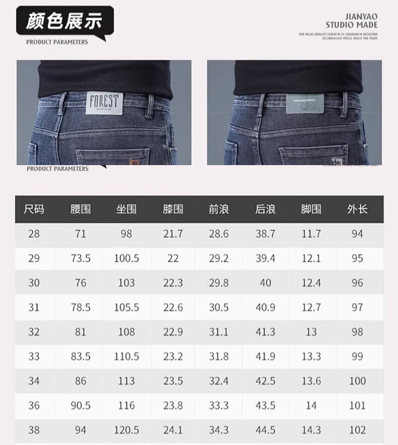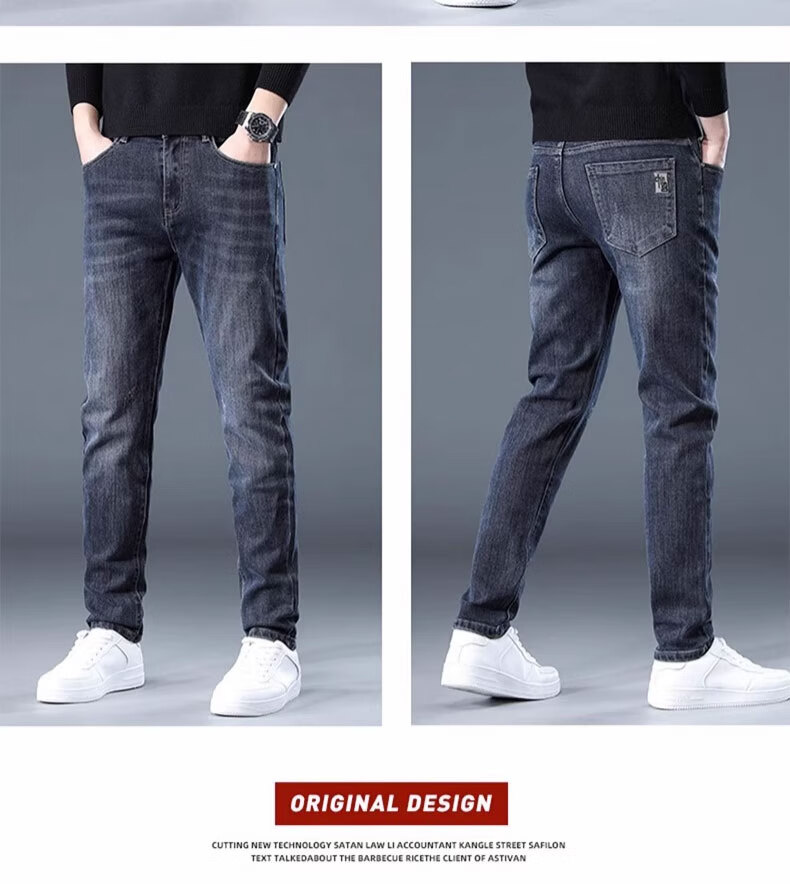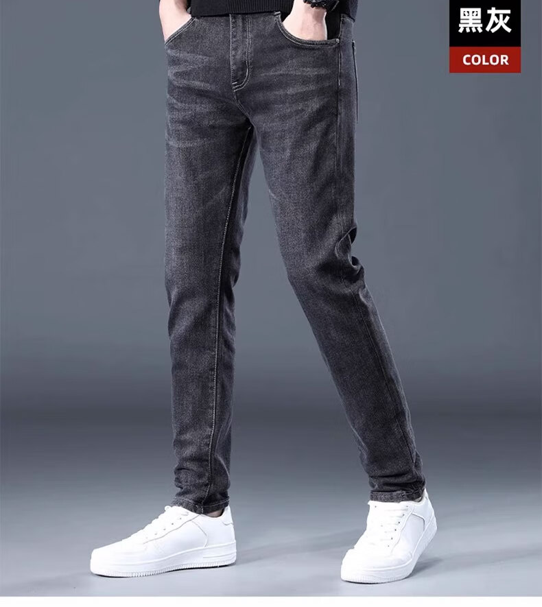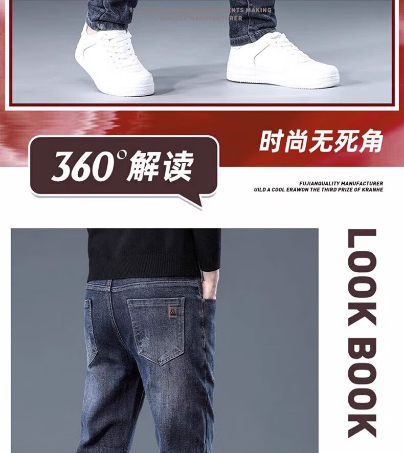 啄木鸟牛仔裤男士春秋季新款修身弹力直筒裤男青年潮牌刺绣休闲长裤子男 雾霾蓝 28 (建议90-100斤)
