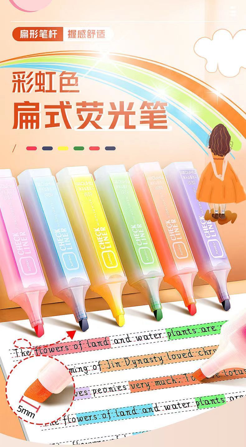 荧光笔高颜值学生用彩色标记笔淡色系复古莫兰迪色系荧光笔 闪光啫喱笔 12支/盒