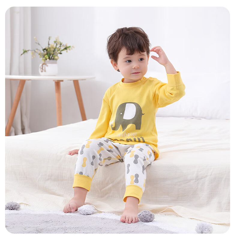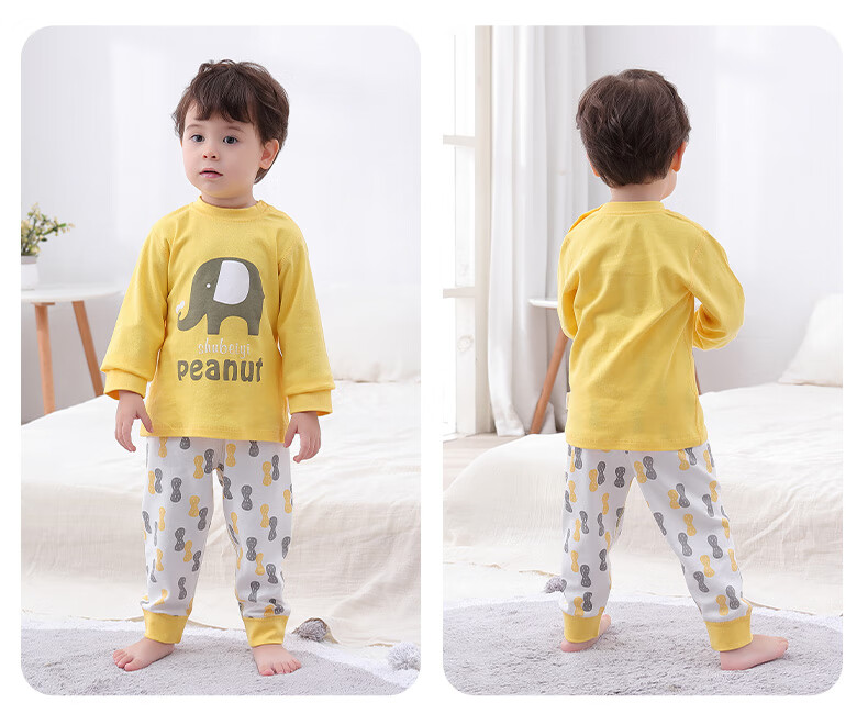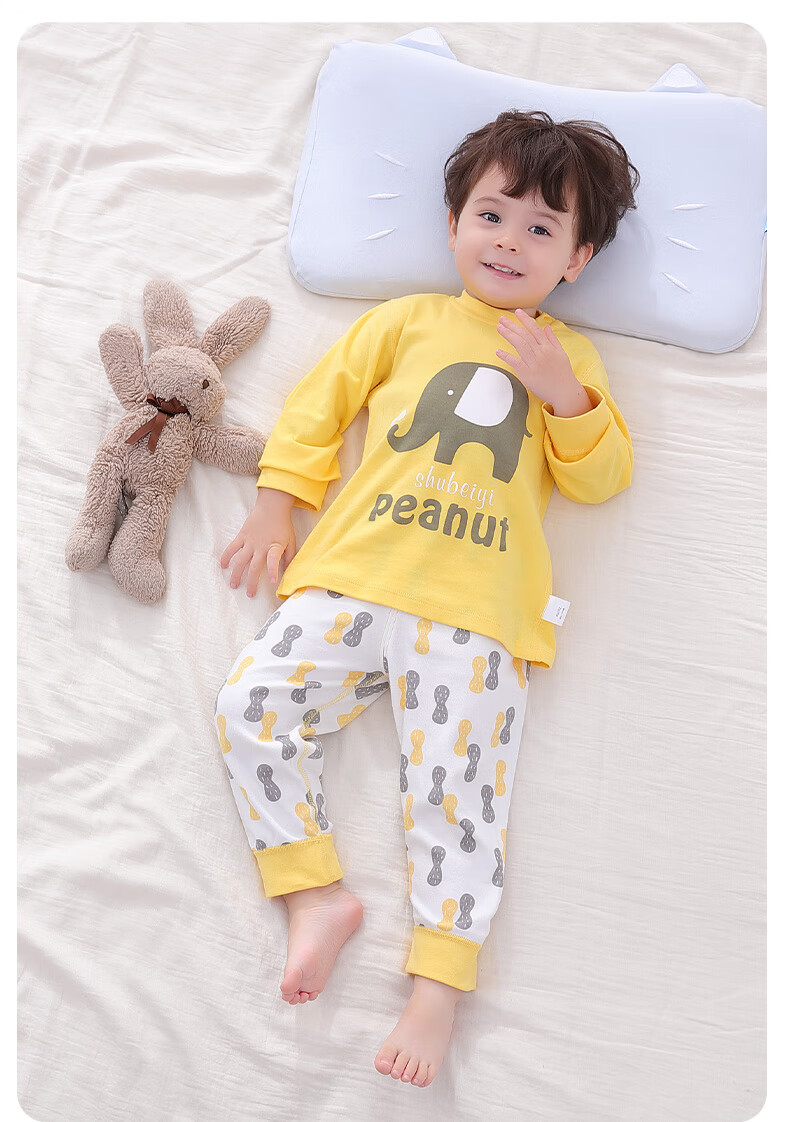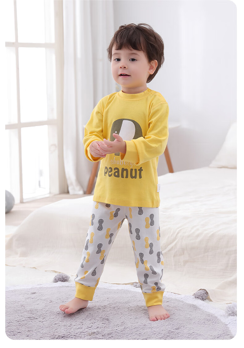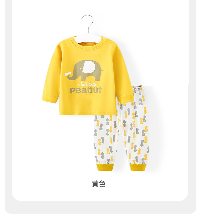 舒贝怡婴儿衣服儿童内衣套装纯棉家居男女宝宝衣服春秋衣秋裤睡衣黄110