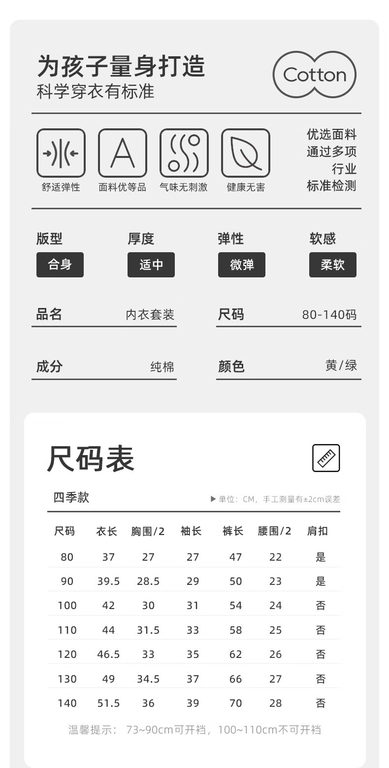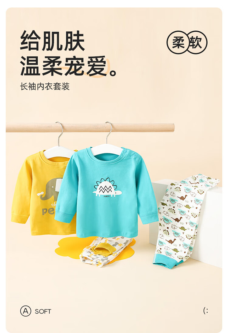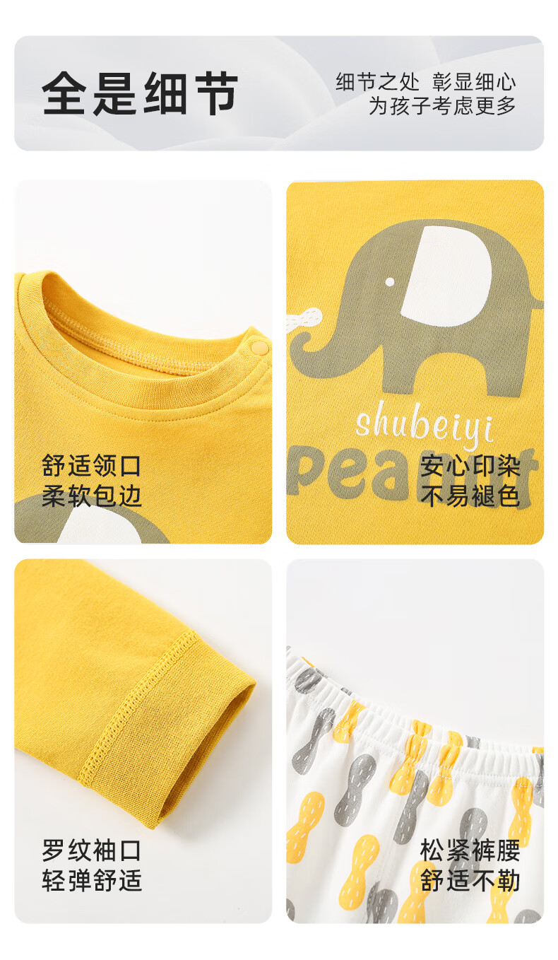 舒贝怡婴儿衣服儿童内衣套装纯棉家居男女宝宝衣服春秋衣秋裤睡衣黄110