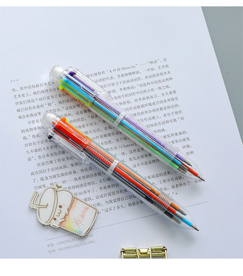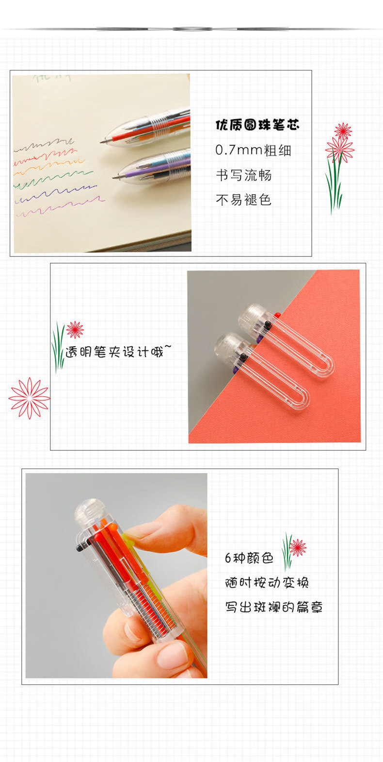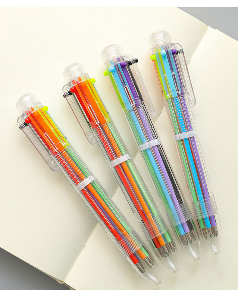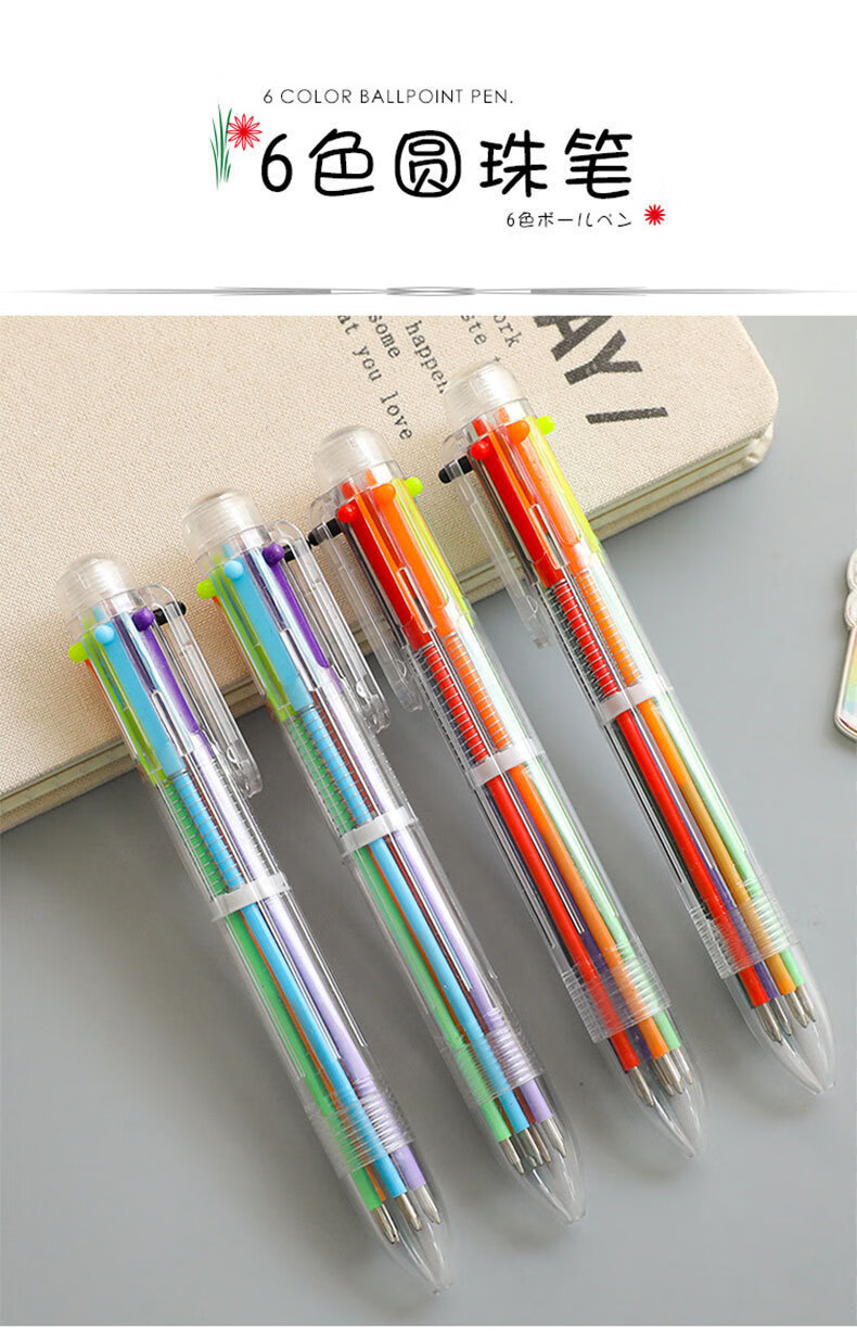 圆珠笔创意透明6色圆珠笔可爱按动彩色多功能绘画学生文具礼品 6色圆珠笔 【1支】