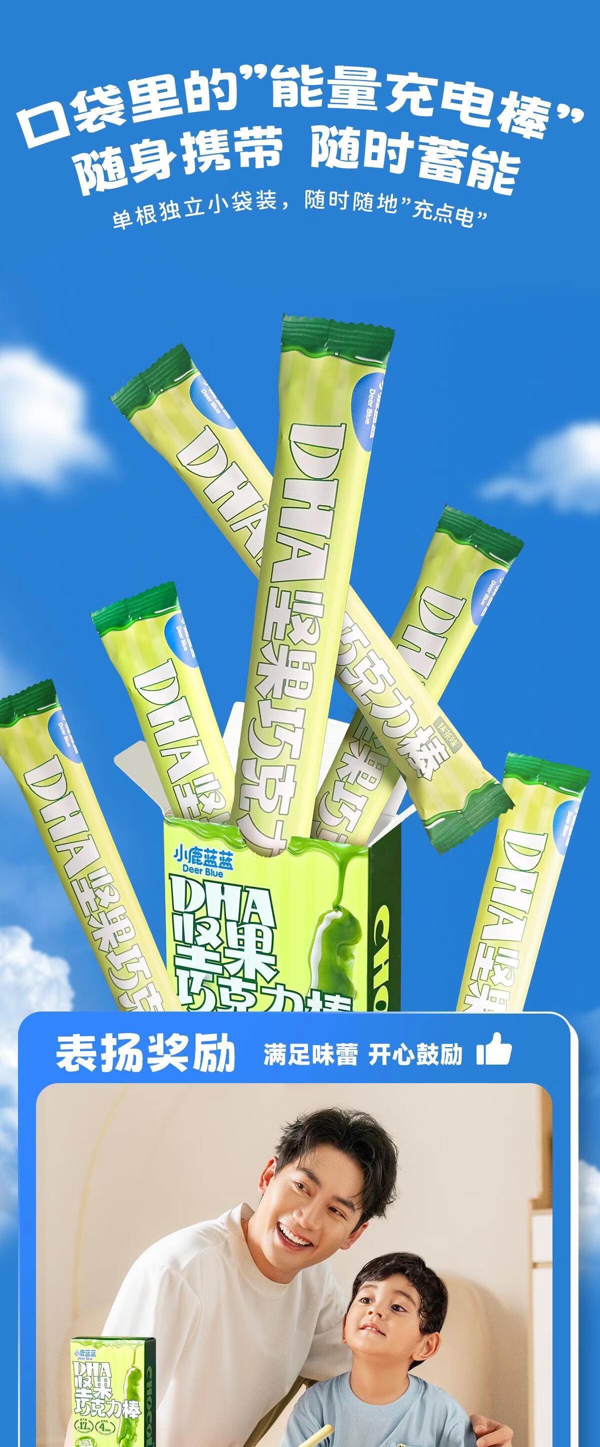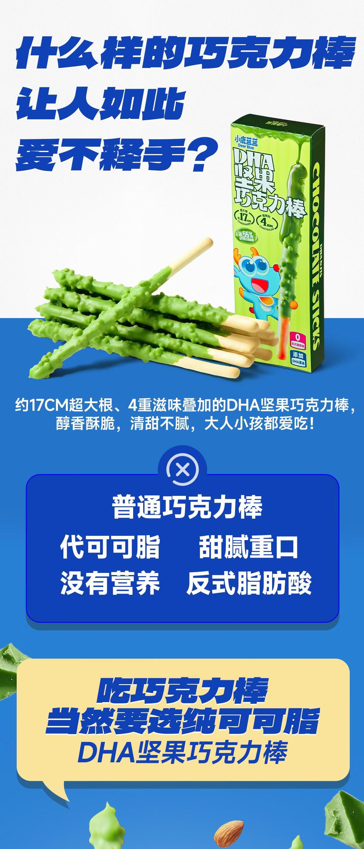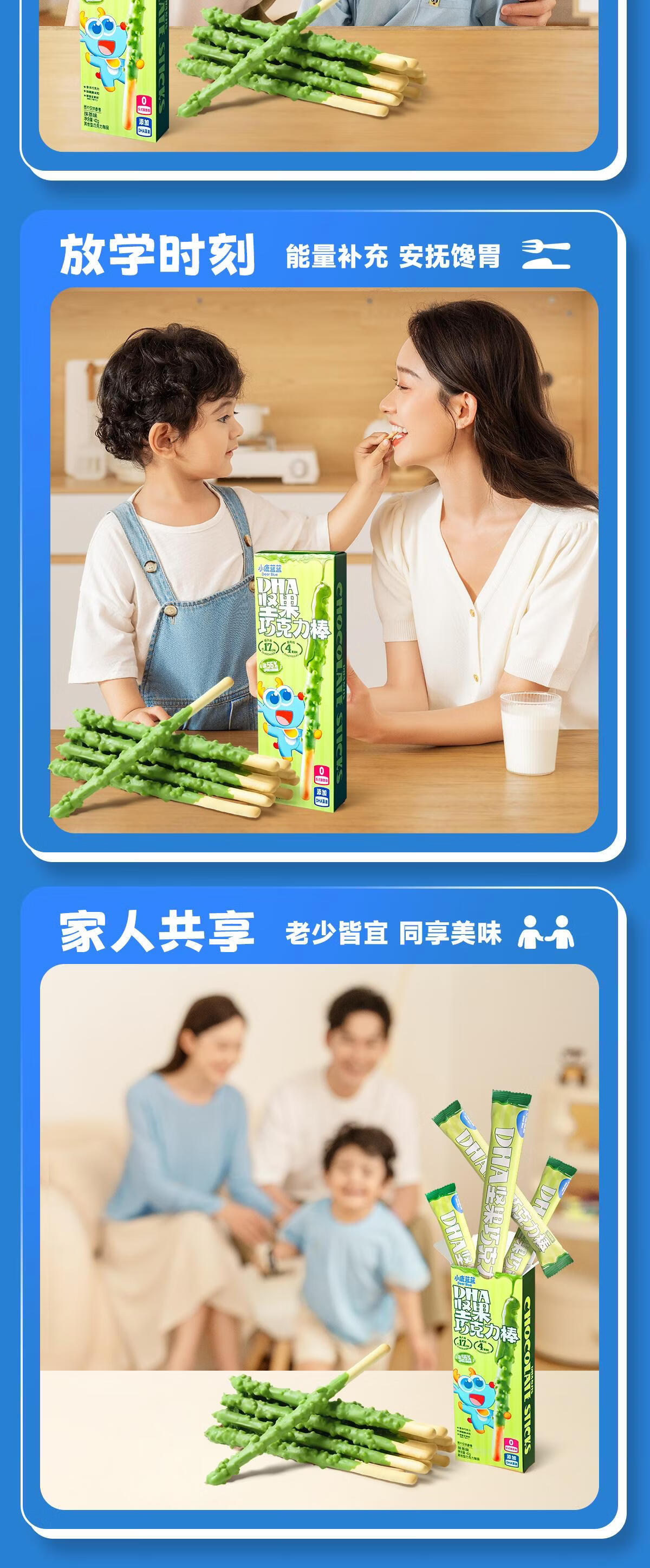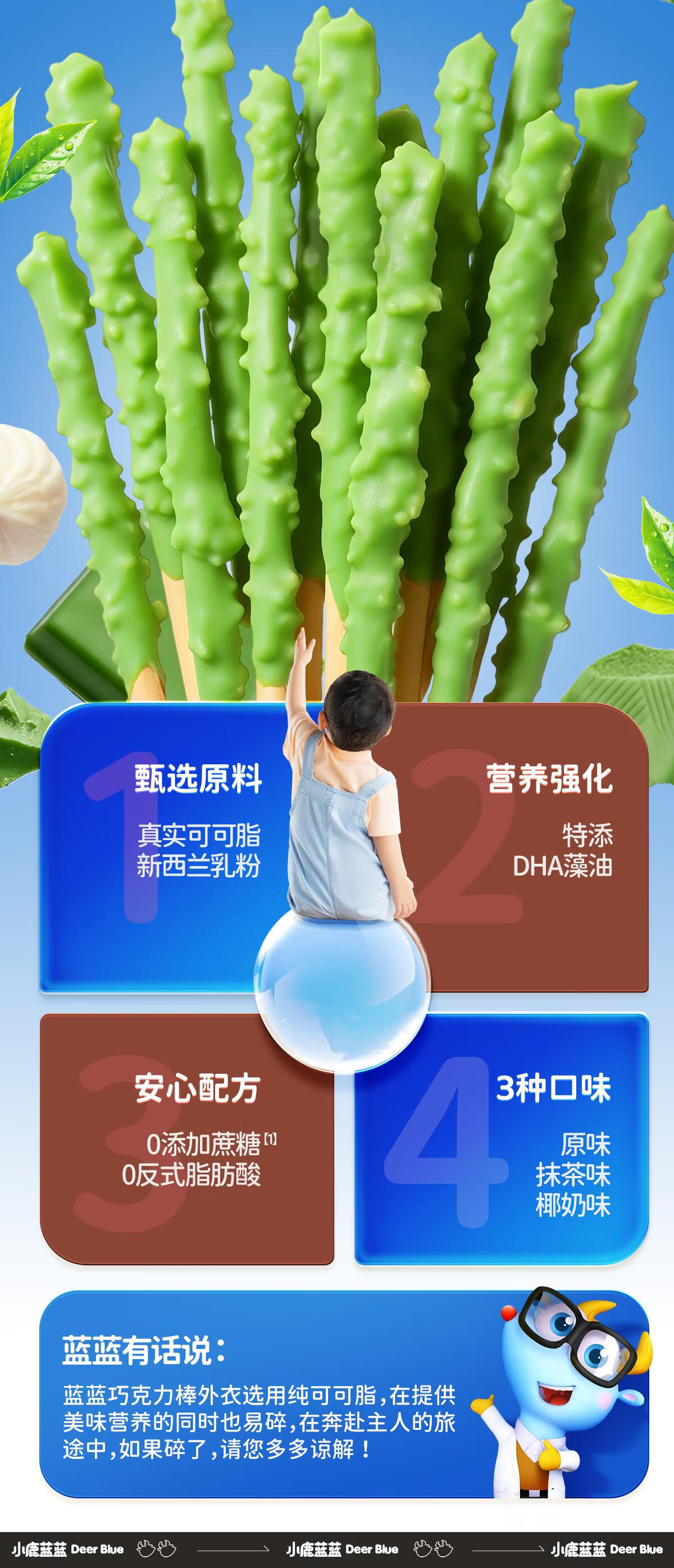 小鹿蓝蓝DHA坚果牛奶巧克力棒抹茶味宝宝儿童零食饼干磨牙棒126g3盒