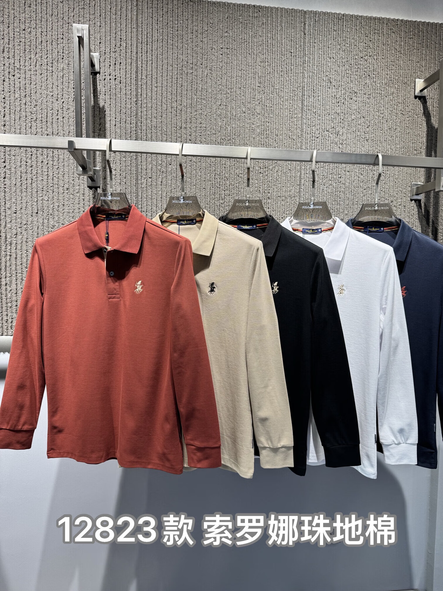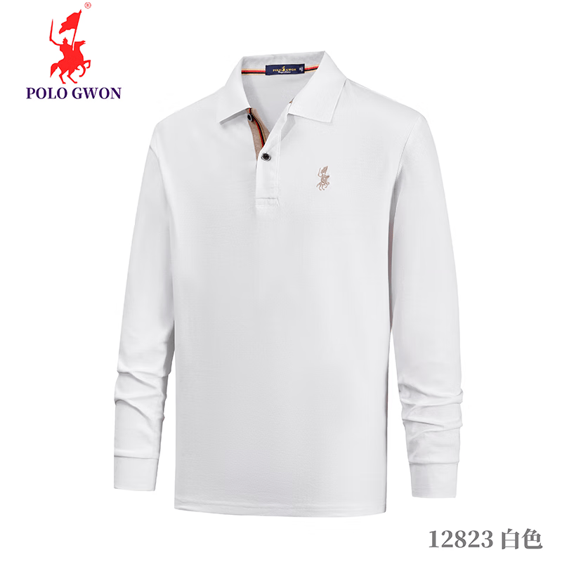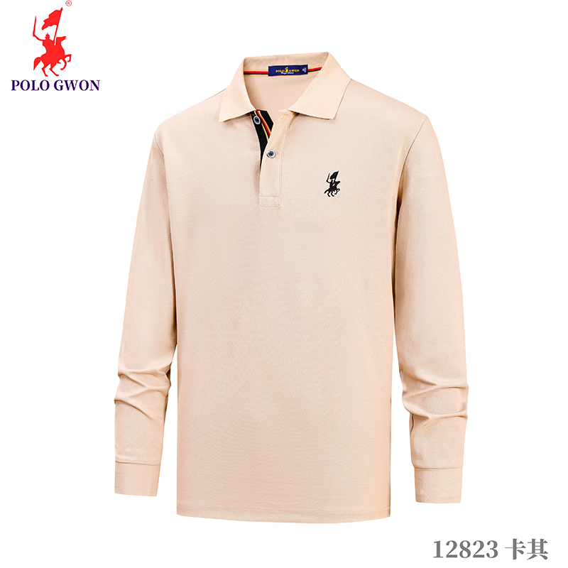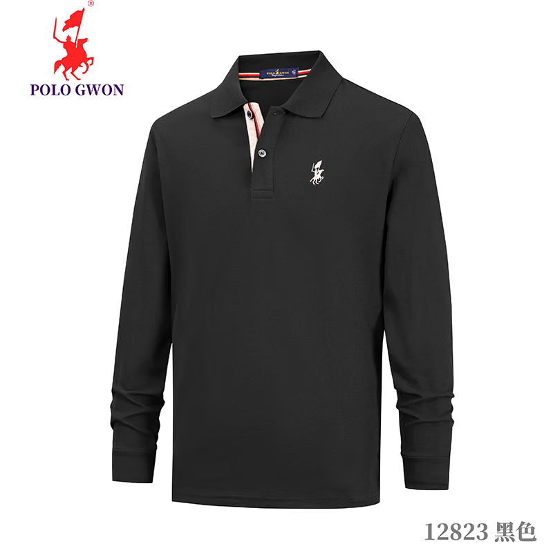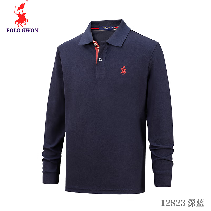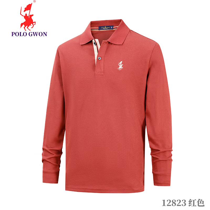 POLOGWON保罗【商务休闲】男士长袖t恤翻领纯色宽松大码秋季款上衣打底衫 红色 4XL (建议200-220斤)