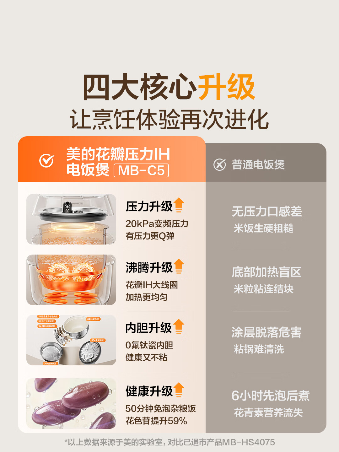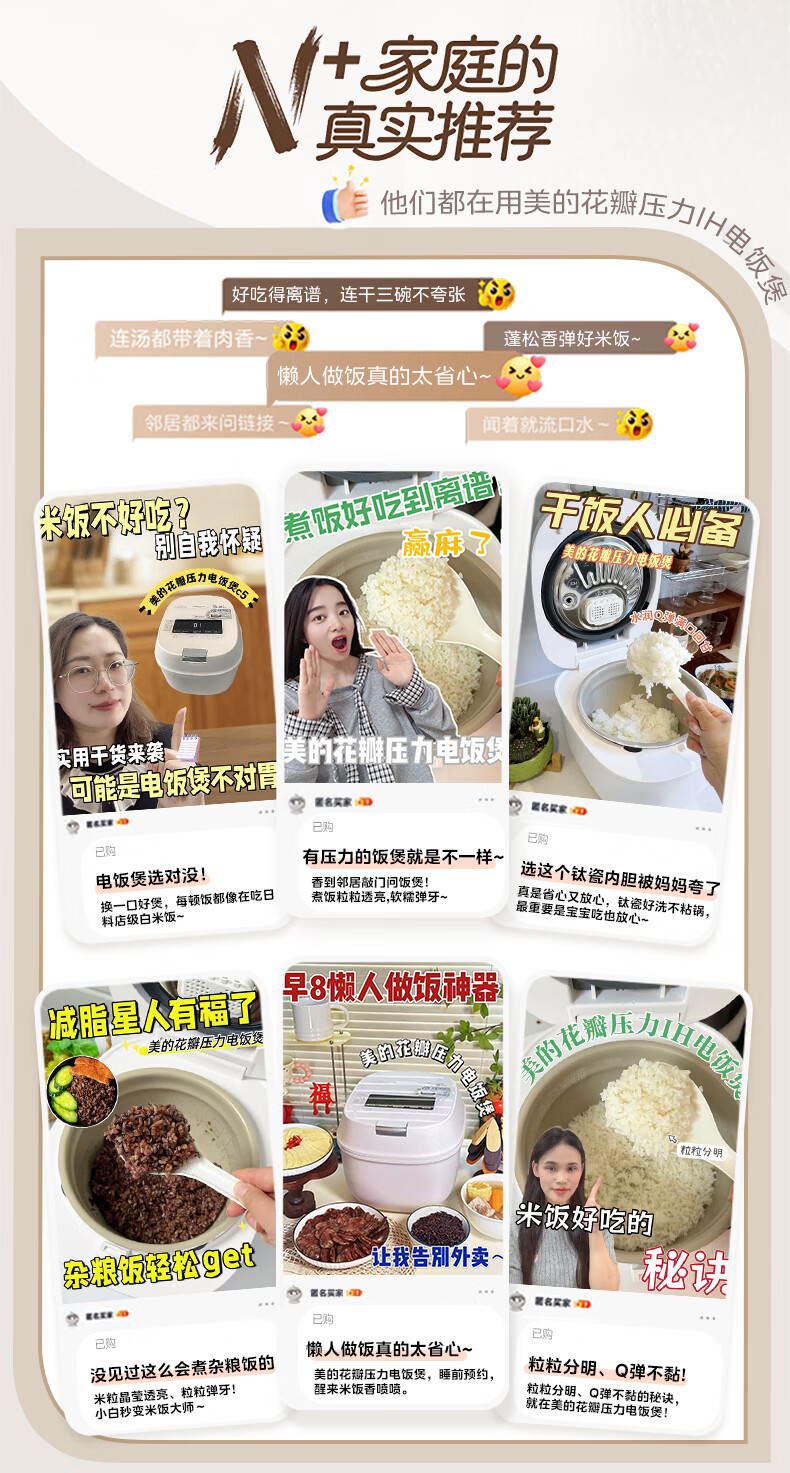 美的(Midea)【重磅新品】花瓣压力电饭煲IH加热压力大师电饭锅3-4-5人含钛0氟内胆家用免泡杂粮MB-C5一级能效 【旗舰新品】花瓣IH压力- 4L