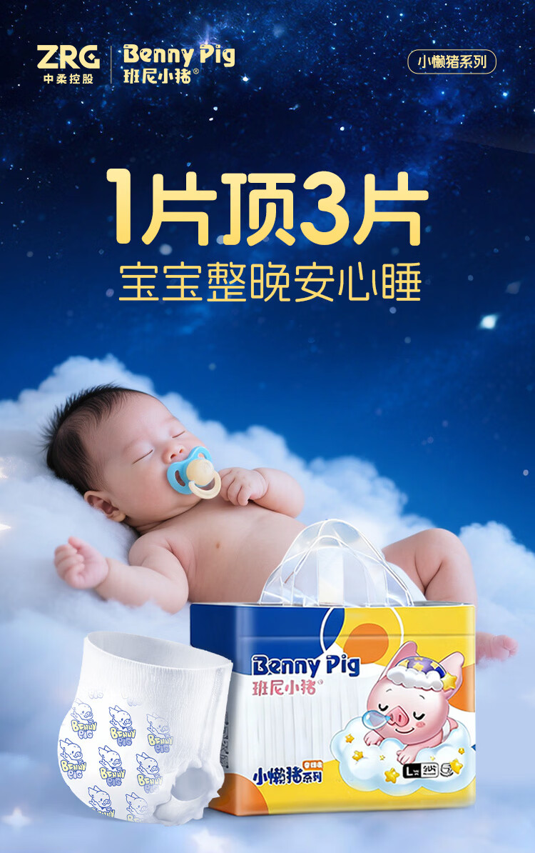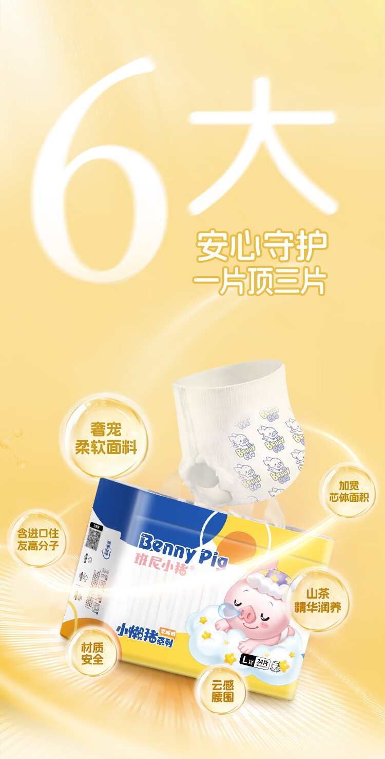 班尼小猪旗舰正品小懒猪山茶精华护臀拉拉裤婴儿尿不湿超薄透气干爽1包 XL拉拉裤 30片/包(12至17KG)