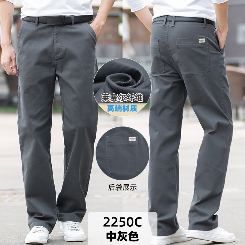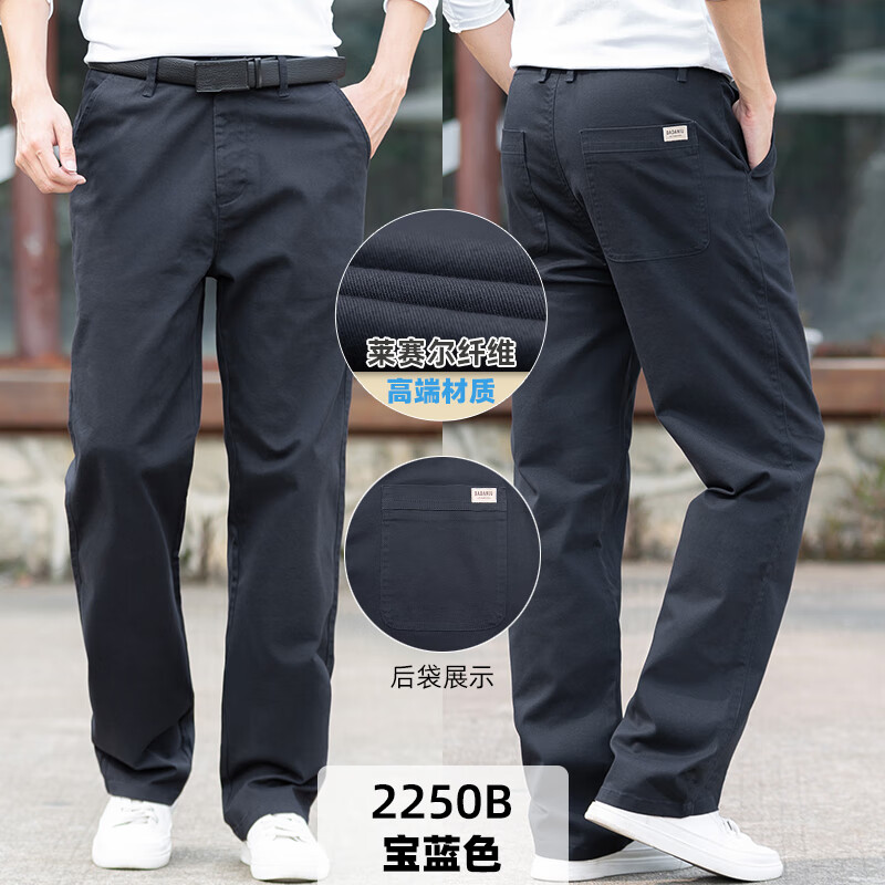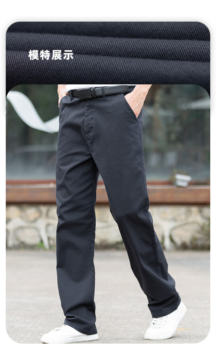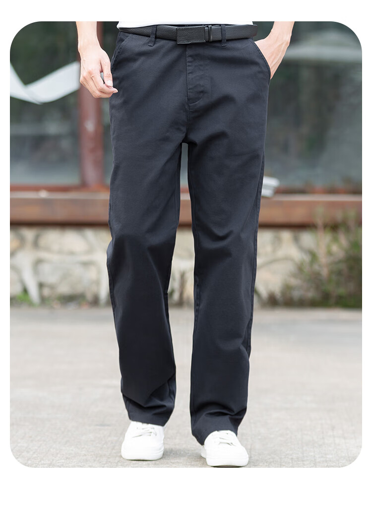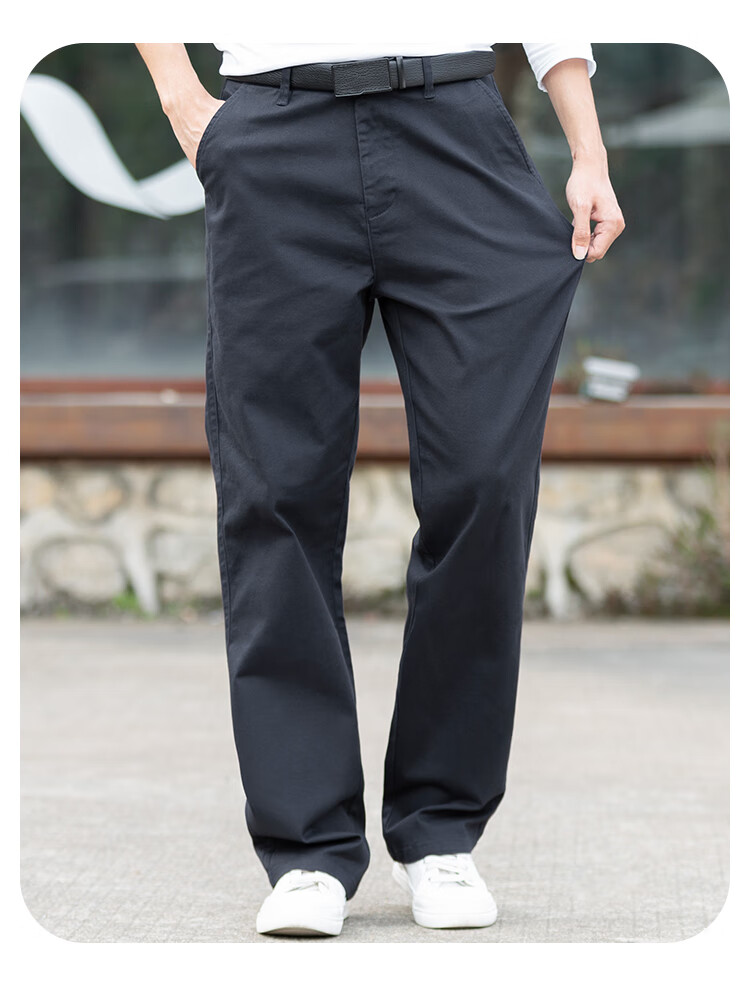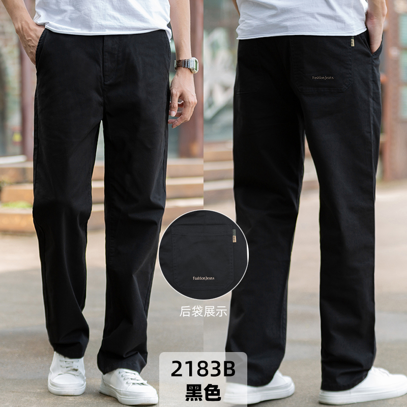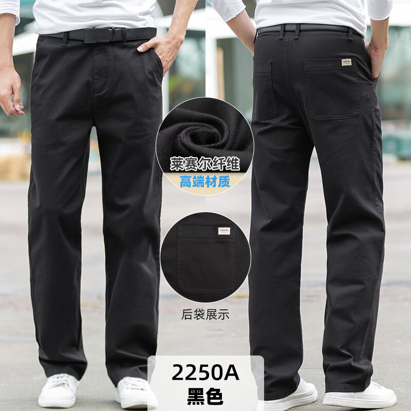 大大牛秋冬季直筒宽松休闲男裤高档舒适大码弹力百搭时尚商务纯色长裤子 黑色2250A 常规 44 裤腰3尺4