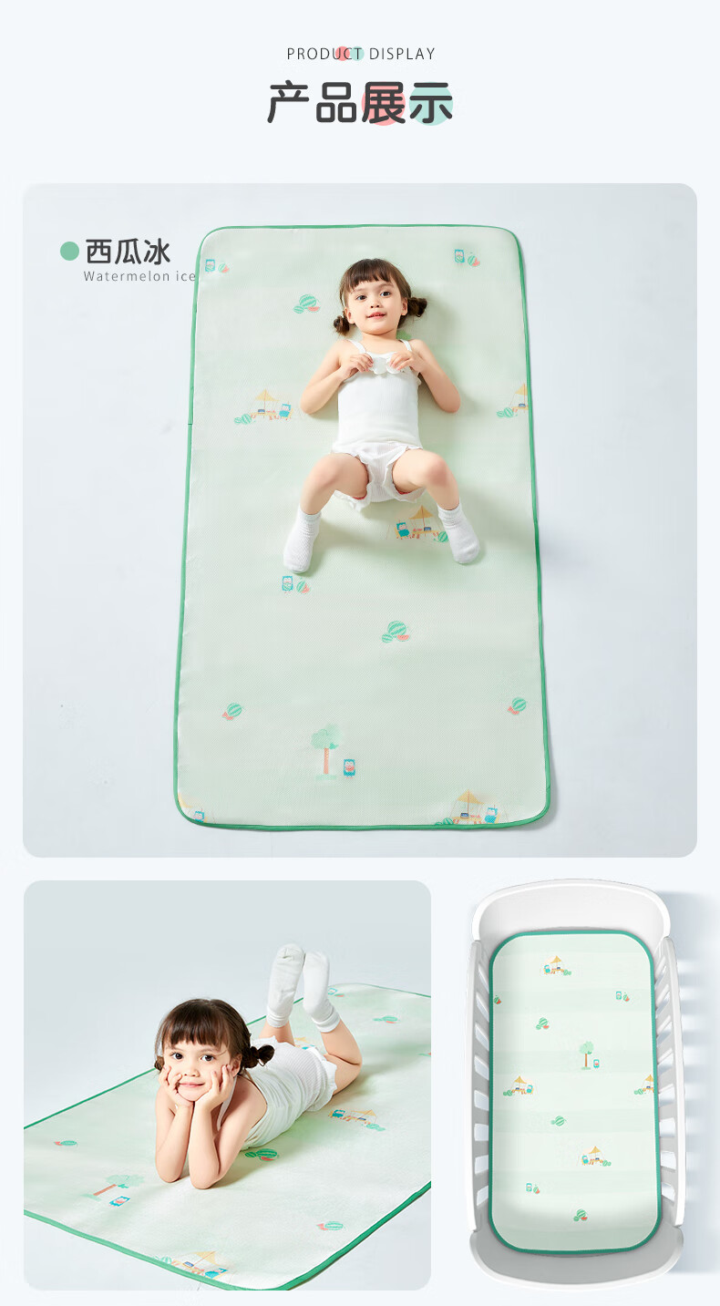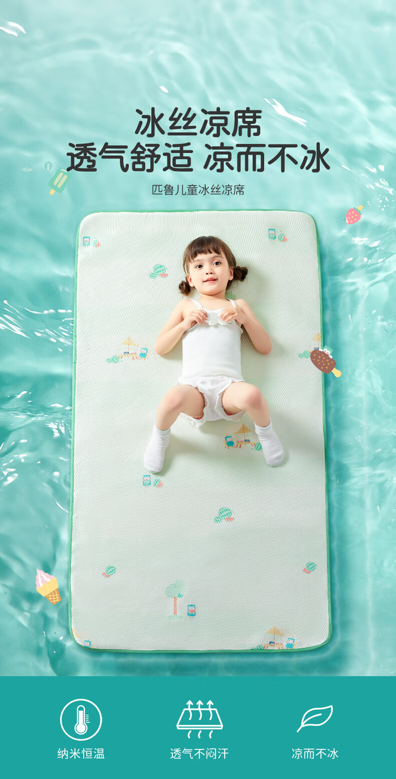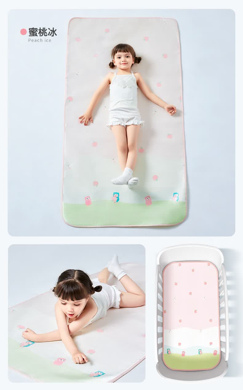 匹鲁婴儿凉席夏季A类儿童凉席幼儿园冰感丝席子午睡透气冰丝席 蜜桃冰(单凉席) 110cm*65cm