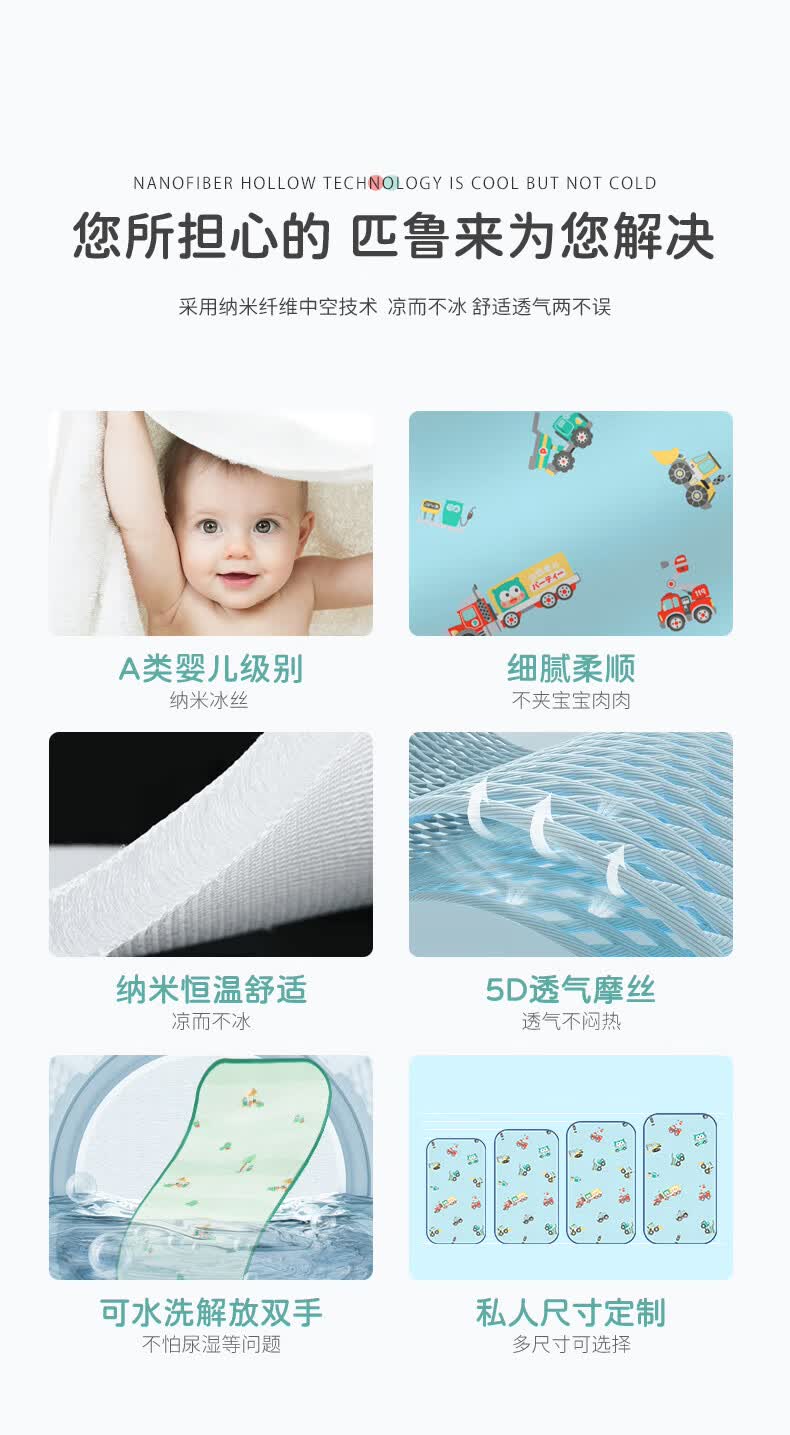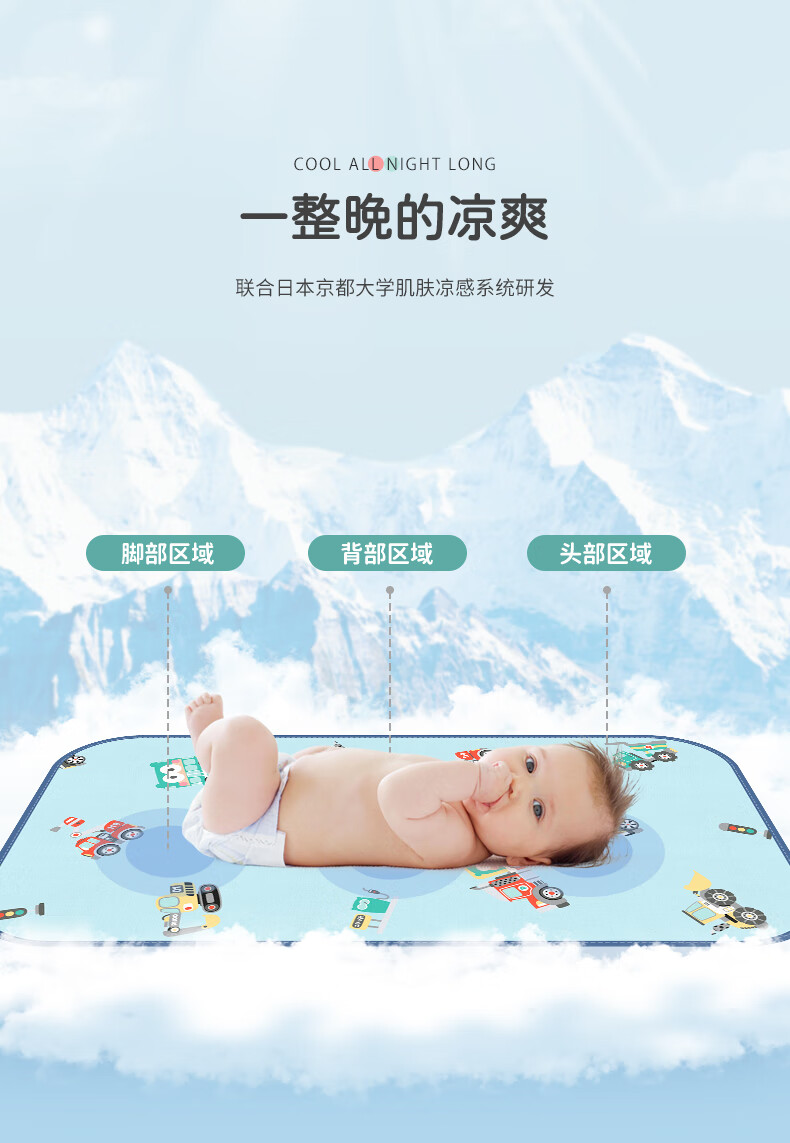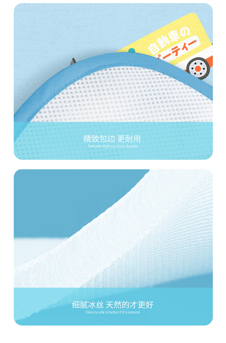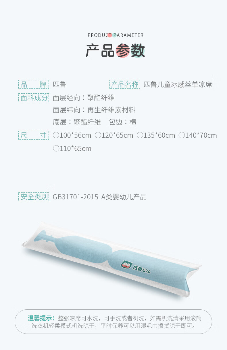 匹鲁婴儿凉席夏季A类儿童凉席幼儿园冰感丝席子午睡透气冰丝席 蜜桃冰(单凉席) 110cm*65cm