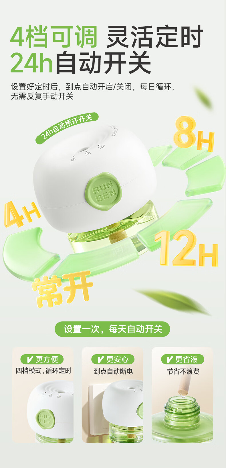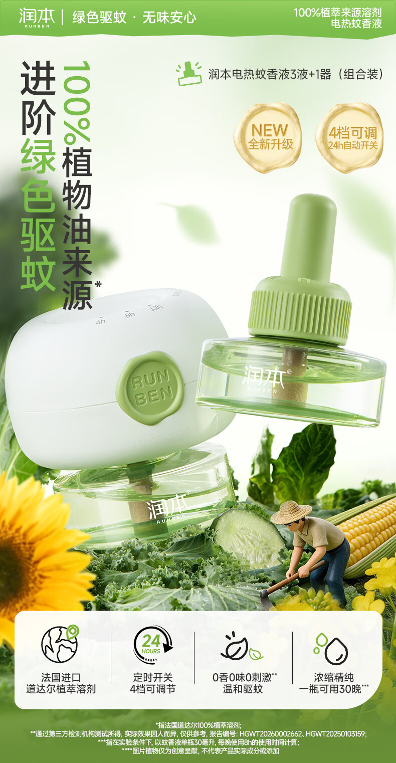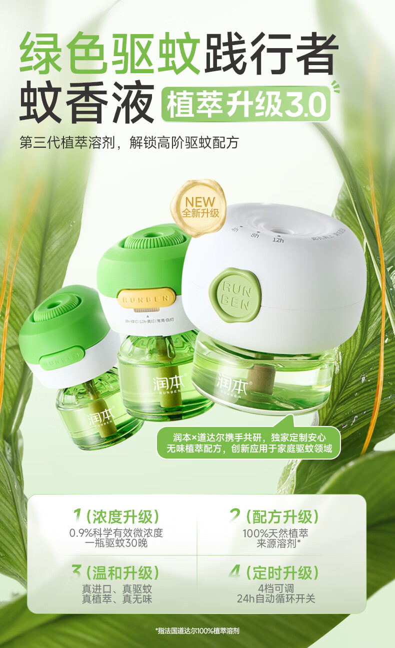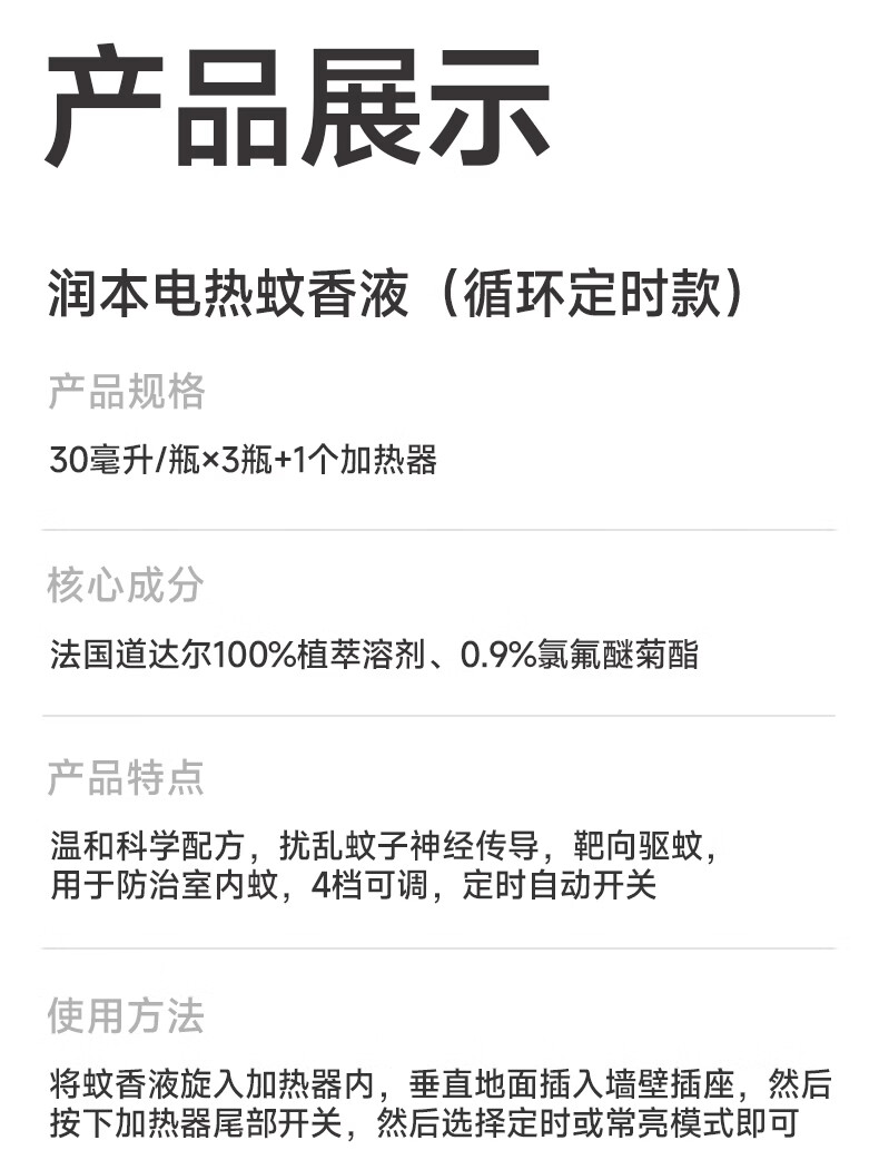 润本蚊香液电蚊香液驱蚊液定时加热器驱蚊防蚊蚊香无香型驱蚊水 【高性价比】无味8瓶液(不含器)