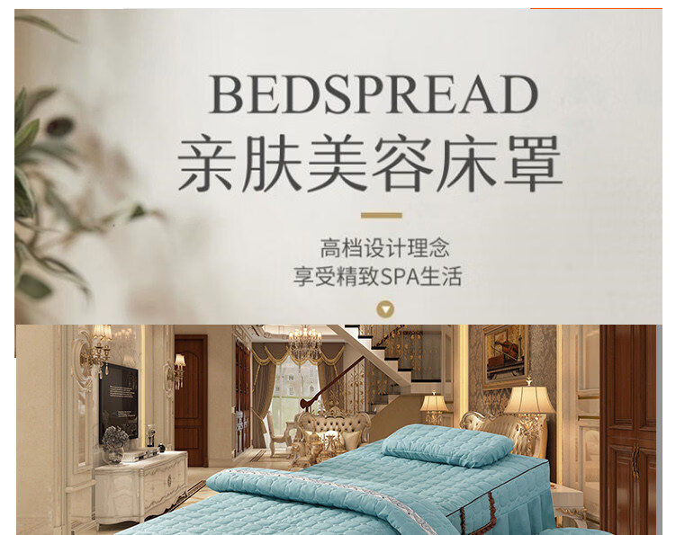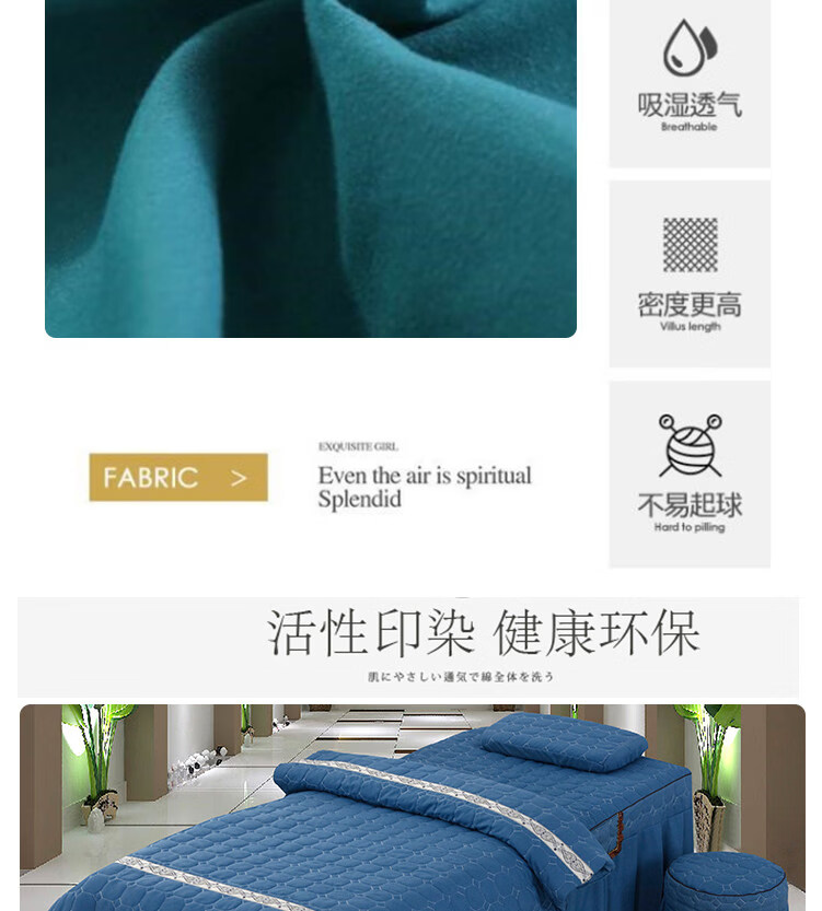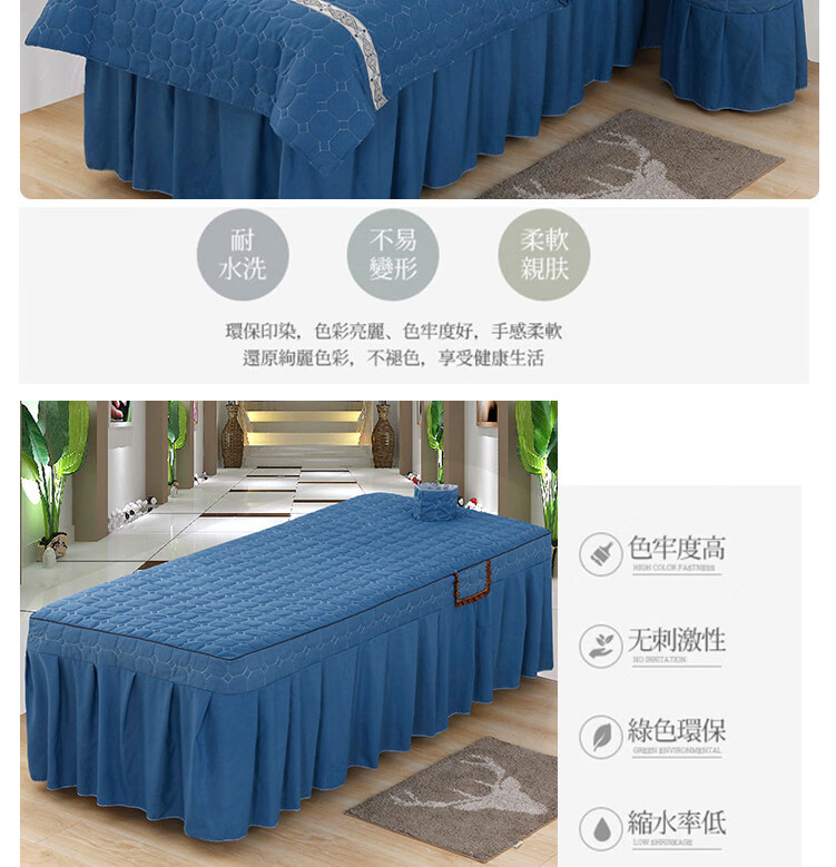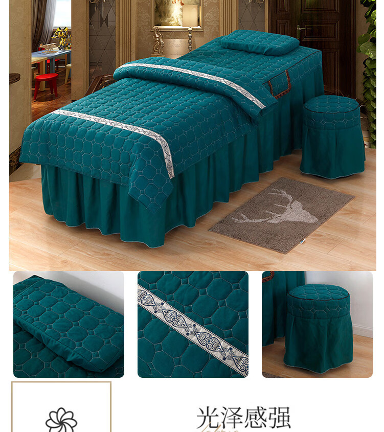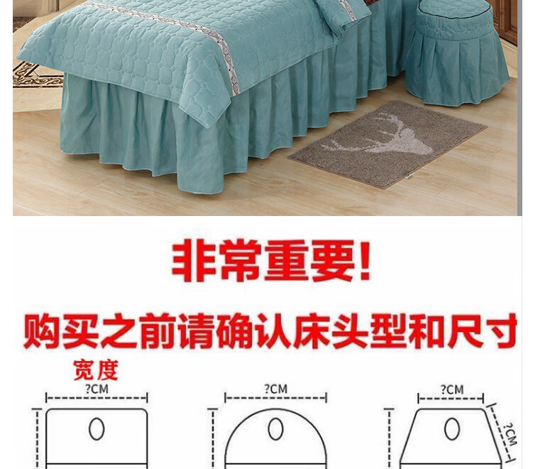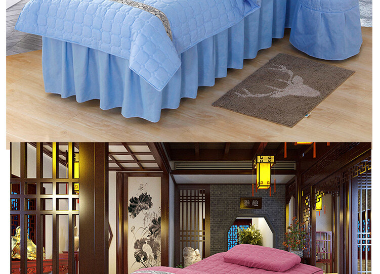 正圣美容院床罩按摩推拿床套四件套单件理疗纯色带洞床单简约床裙床罩 小花香--湖蓝色 方头四件套 190cm*80cm