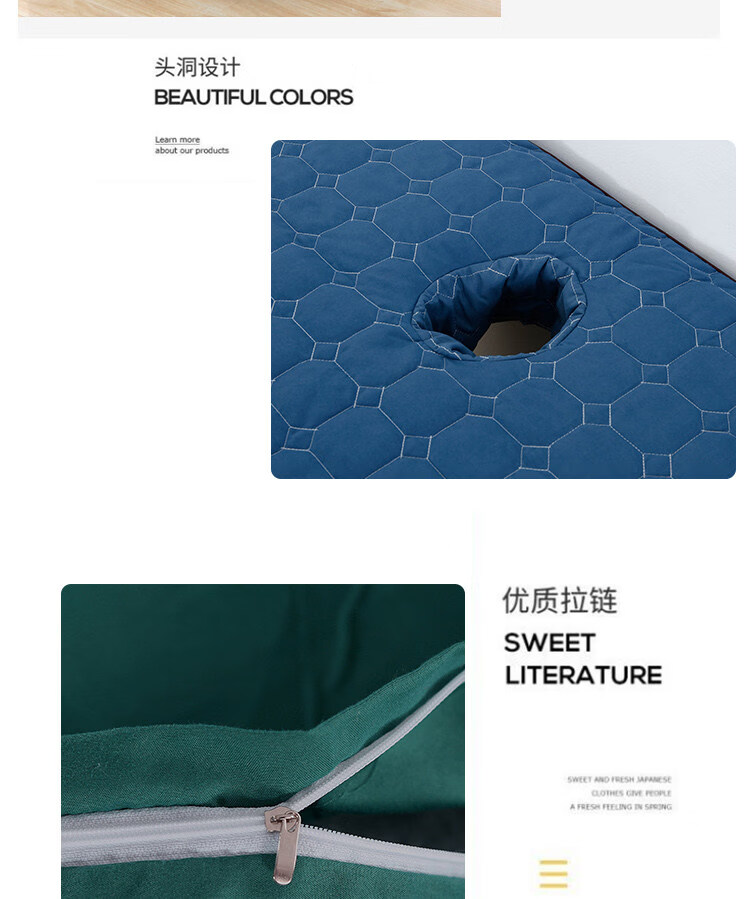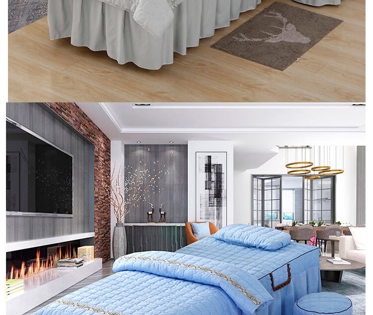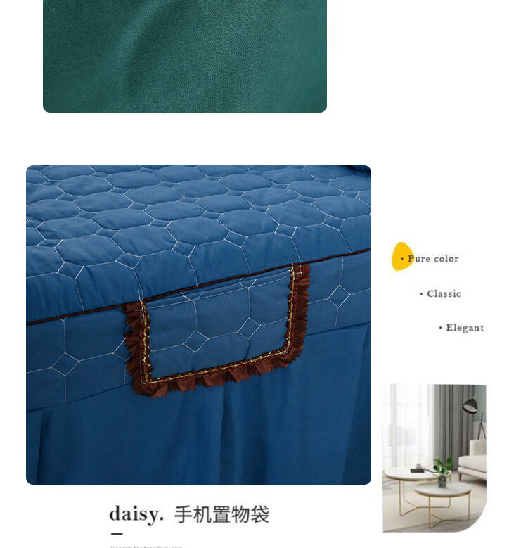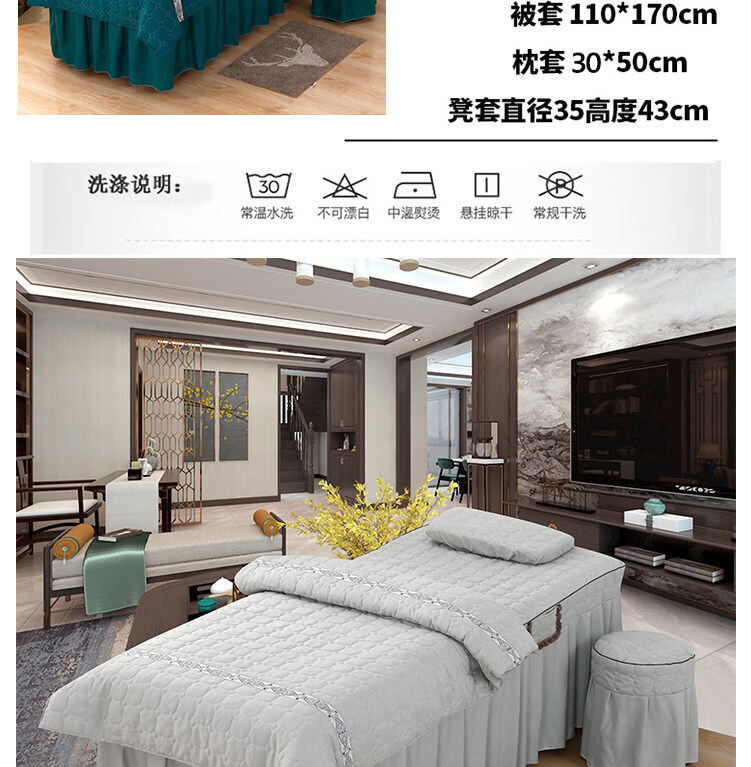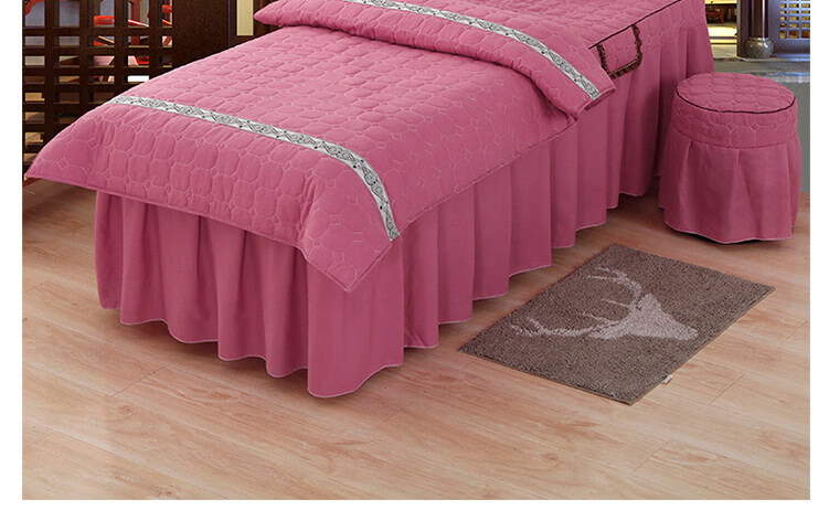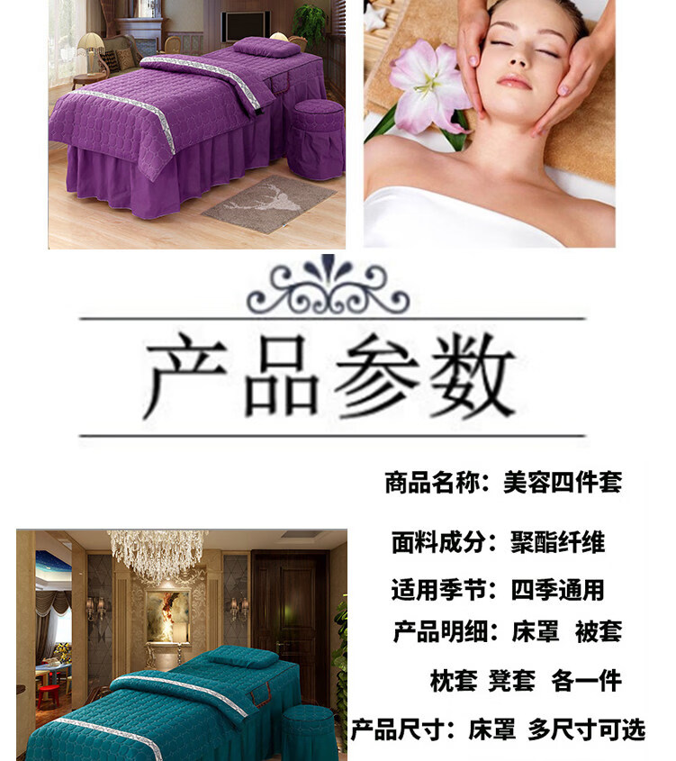正圣美容院床罩按摩推拿床套四件套单件理疗纯色带洞床单简约床裙床罩 小花香--湖蓝色 方头四件套 190cm*80cm