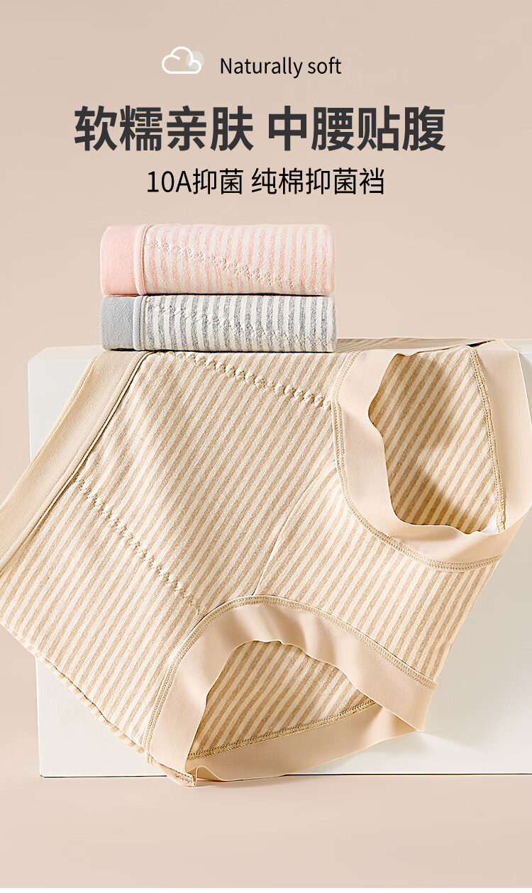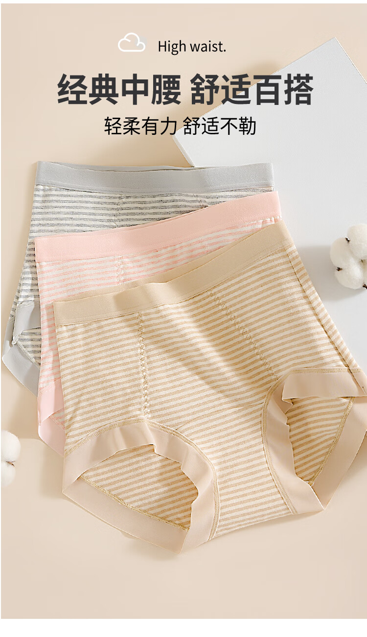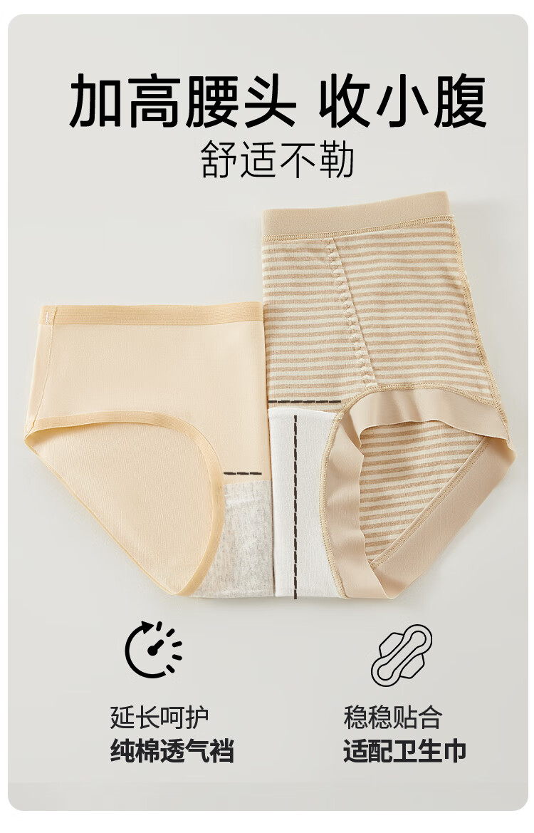 古今(GUJIN)内裤女士高腰收腹提臀亲肤绵柔抑菌三角裤纯棉底档无痕透气不卡裆 肤色+浅粉+浅灰 高腰轻塑形 3条 2XL (推荐体重:60-70kg)