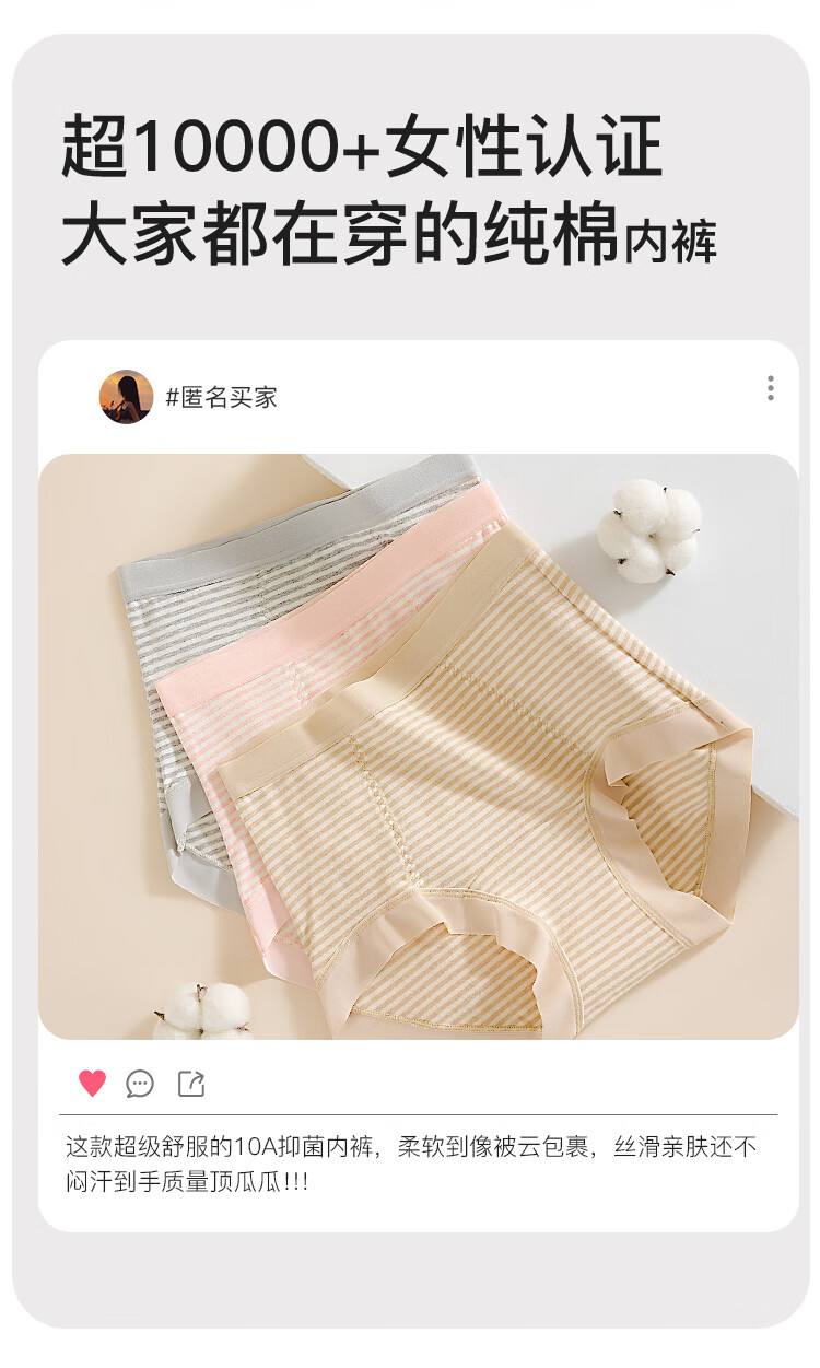 芝麻时光100%纯棉内裆10A抗菌抑菌底档女三角裤中腰纯棉内裤 精梳棉女生 【7条装】混色 [颜色随机混] XL 建议120-145斤