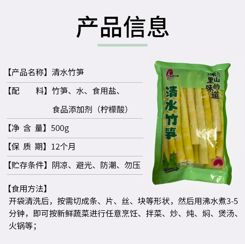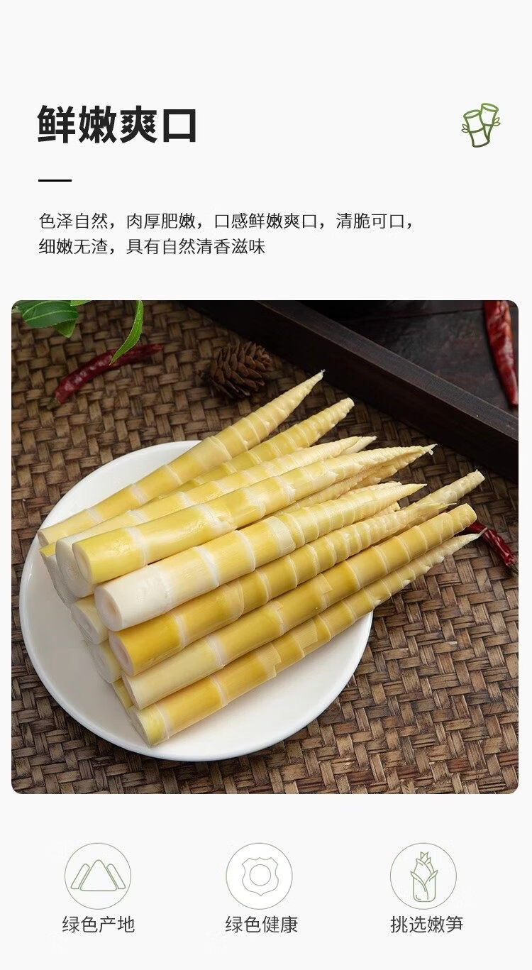 乐安竹笋清水竹笋新鲜嫩笋尖小竹笋脆笋江西特产蔬菜火锅麻辣烫食材 500g*3袋【超值推荐】