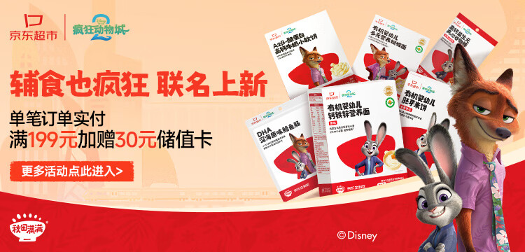 秋田满满疯狂动物城联名有机蝴蝶面1-3岁宝宝面条160g 婴儿辅食儿童早餐面