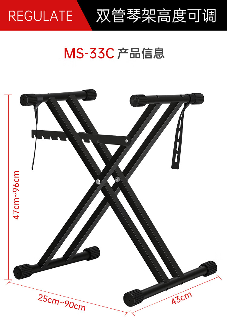 莫森(MOSEN)MS-33C琴架 61键88键双管加粗加厚便携可升降通用X型支架