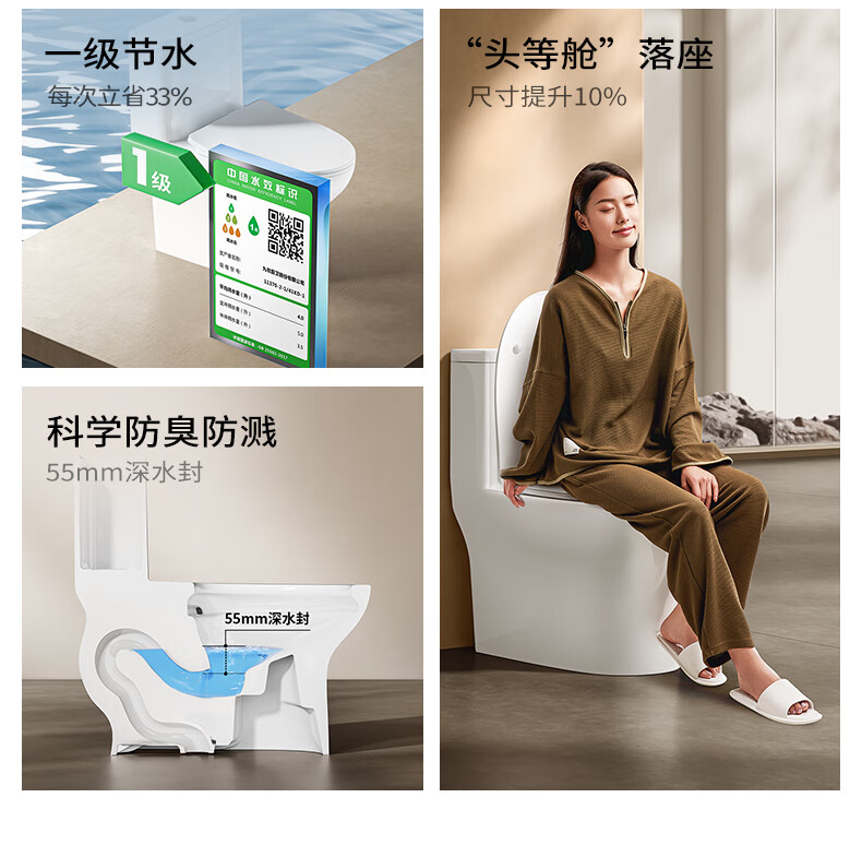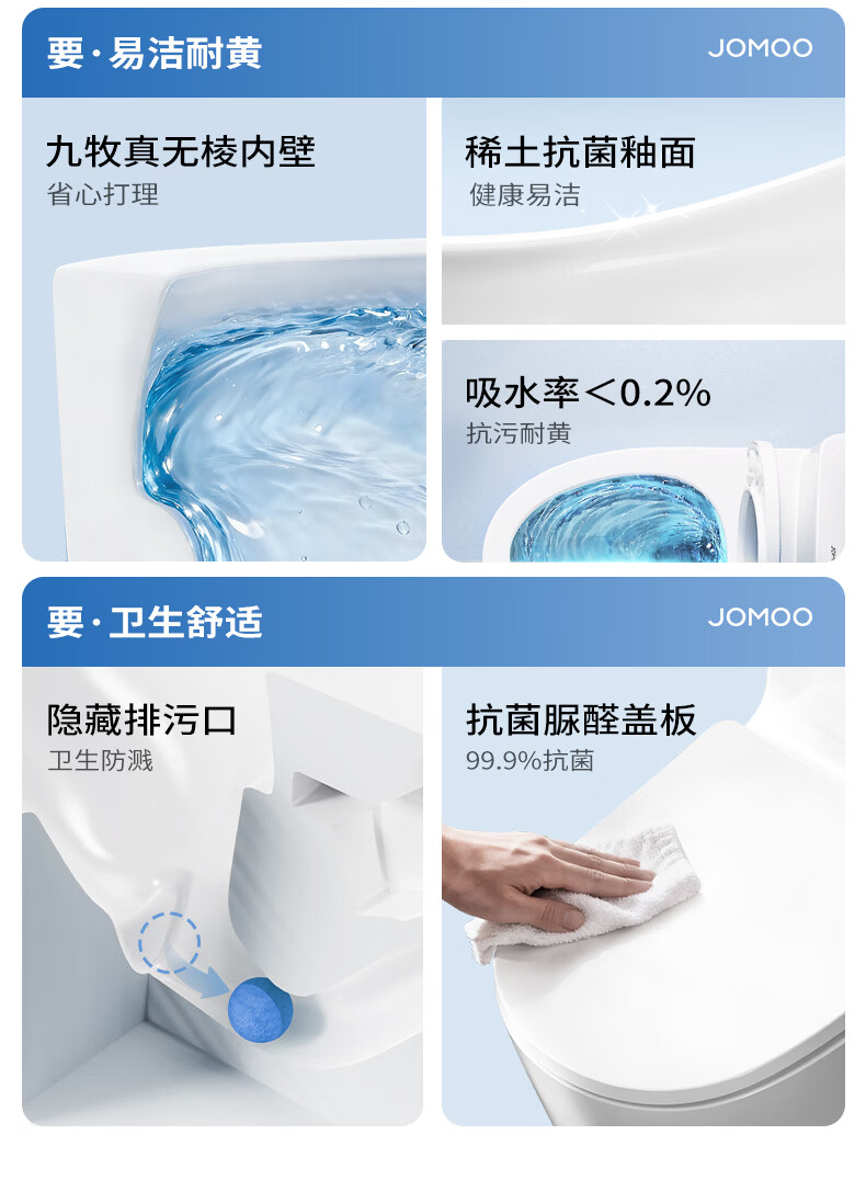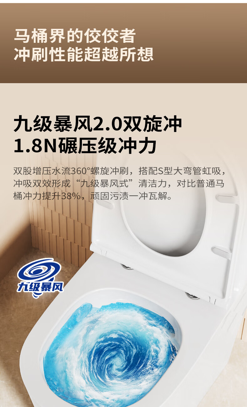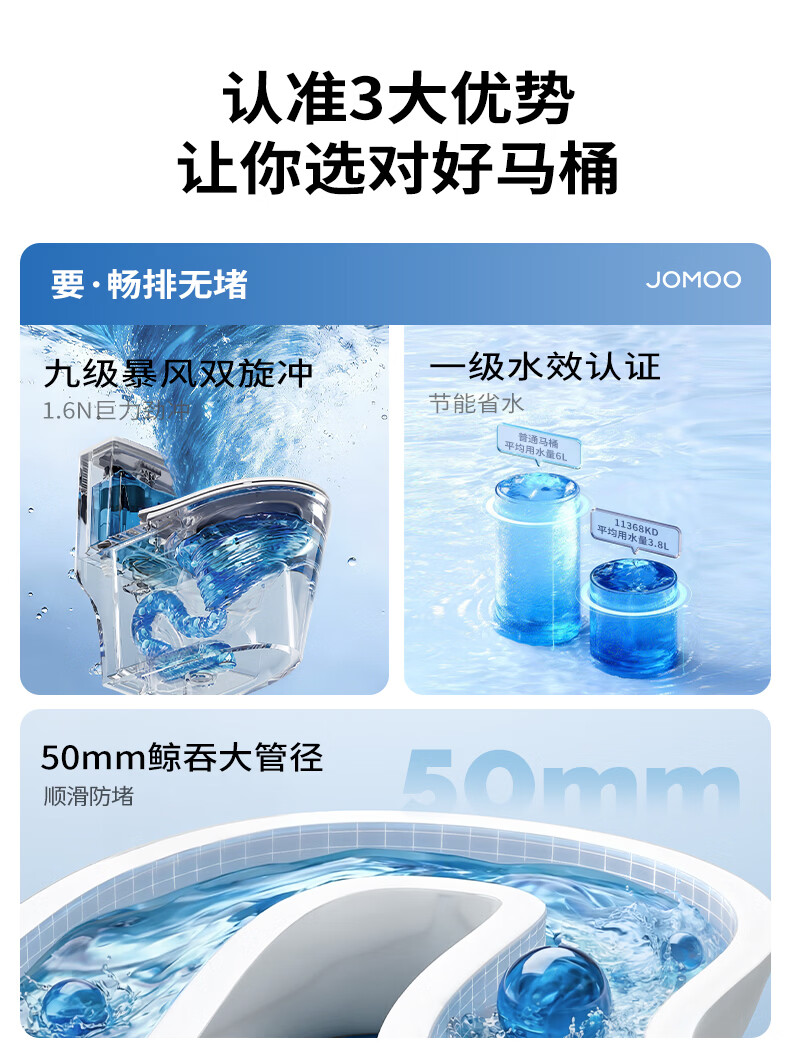 JOMOW马桶家用马桶静音防臭大管道抽水海旋虹吸节水喷射虹吸式 新款10.0大管道-升级海旋虹吸 305/300mm (送货入户)