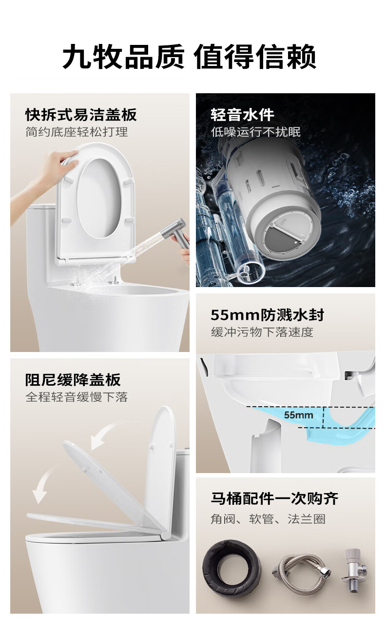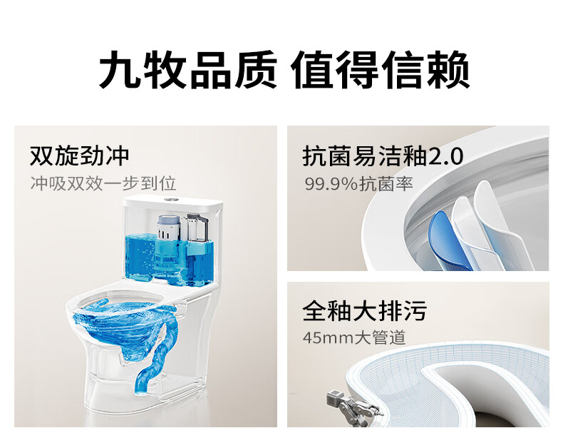 九牧(JOMOO)马桶家用一级水效防臭卫浴虹吸式马桶坐便器大冲力抗菌卫生间坐厕 【镇店热卖-旋冲升级】11370 305坑距(2515城包安装)