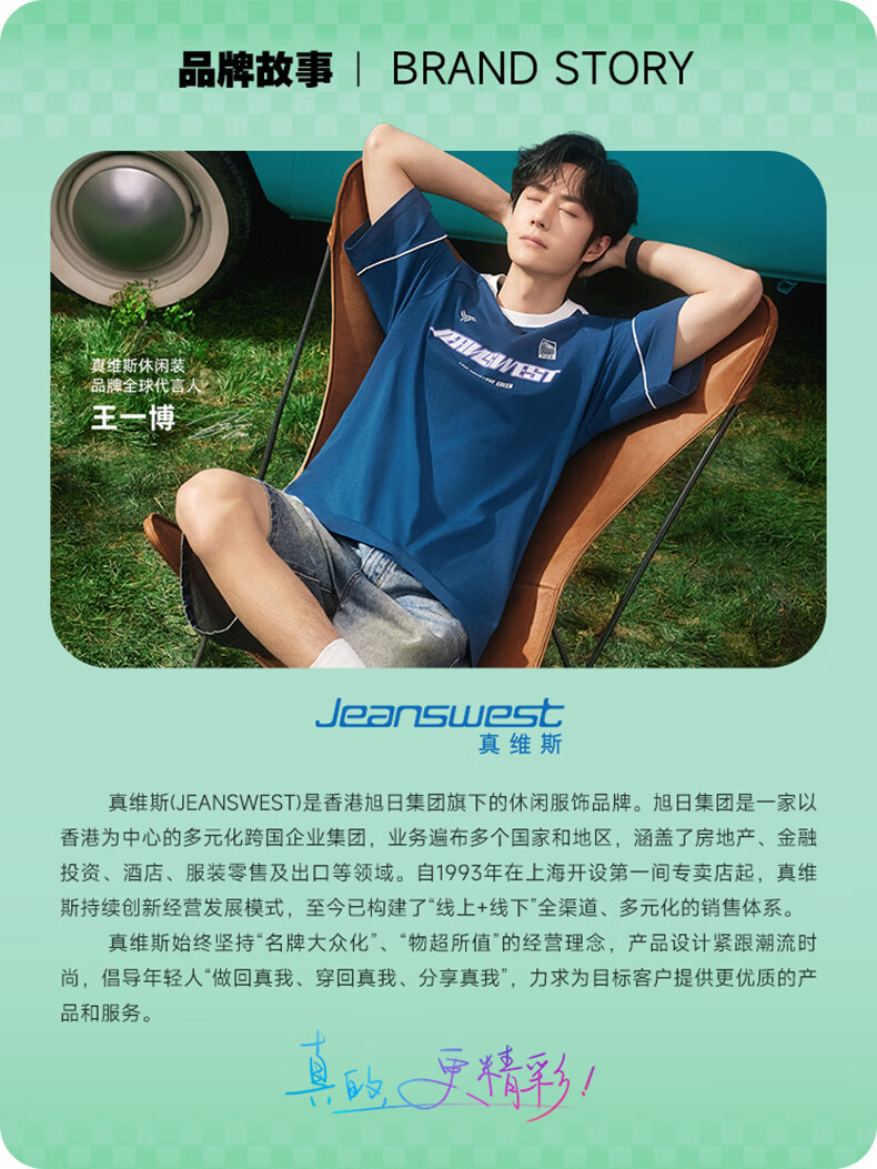 真维斯(Jeanswest)圆领内搭打底衫男春夏款纯棉透气t恤2026新款男士高级感潮牌长袖 冰蓝 噪点斑驳蓝字 M