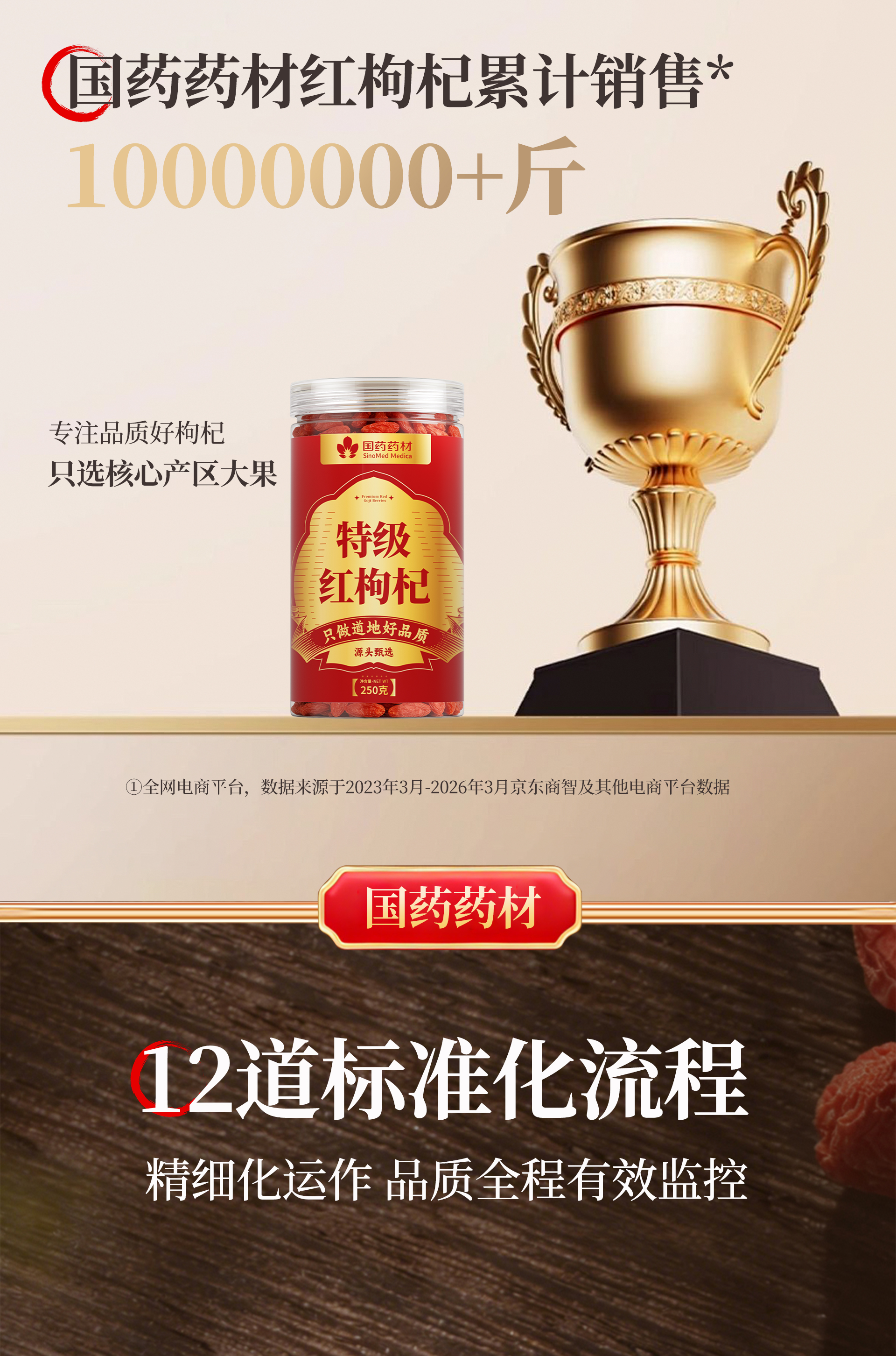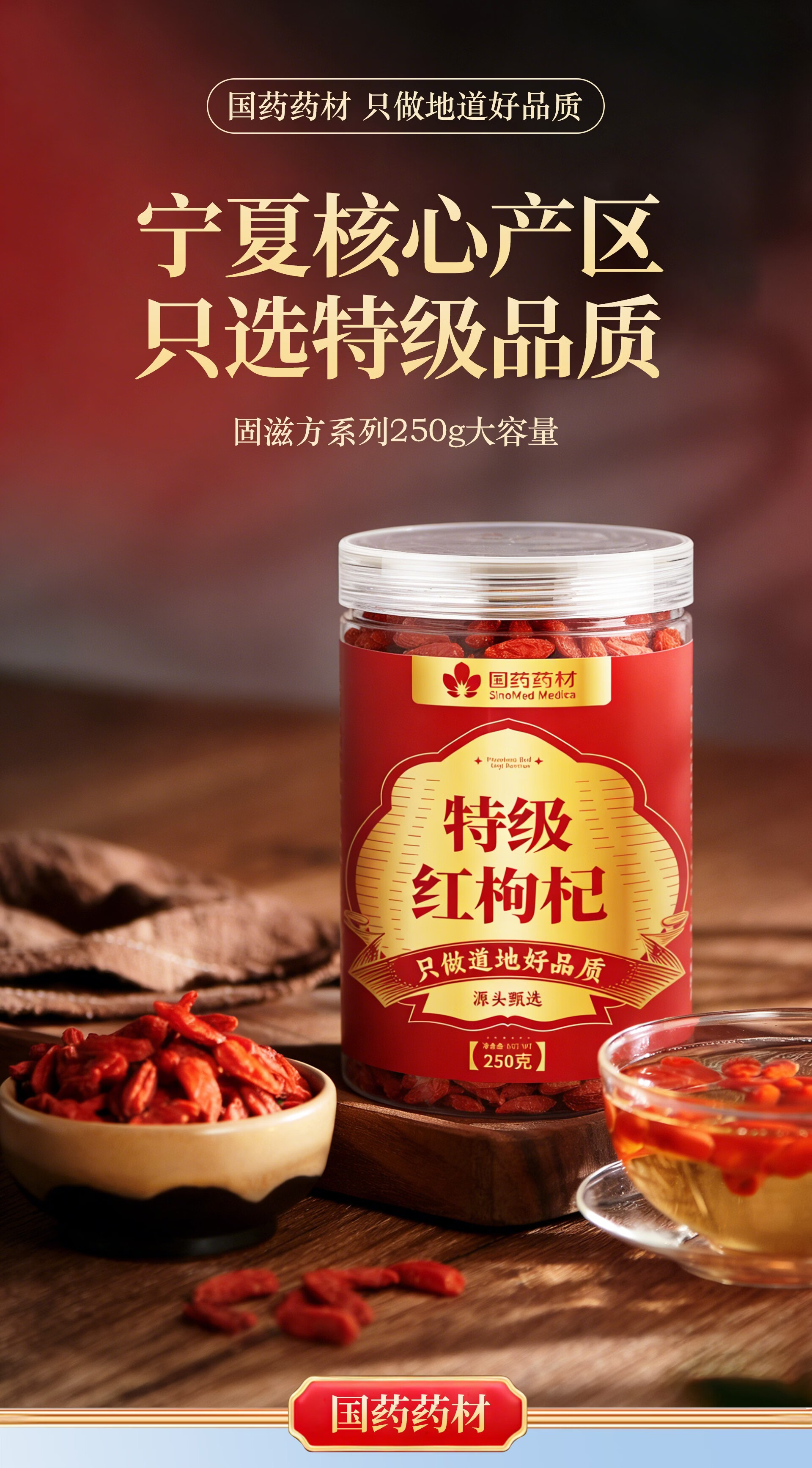 固滋方国药药材 枸杞子500g宁夏特级正宗原产地新货 枸杞泡水喝专用免洗 【特优贡果】精品 250g*1罐