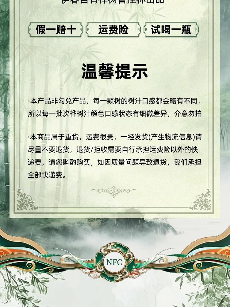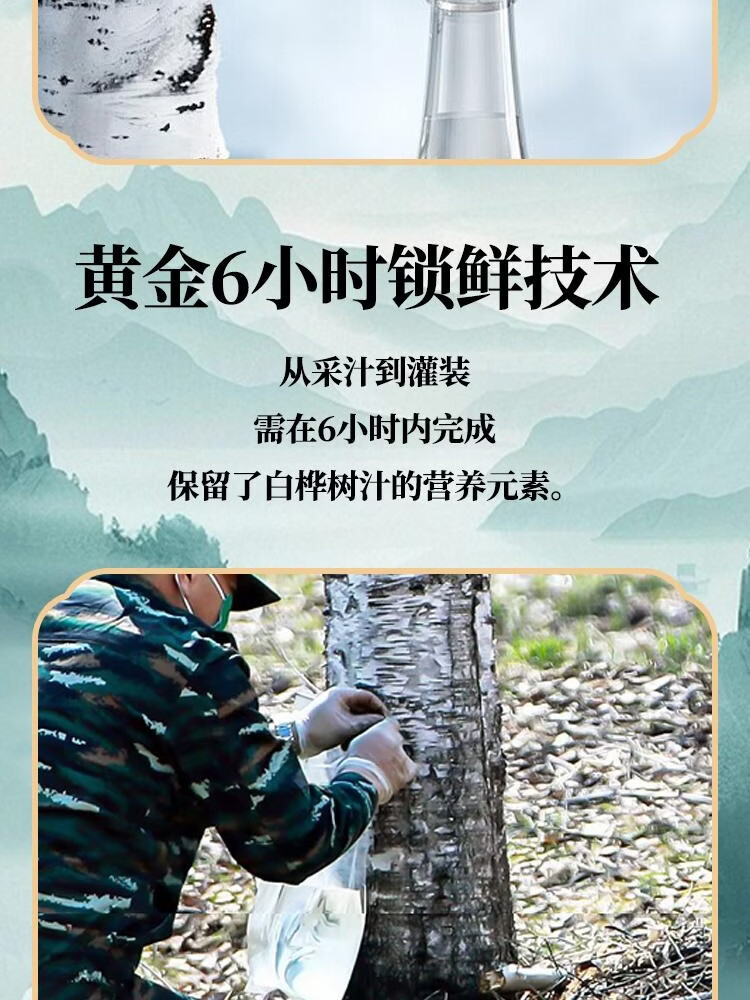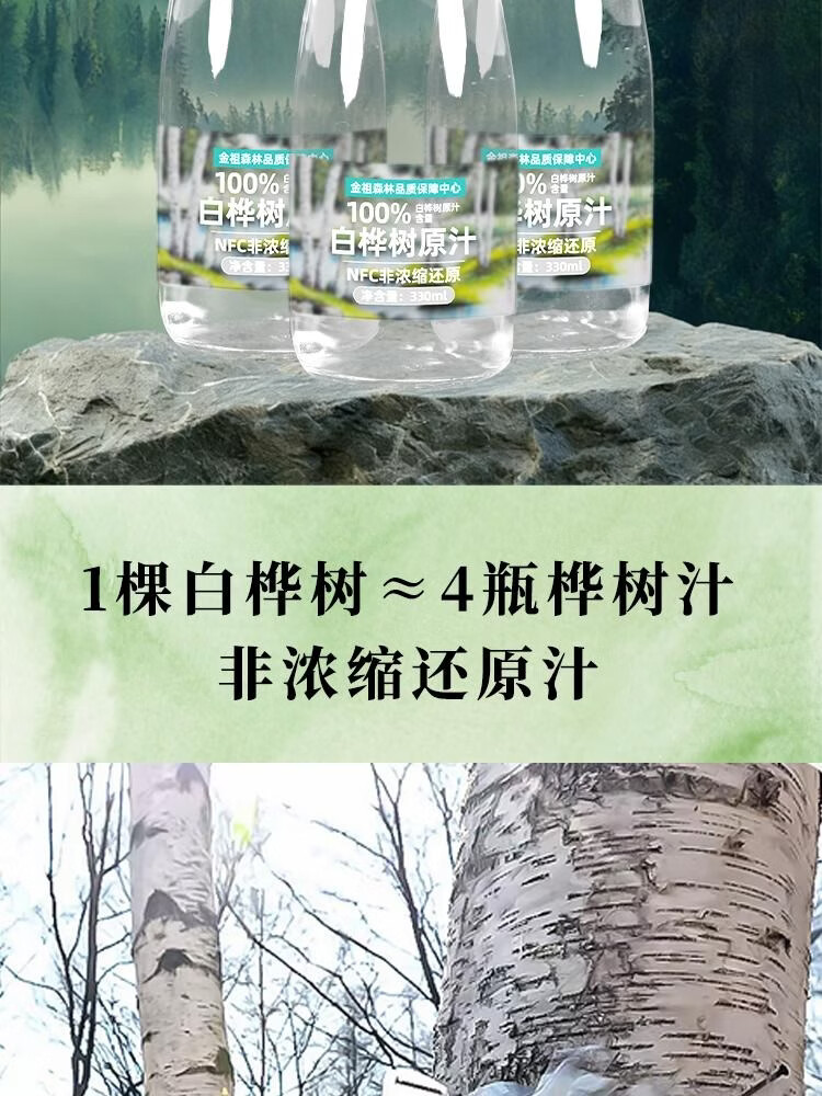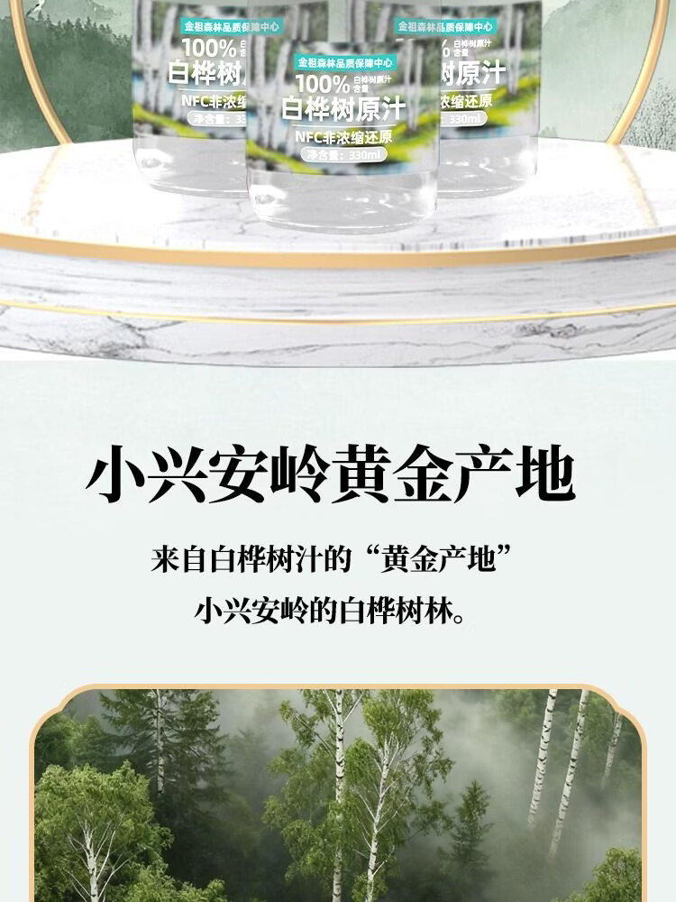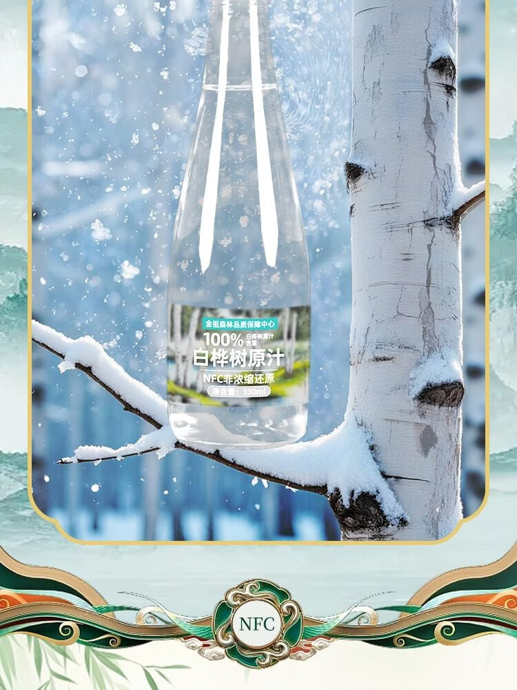 森工集团泉阳泉长白山天然白桦树原汁100%nfc解腻熬夜宿醉植物原液养生水 330ml*6瓶*2箱(新款)