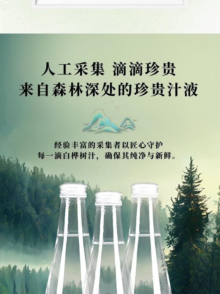 九峰山养心谷100%白桦树原汁(国风系列)无污染天然桦树林真汁玻璃瓶 330ml*6瓶