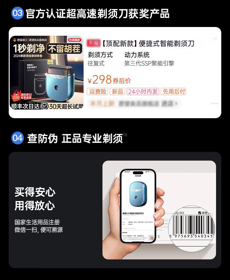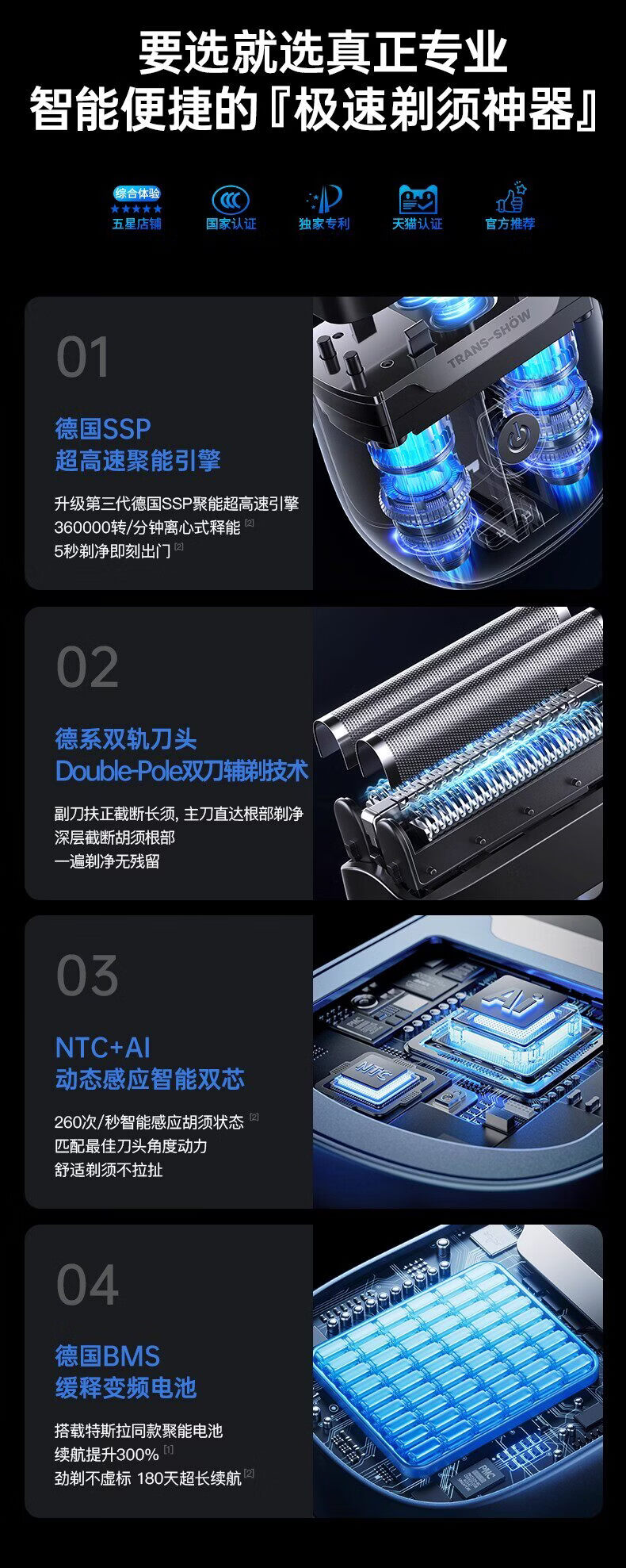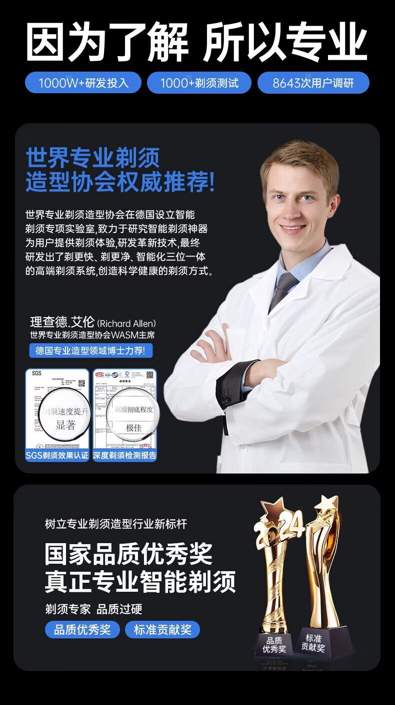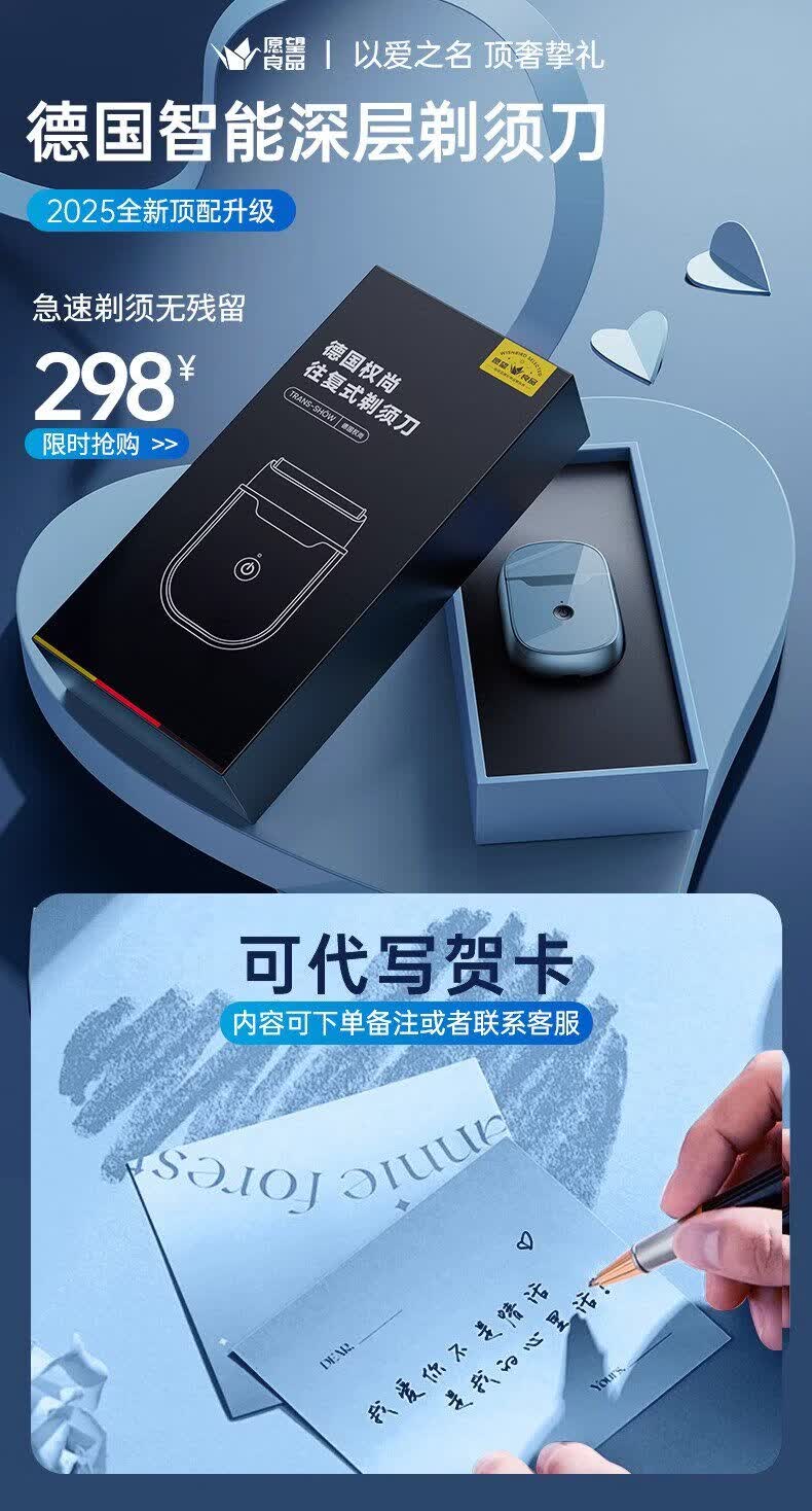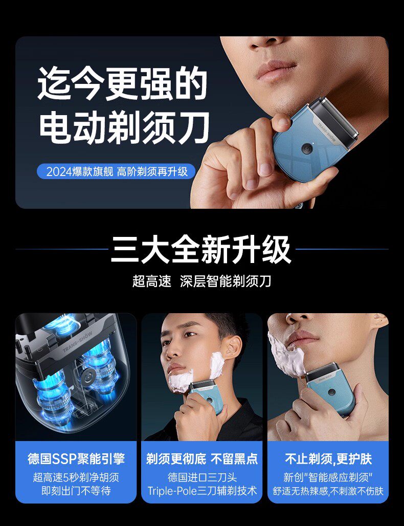 权尚【德国品牌丨深层除根】智能电动剃须刀 2026新款小巧便携男士刮胡刀浓密胡茬敏感肌全身水洗秒净 【雾霾蓝·顶配新款】深层剃净·呵护肌肤·智能数显 【德国旗舰·精美礼盒】百万热销·敏感肌更舒适