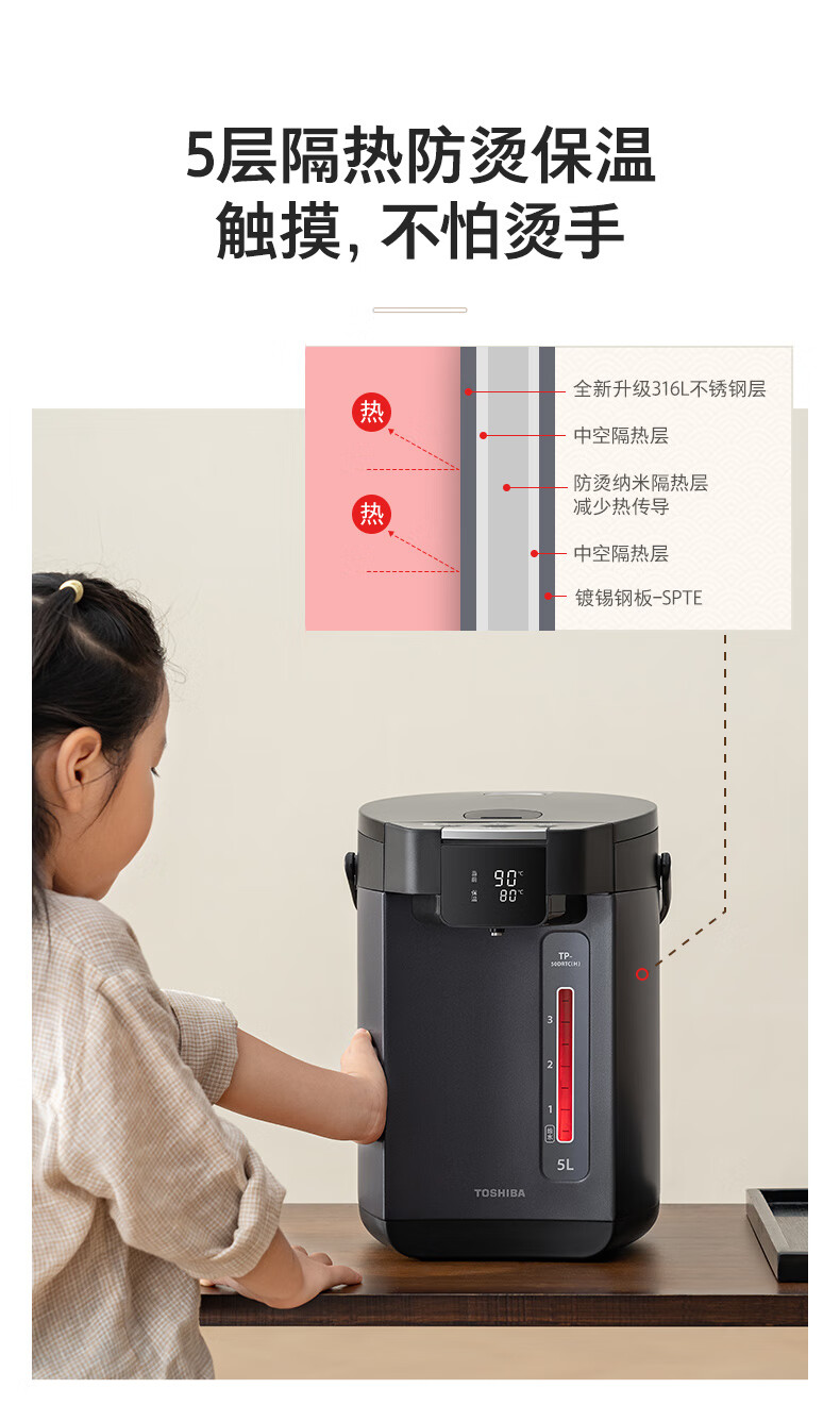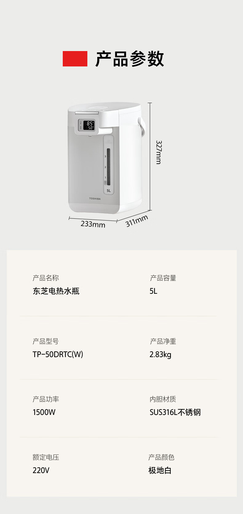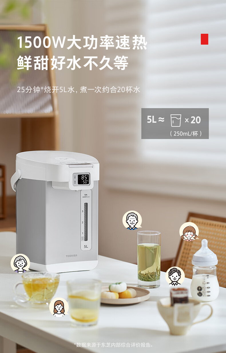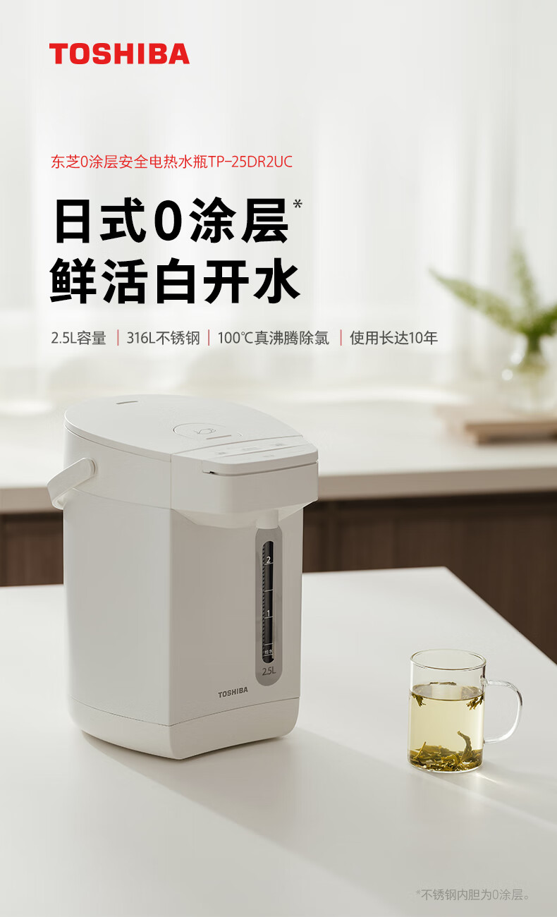 东芝(TOSHIBA)【官方旗舰店】水物语安全电热水瓶316L不锈钢0涂层0胶水电热水壶大容量恒温沸腾除氯烧水壶多段 2.5L 【316L不锈钢】