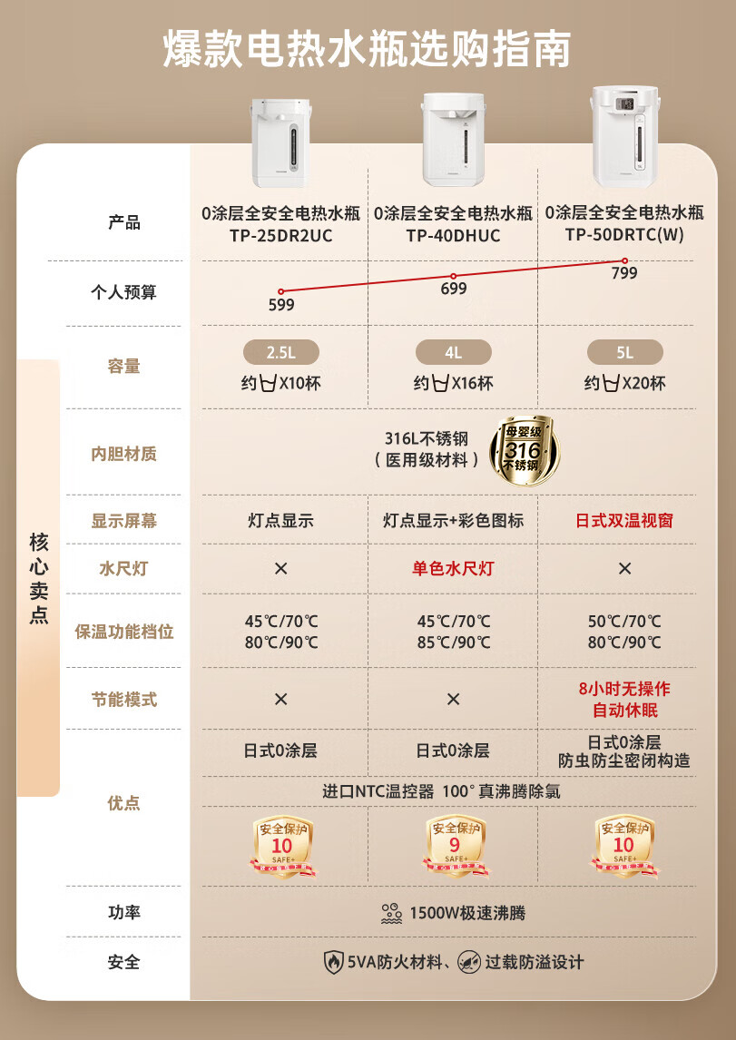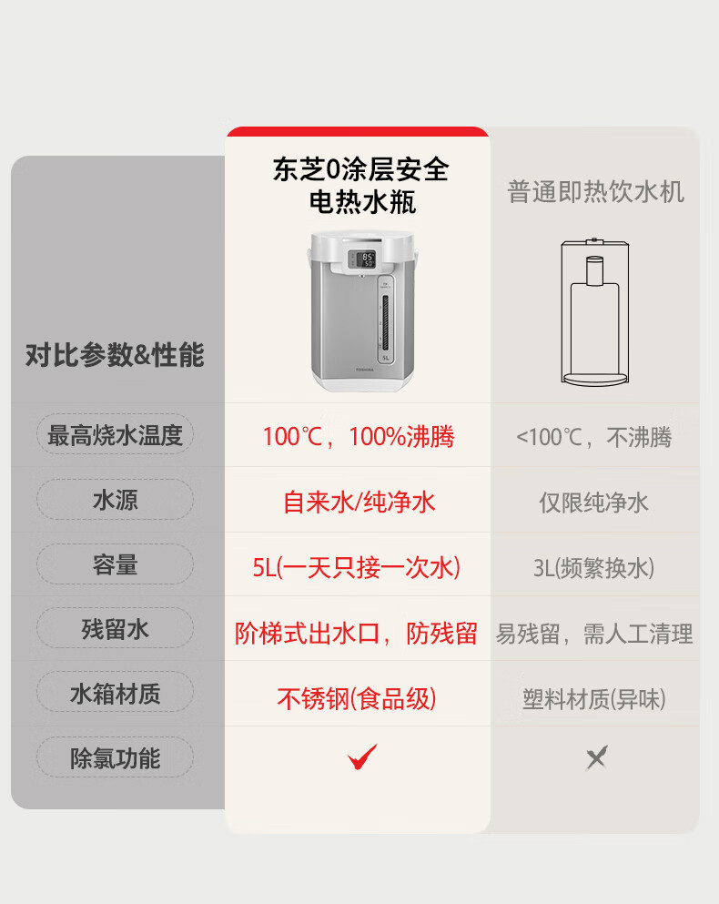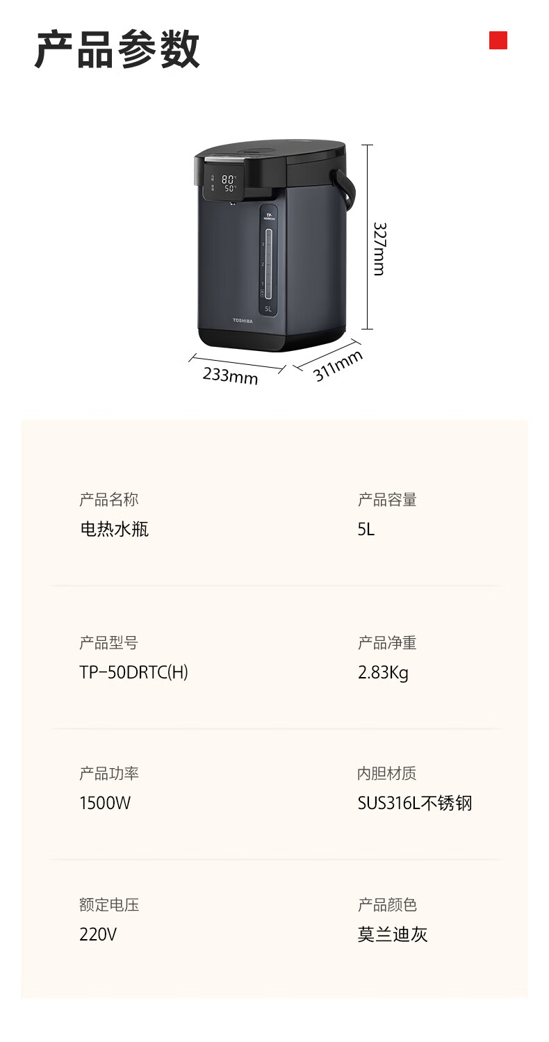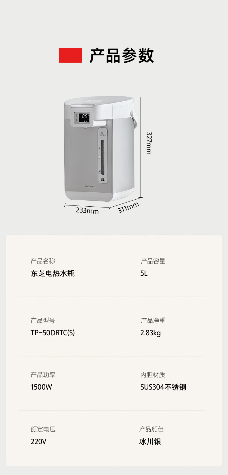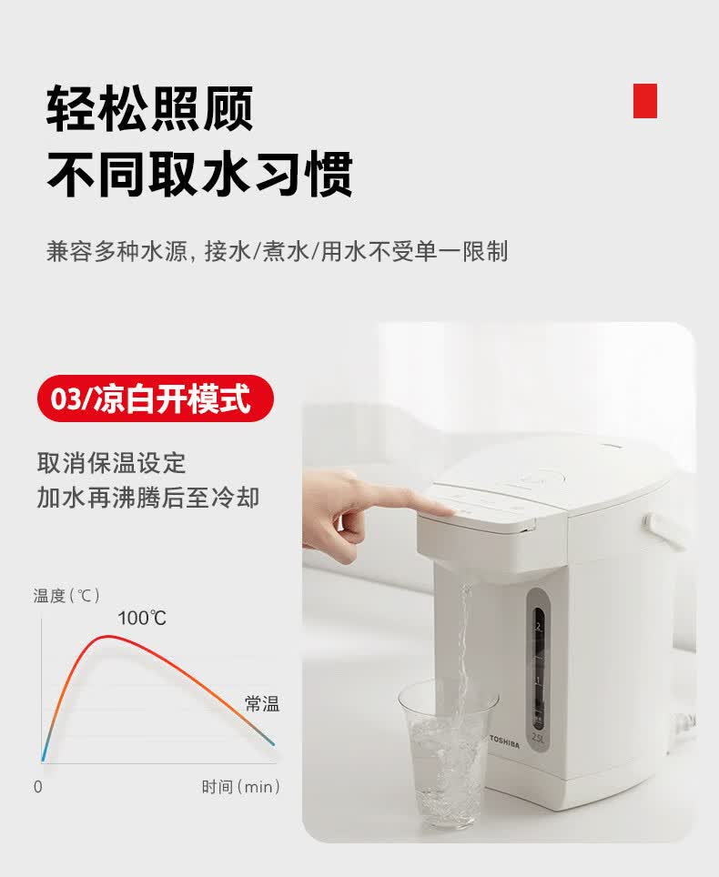 东芝(TOSHIBA)【官方旗舰店】水物语安全电热水瓶316L不锈钢0涂层0胶水电热水壶大容量恒温沸腾除氯烧水壶多段 2.5L 【316L不锈钢】