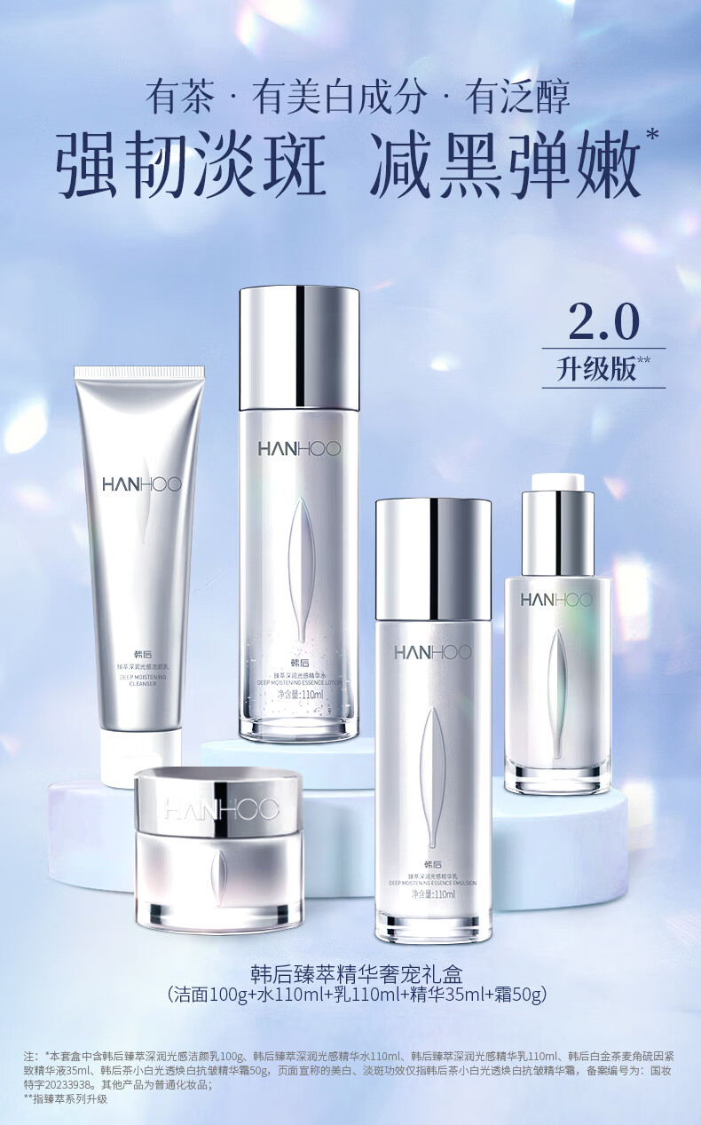韩后(Hanhoo)臻萃奢宠水乳套装美白淡斑补水保湿化妆品护肤品礼盒妇女节礼物 【礼盒装】臻萃美白奢宠5件套