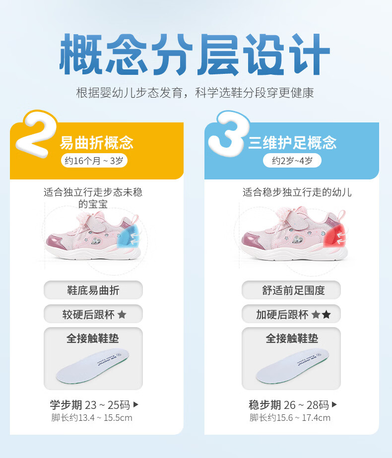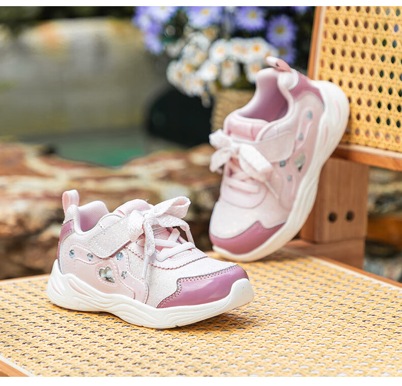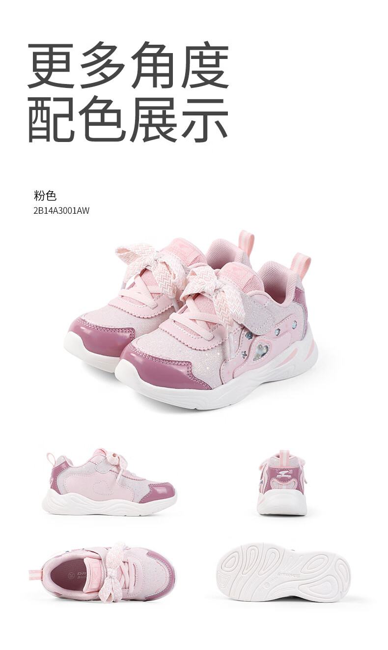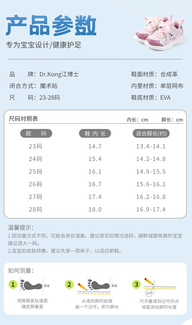 江博士秋季女童学步鞋 1-3岁宝宝时尚休闲儿童运动鞋 粉色 24 码脚长约14.2-14.8