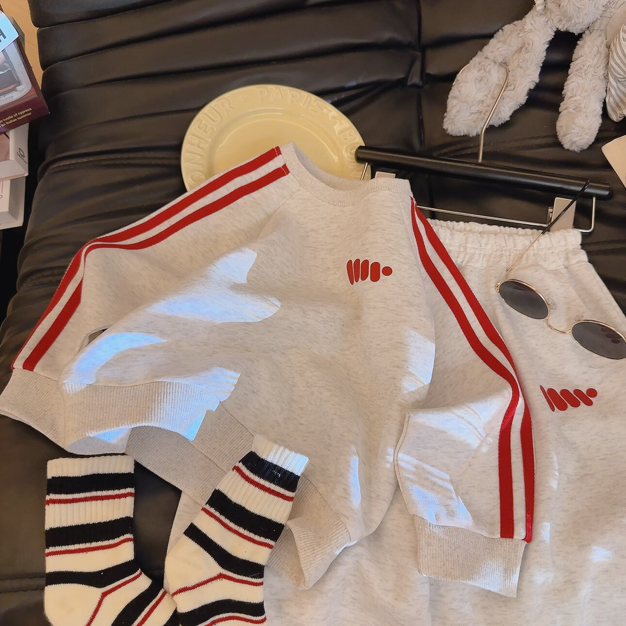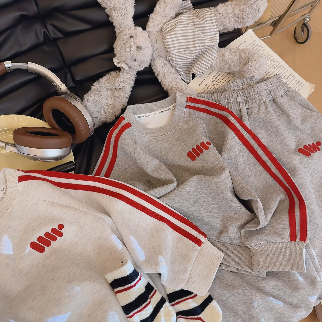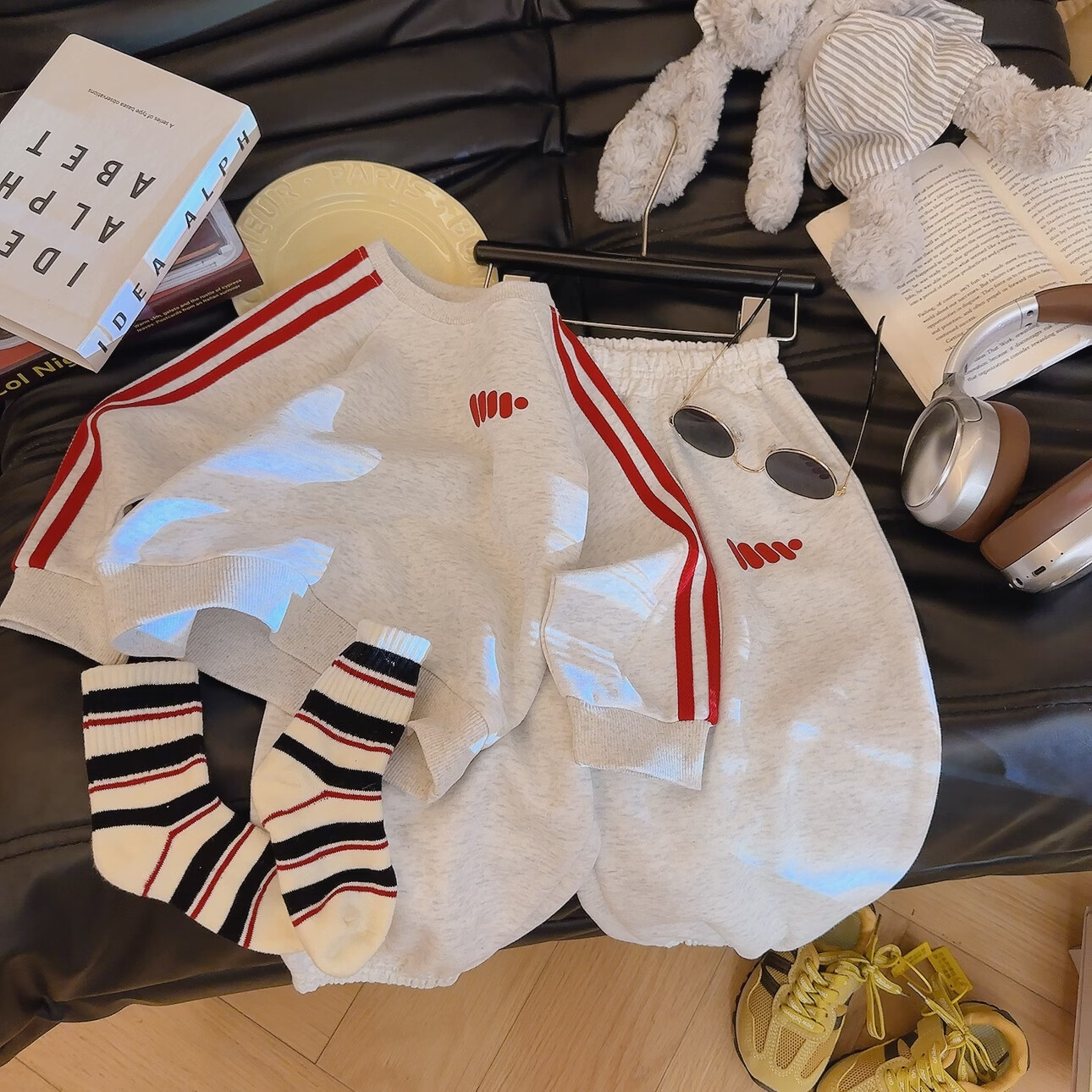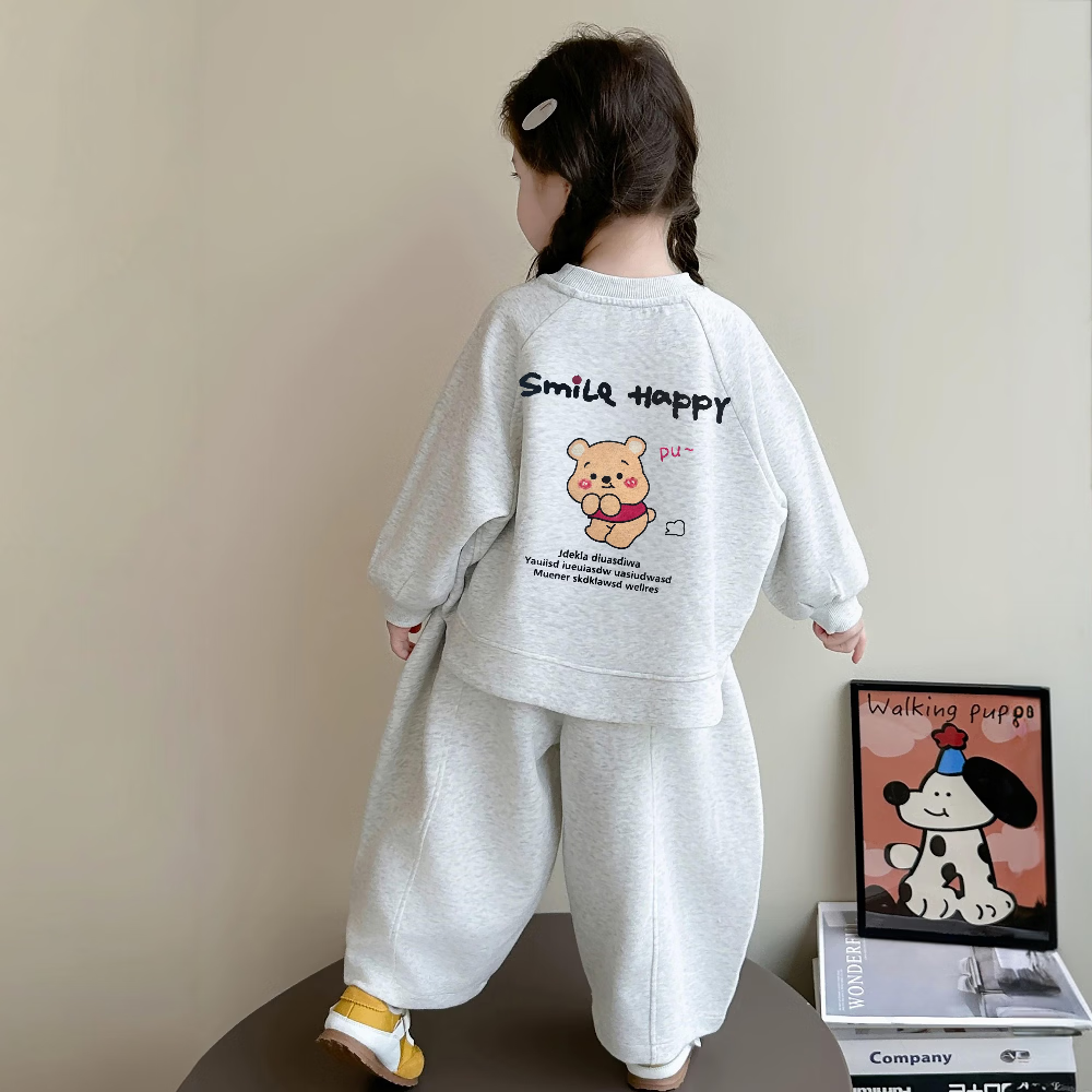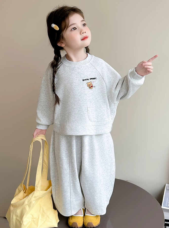 小猪班纳(PEPCO)女童秋季卡通卫衣套装2025新款休闲秋款洋气儿童秋装女宝宝两件套 MTH两道杠套装-白花灰 男孩 110 (建议身高100-110cm)