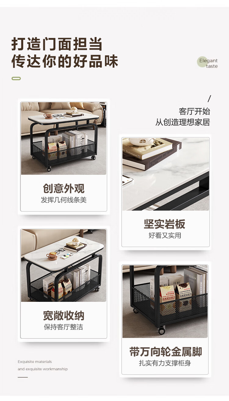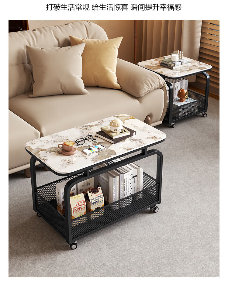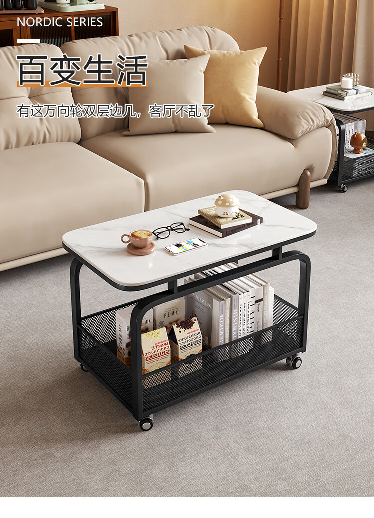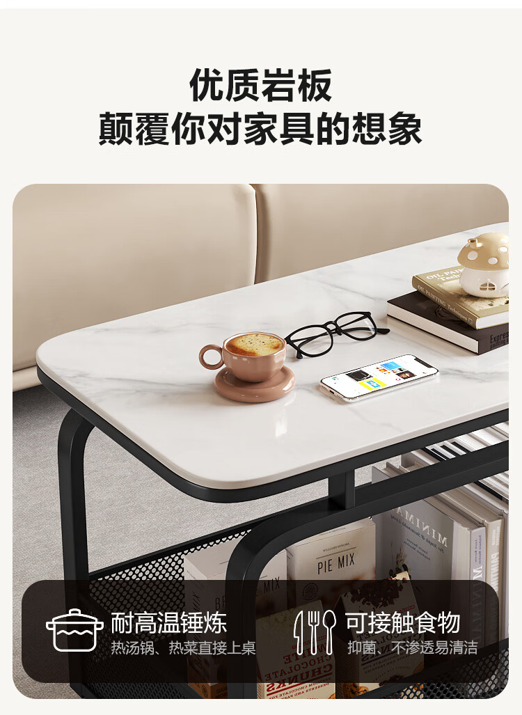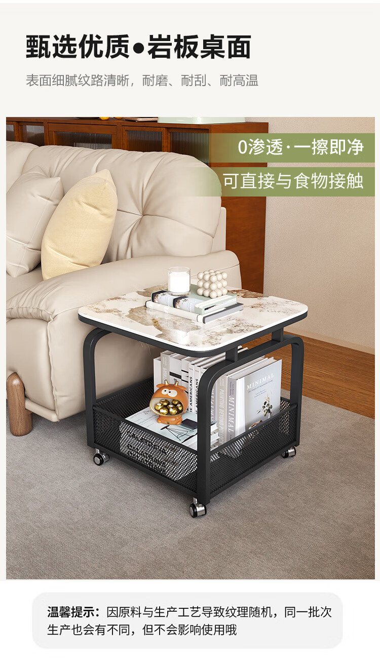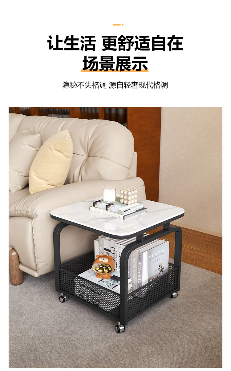 杉臻高级感可移动茶几沙发边柜侧边柜客厅家用岩板小边几轻奢2026新款 黑架【潘多拉岩板】60*60*60