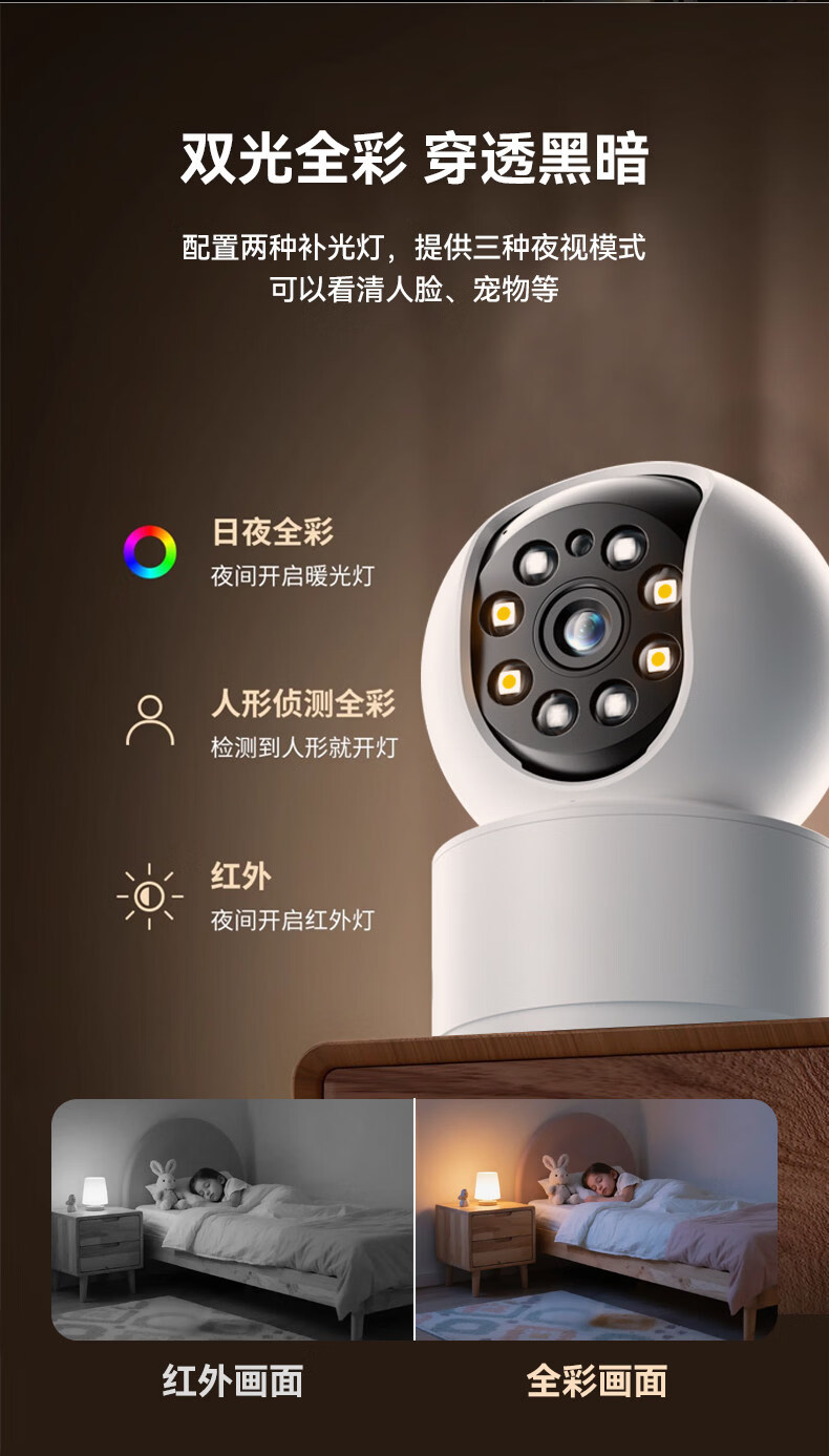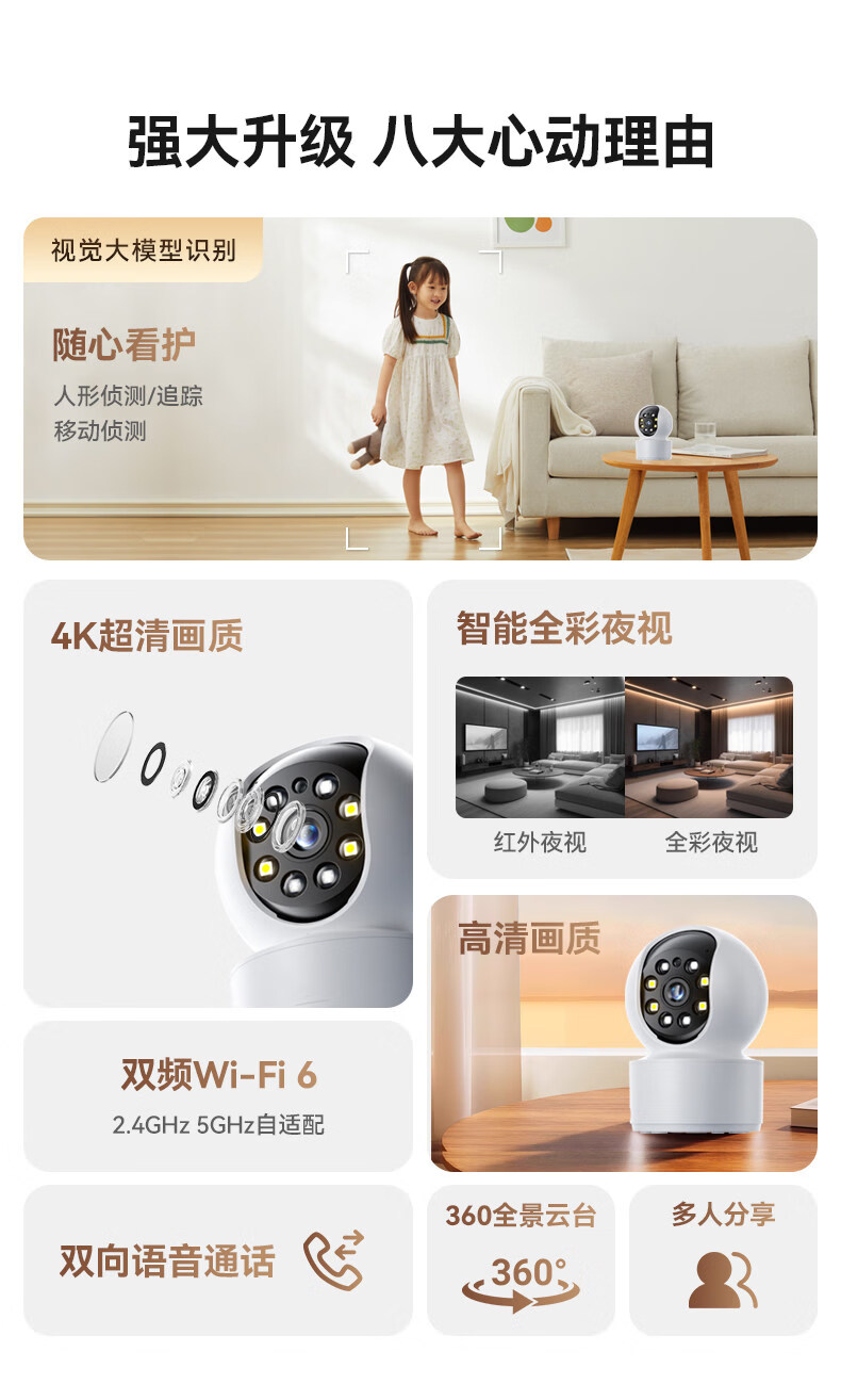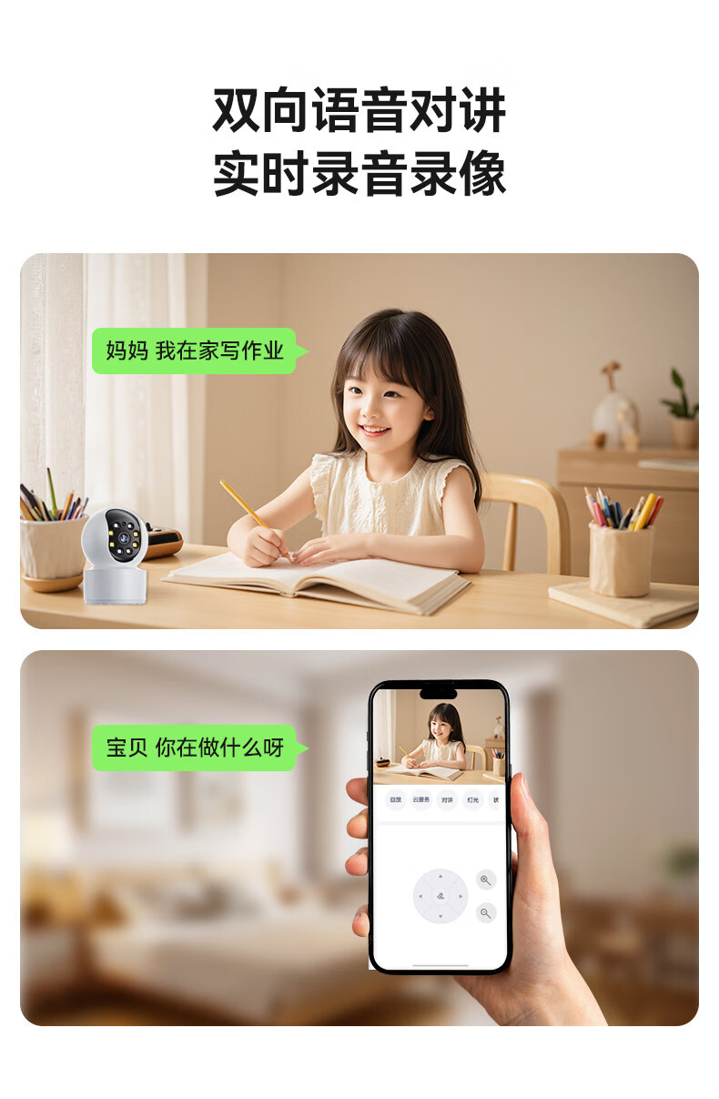 网络眼摄像头室内360度无死角带夜视全景手机远程家用监控母婴看护可对话可视频WIFI高清摄像头 【视频通话+一键呼叫+断电续航】 【送终身云储存】免费回放