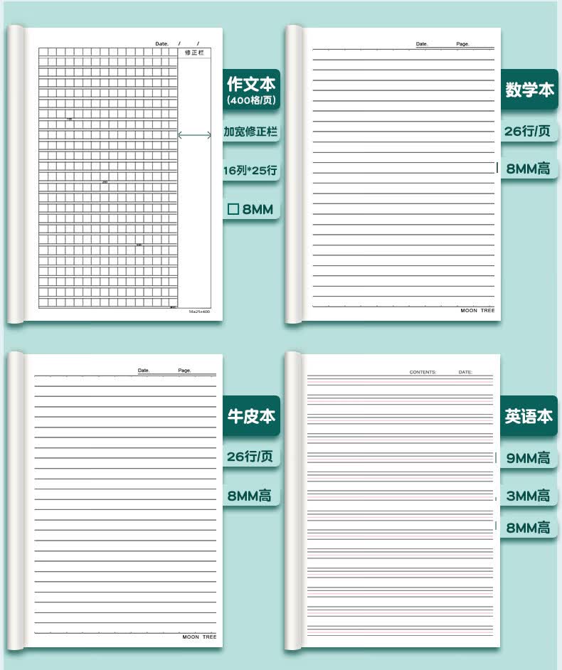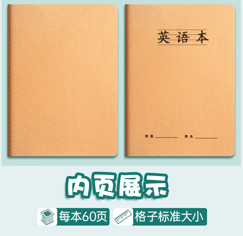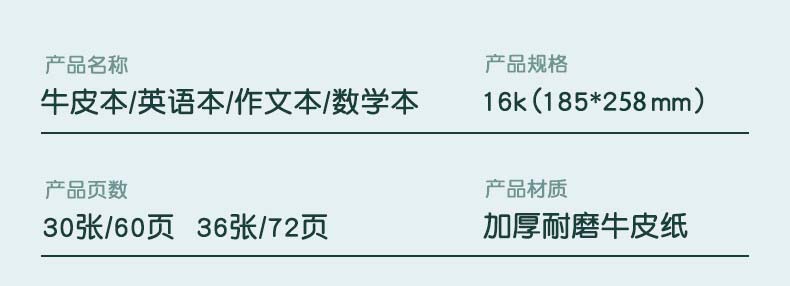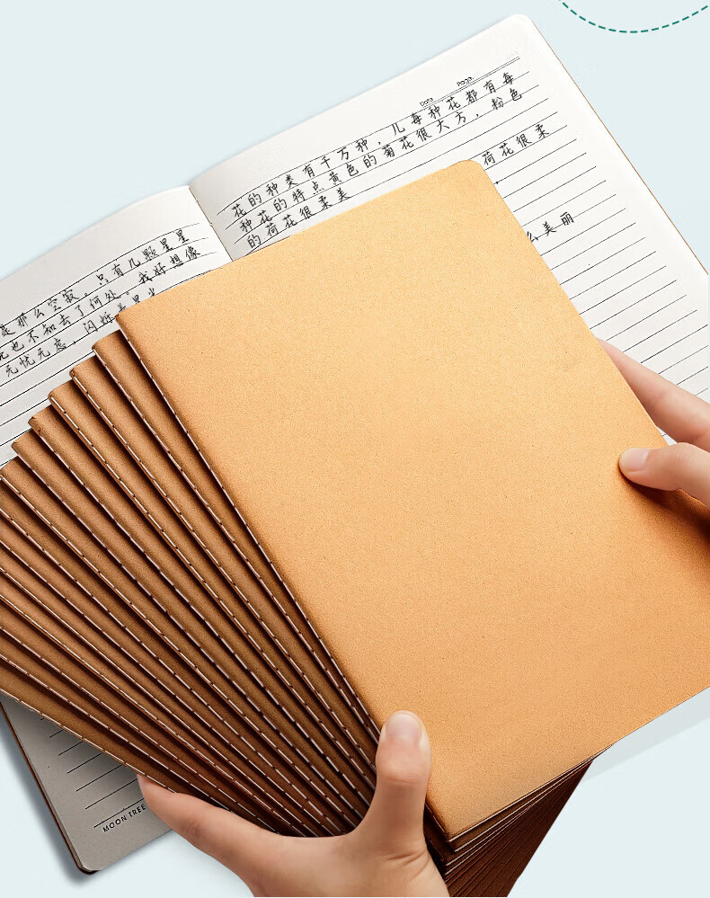 离草16k笔记本本子牛皮纸练习本车线装订简约记事本学生横线作业本26行 5本装/150张
