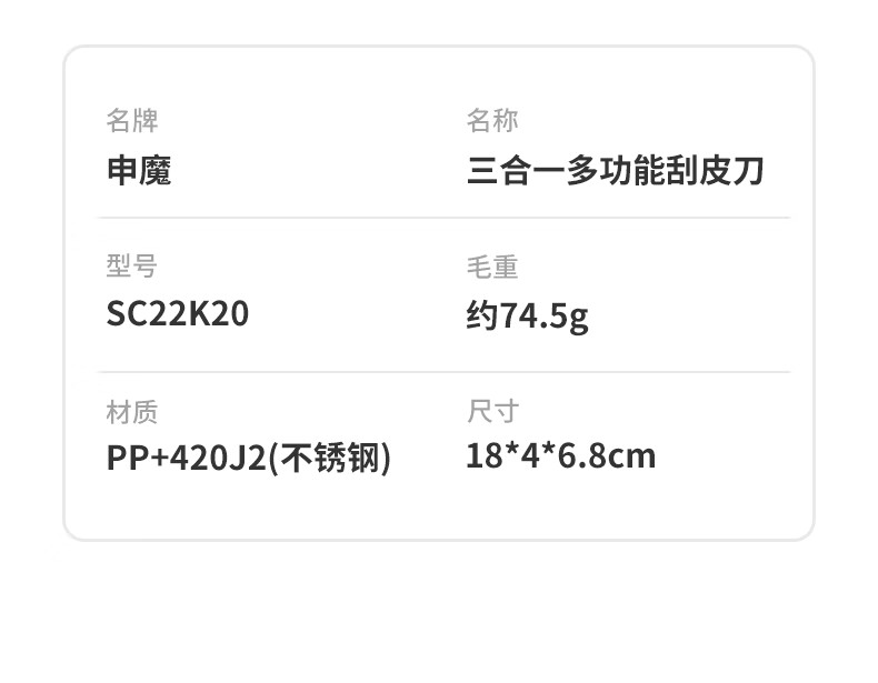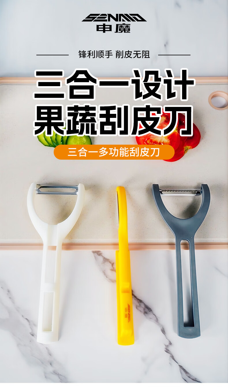 申魔家用削皮刀厨房专用削皮器多功能水果刀士豆刨皮刀蔬菜去皮刮皮刀 三合一多功能刮皮刀 SC22K20
