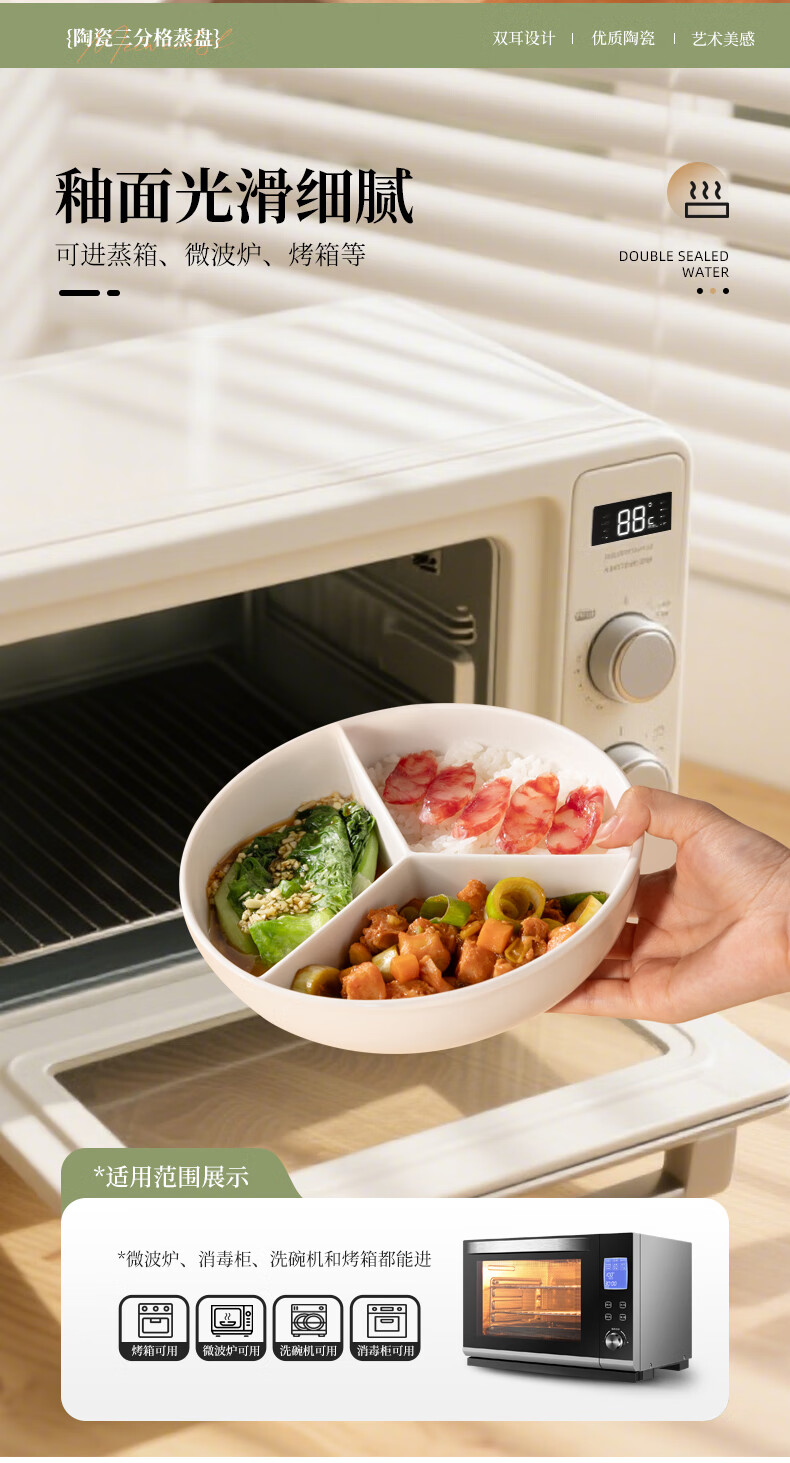 维艾(Newair)陶瓷电饭锅内蒸笼三分格蒸盘圆形婴儿宝宝辅食一锅蒸炒锅蒸碗屉