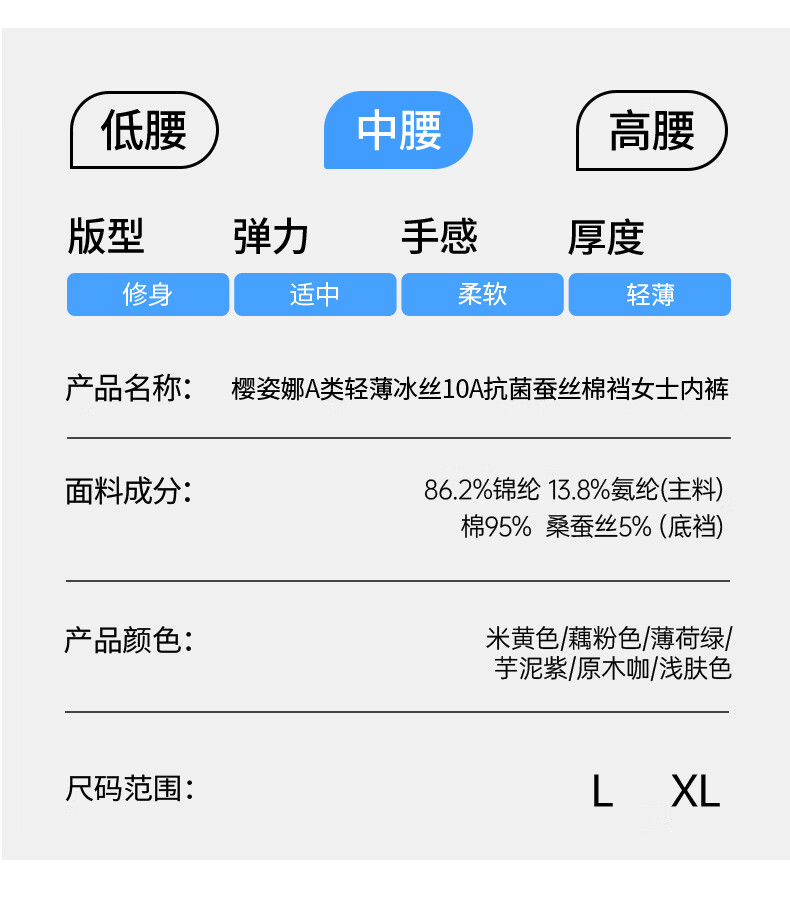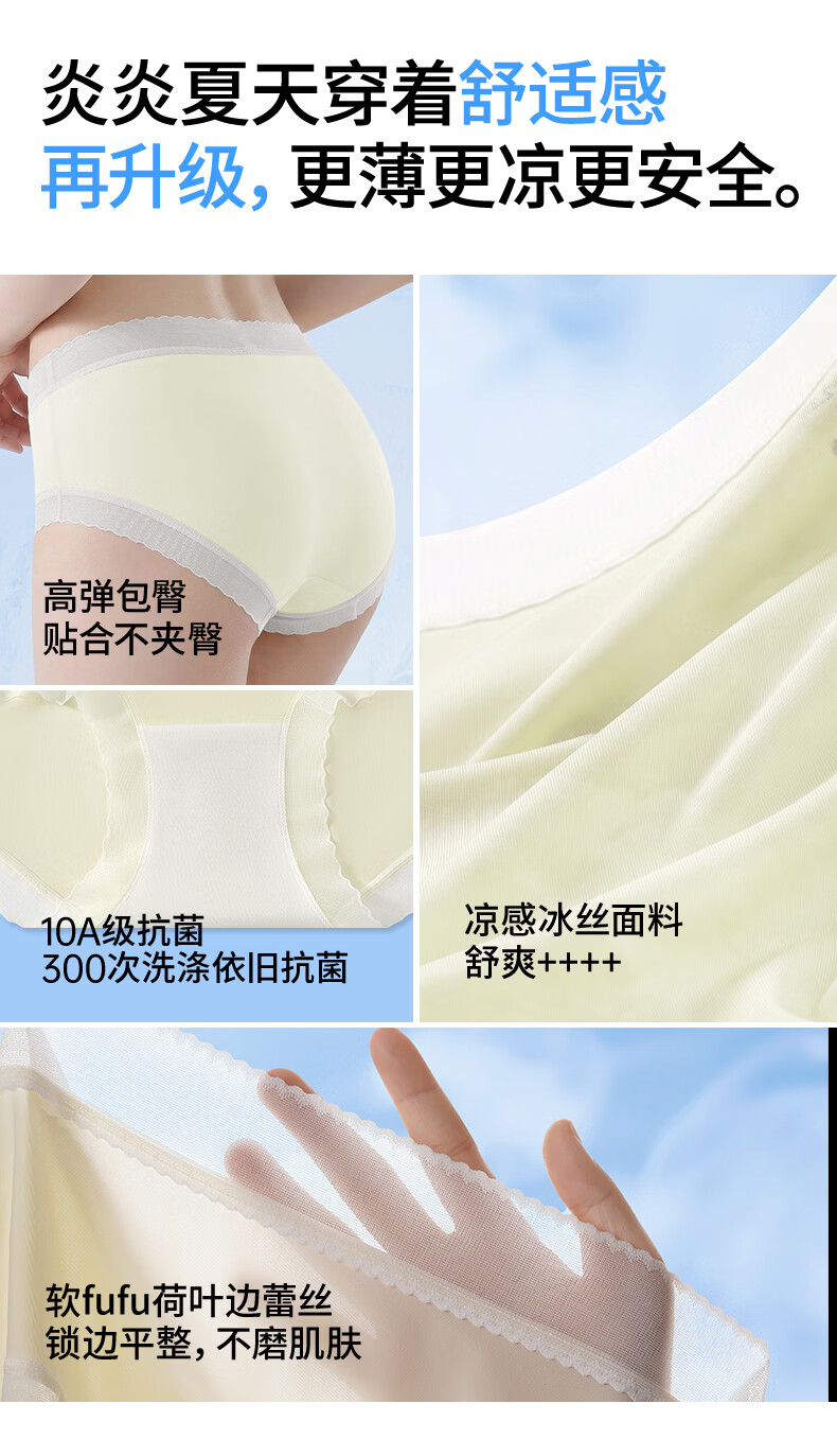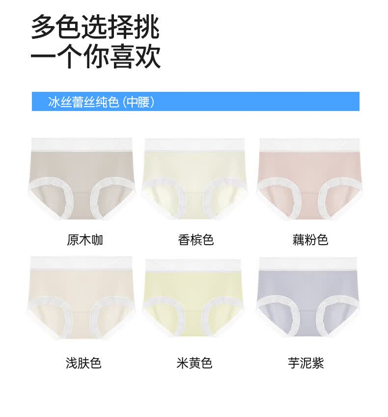樱姿娜【6条】无痕冰丝内裤女2026新款夏薄款A类10A抗菌纯棉裆三角裤 【6条装】肤+粉+黄+紫+香槟+咖 XL 中腰(100-150斤内可穿)