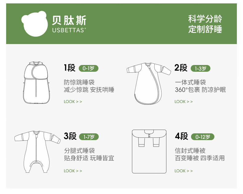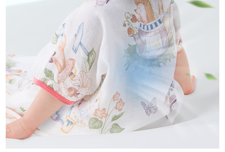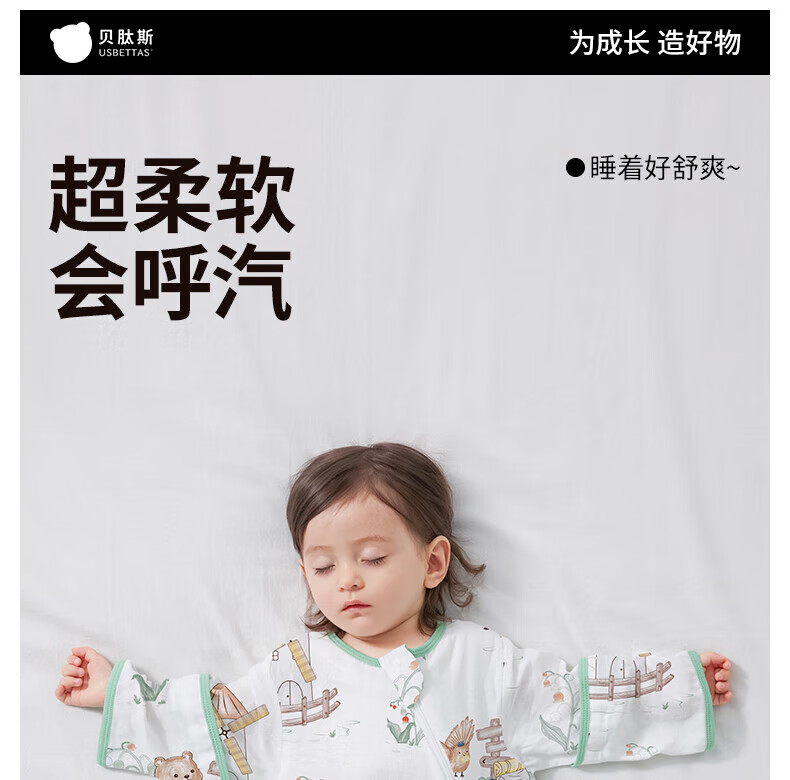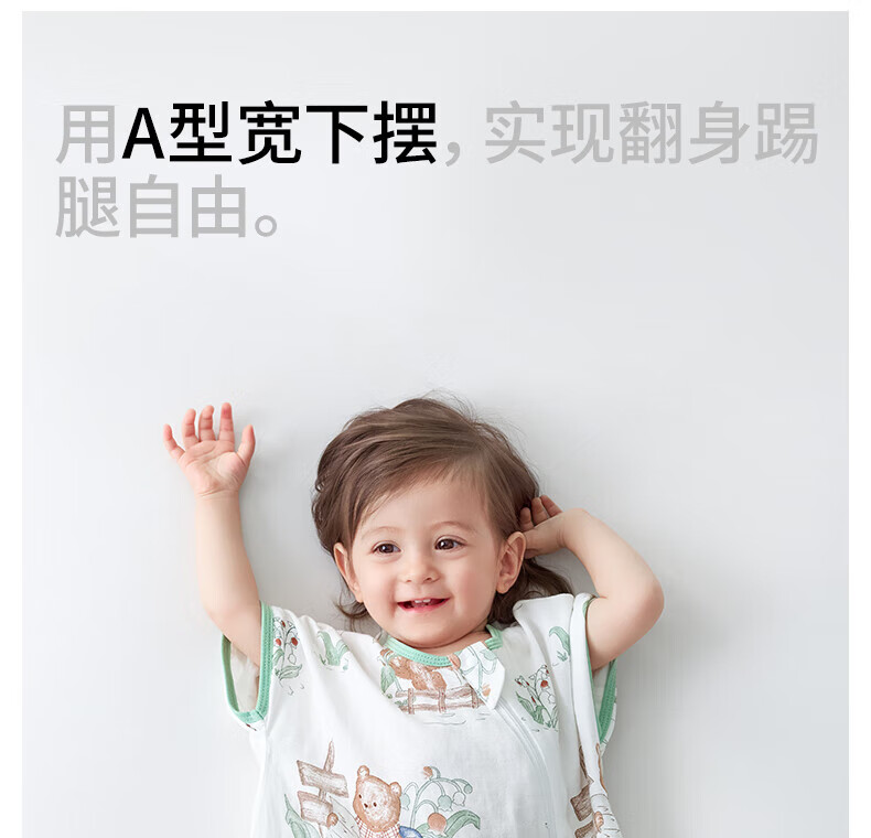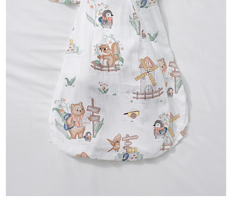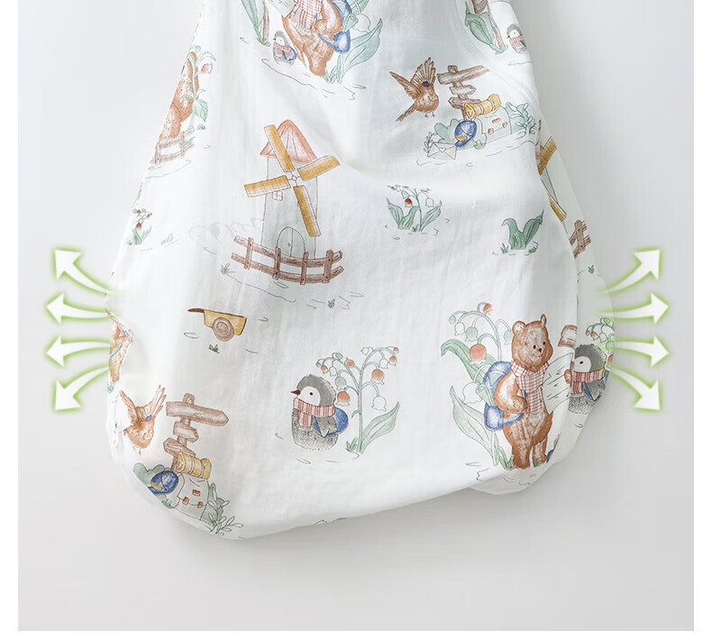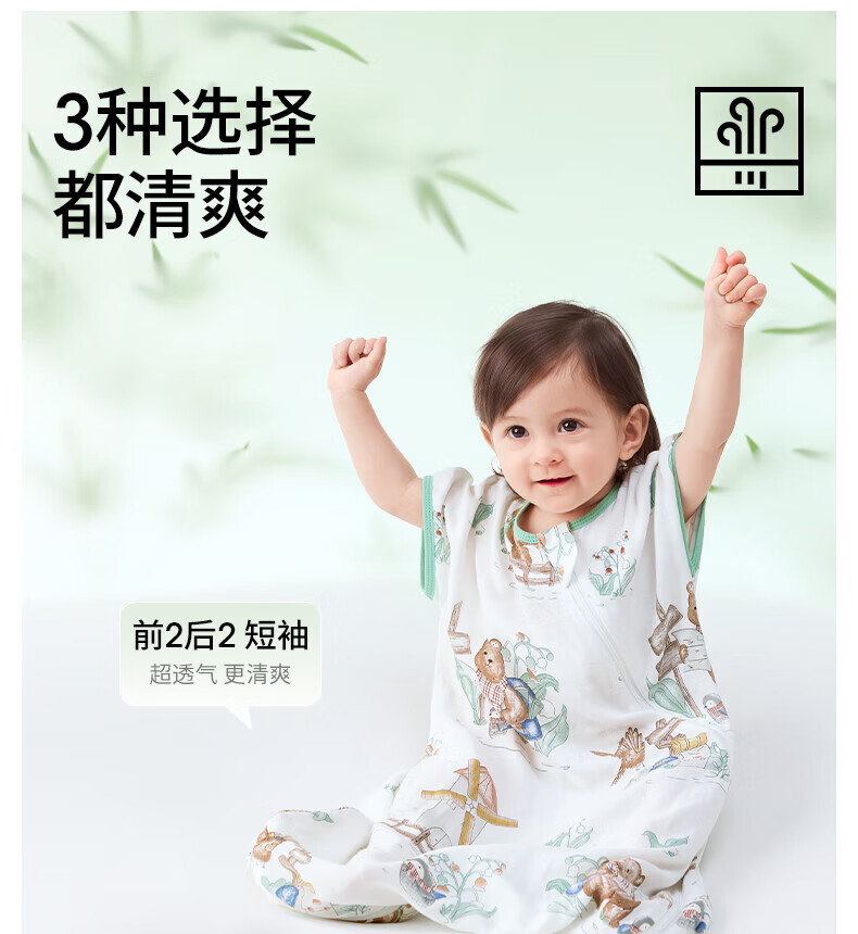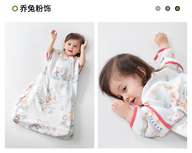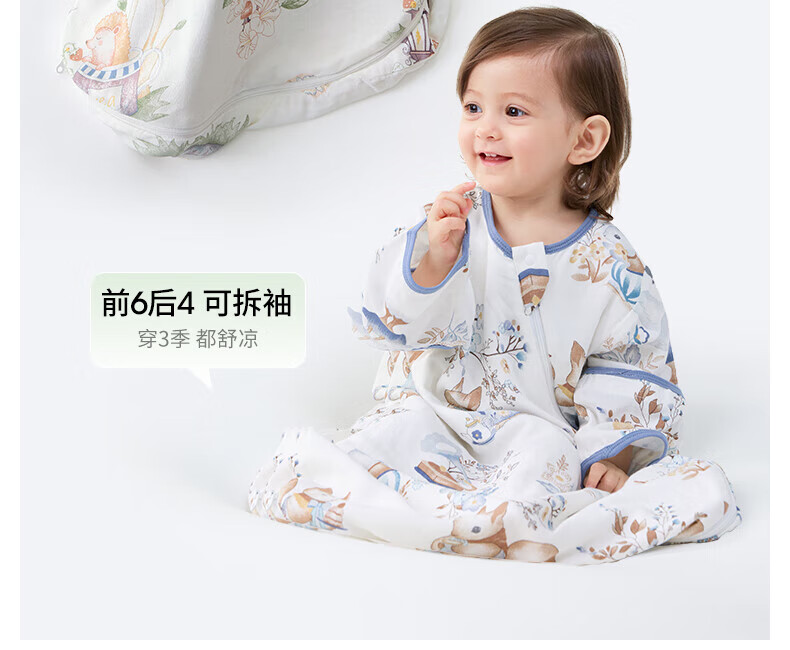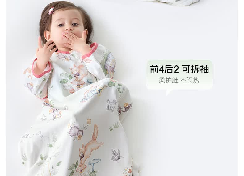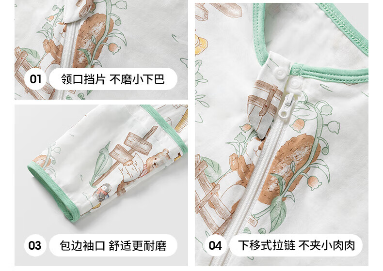 贝肽斯儿童睡袋春秋竹棉纱布宝宝睡衣一体婴儿防踢被睡袋前6后4乔兔 L