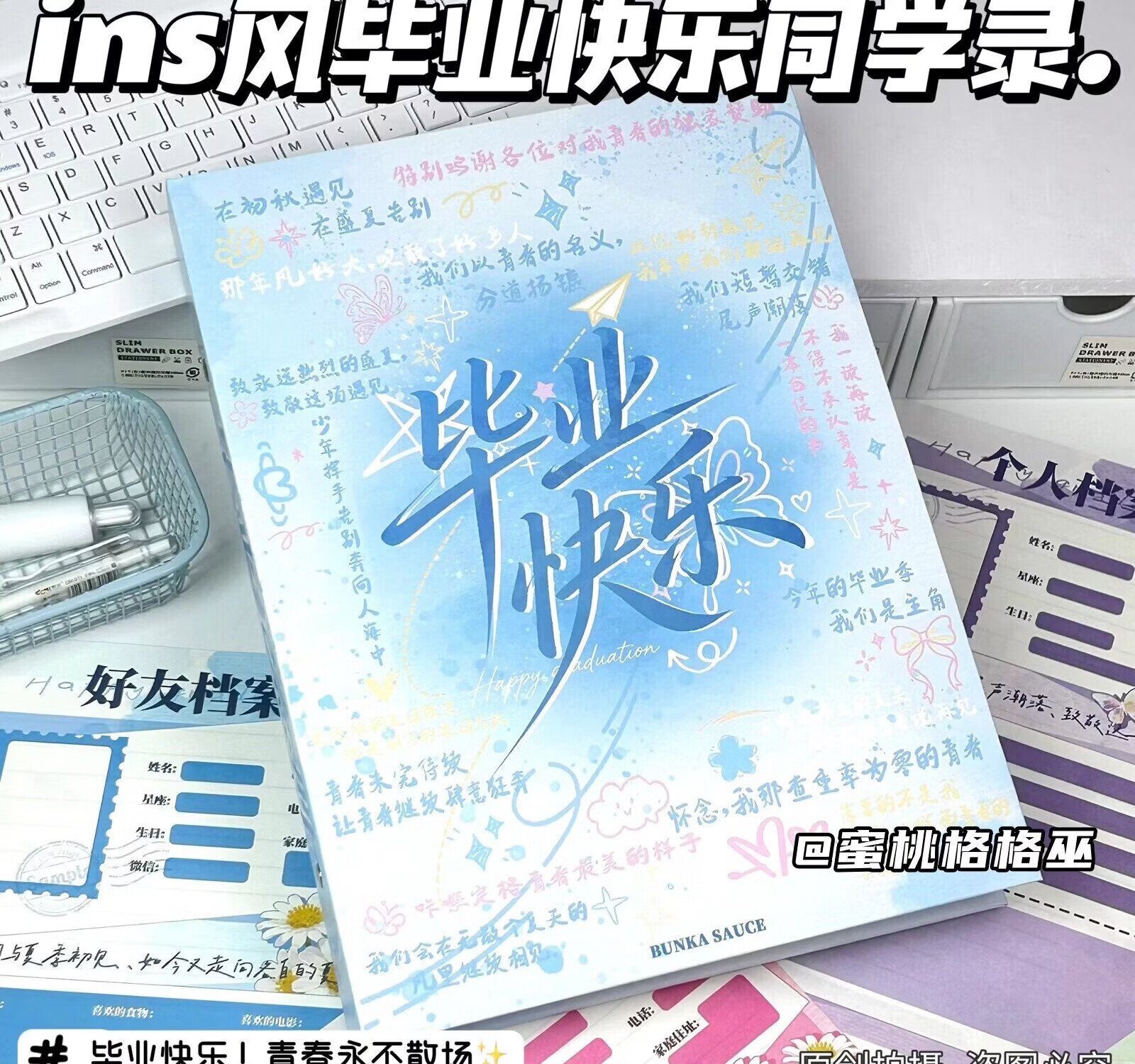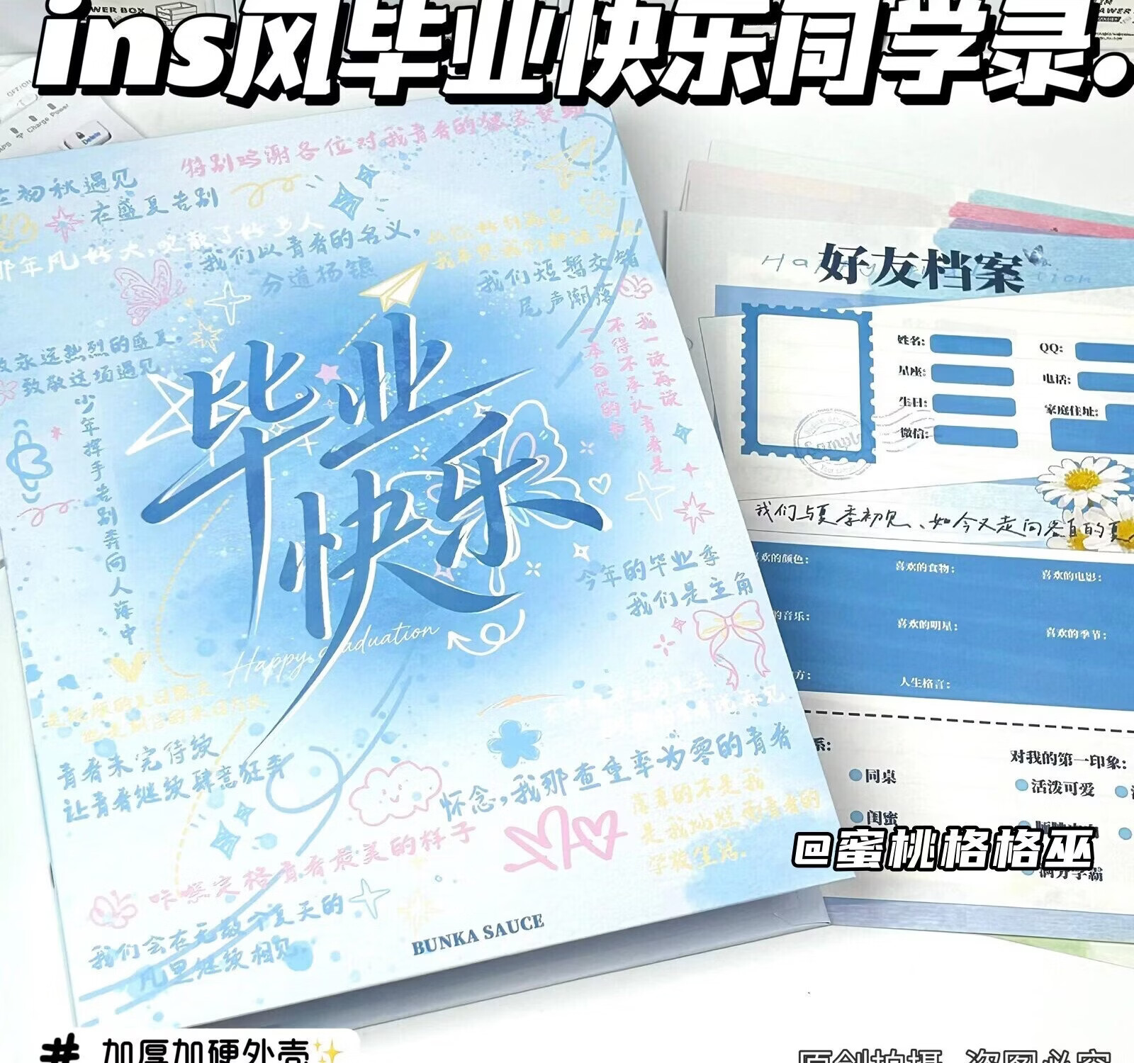 LCWJ手绘青春毕业同学录高颜值学生毕业纪念册活页闺蜜初中高中留言册 【青春手绘】同学录+80张彩色内页