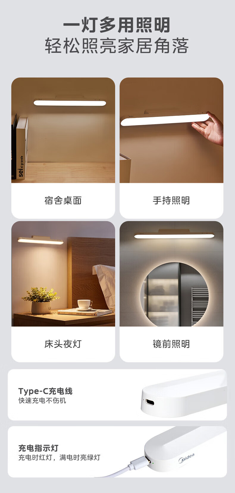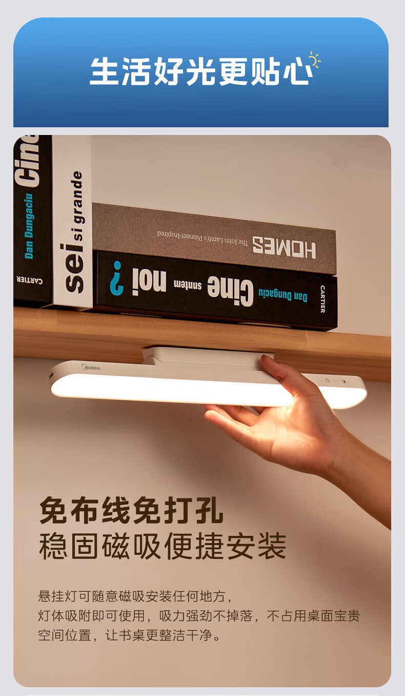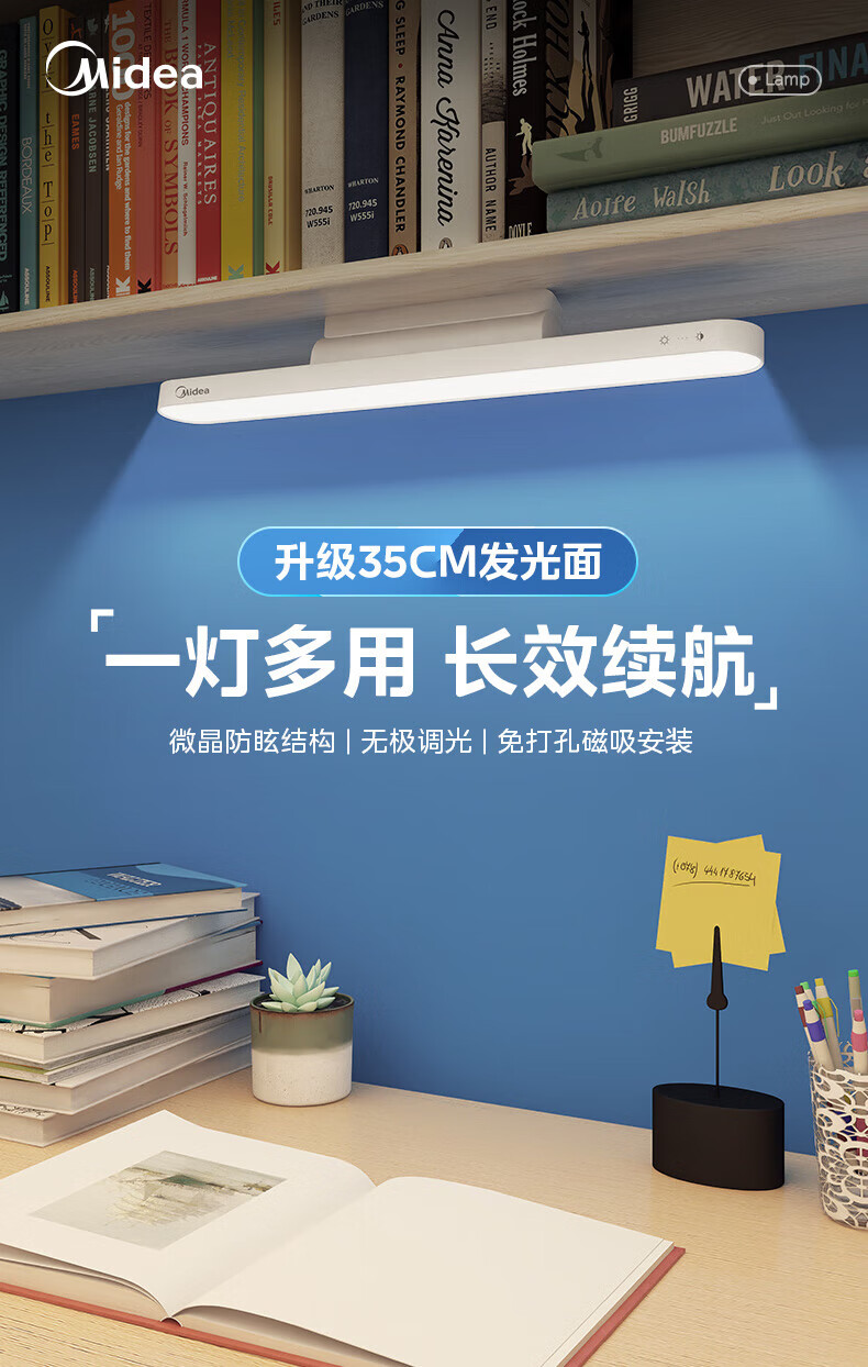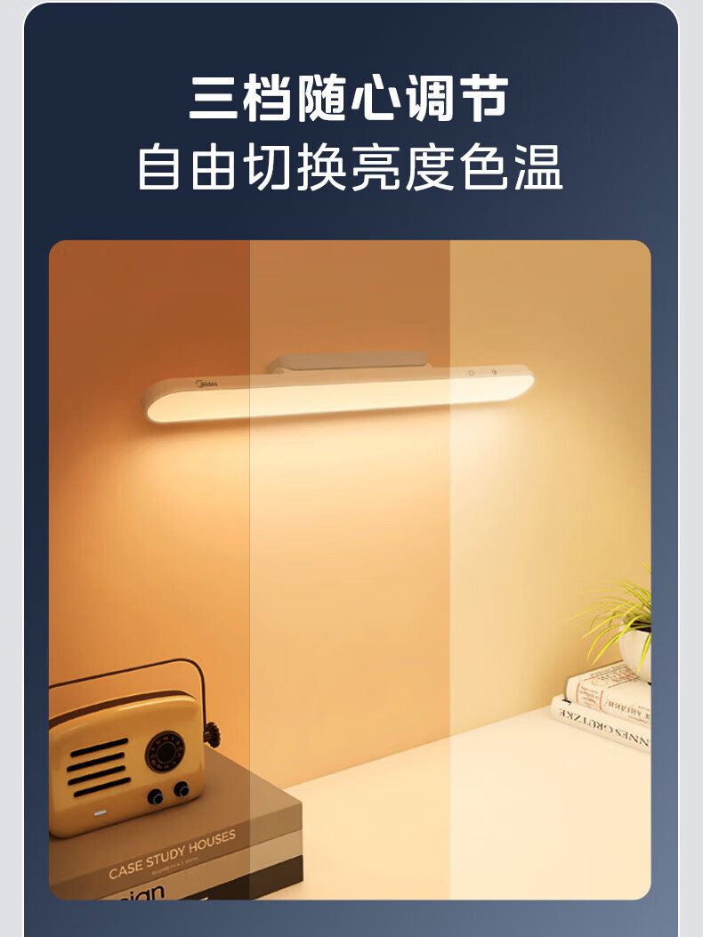 美的(Midea)LED台灯学习专用书桌磁吸灯酷毙灯宿舍床头吸附家用充电灯 7W