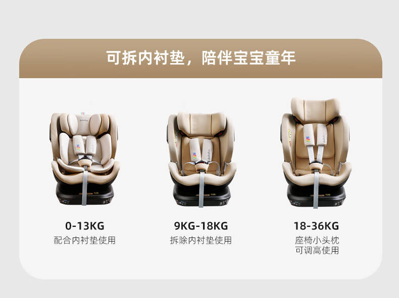 bebebus儿童安全座椅领航家汽车用0-8岁婴儿宝宝车载360度旋转 香槟金Pro