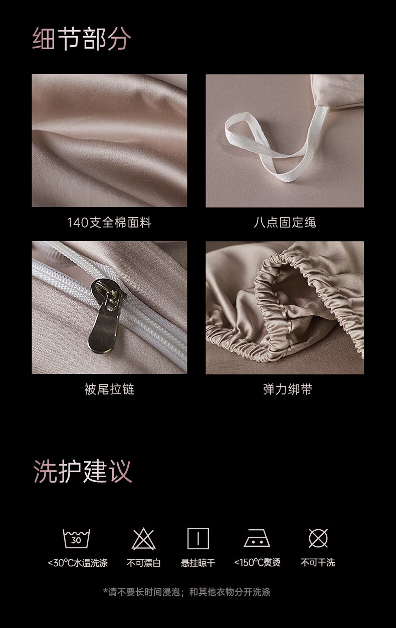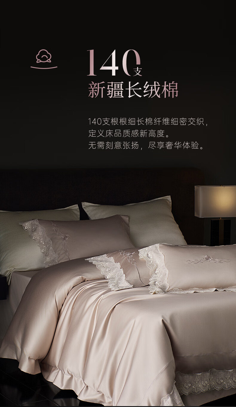 多喜爱家纺纯棉床上四件套 轻奢高级感140支贡缎长绒棉全棉床笠被套床品套件220*240cm